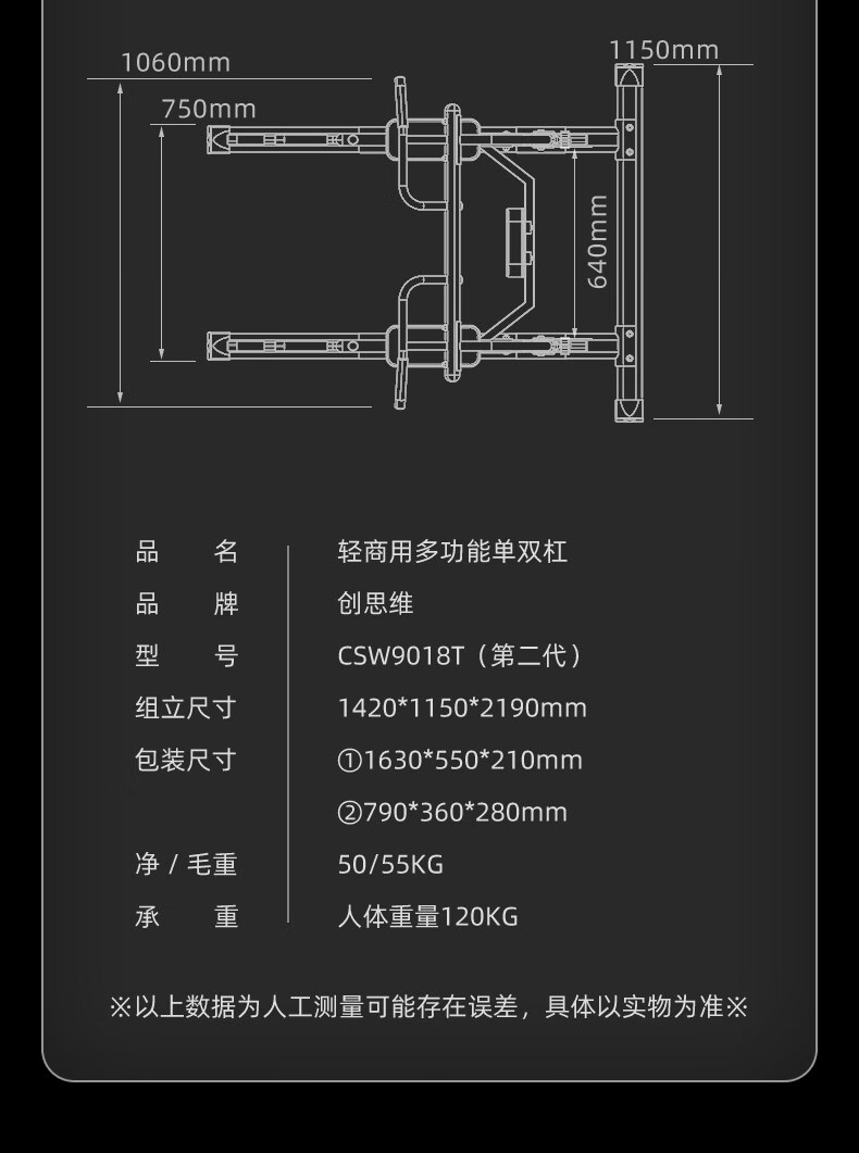 Chuangsi Pull-up Device Indoor Horizontal Bar Parallel Bar Home Trainer Multifunctional Fitness Exercise Equipment CSW9018T Single Parallel Bar (Single Machine)