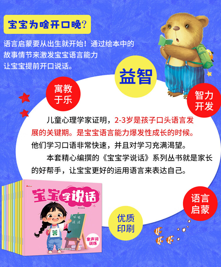 Baby learns to speak, language and expression enlightenment book, opening artifact picture book, 0-3 years old, full 10 volumes, genuine children's literature picture book, story picture book, puzzle, enlightenment, cognitive parent-child reading, Three Hippos