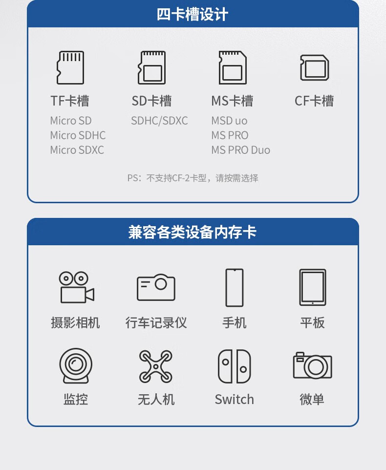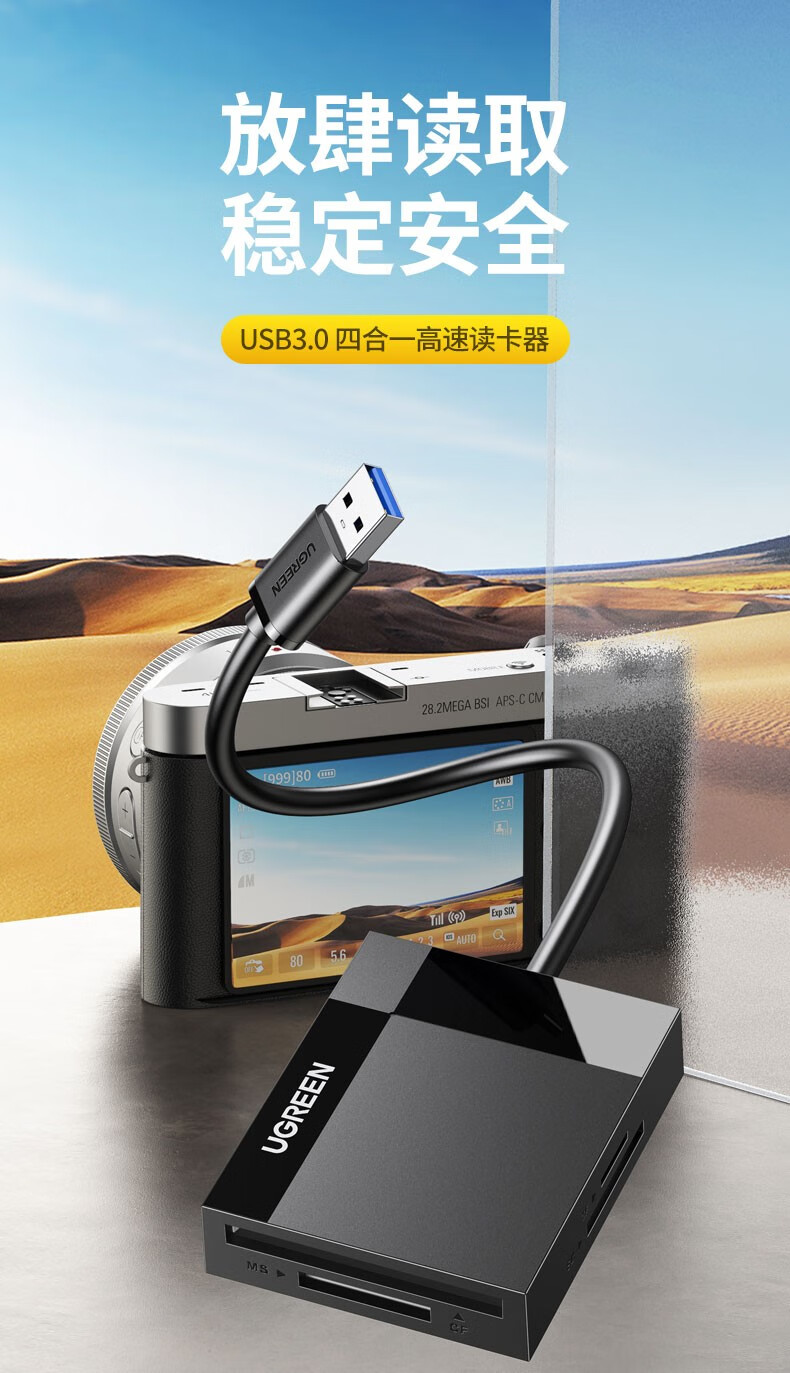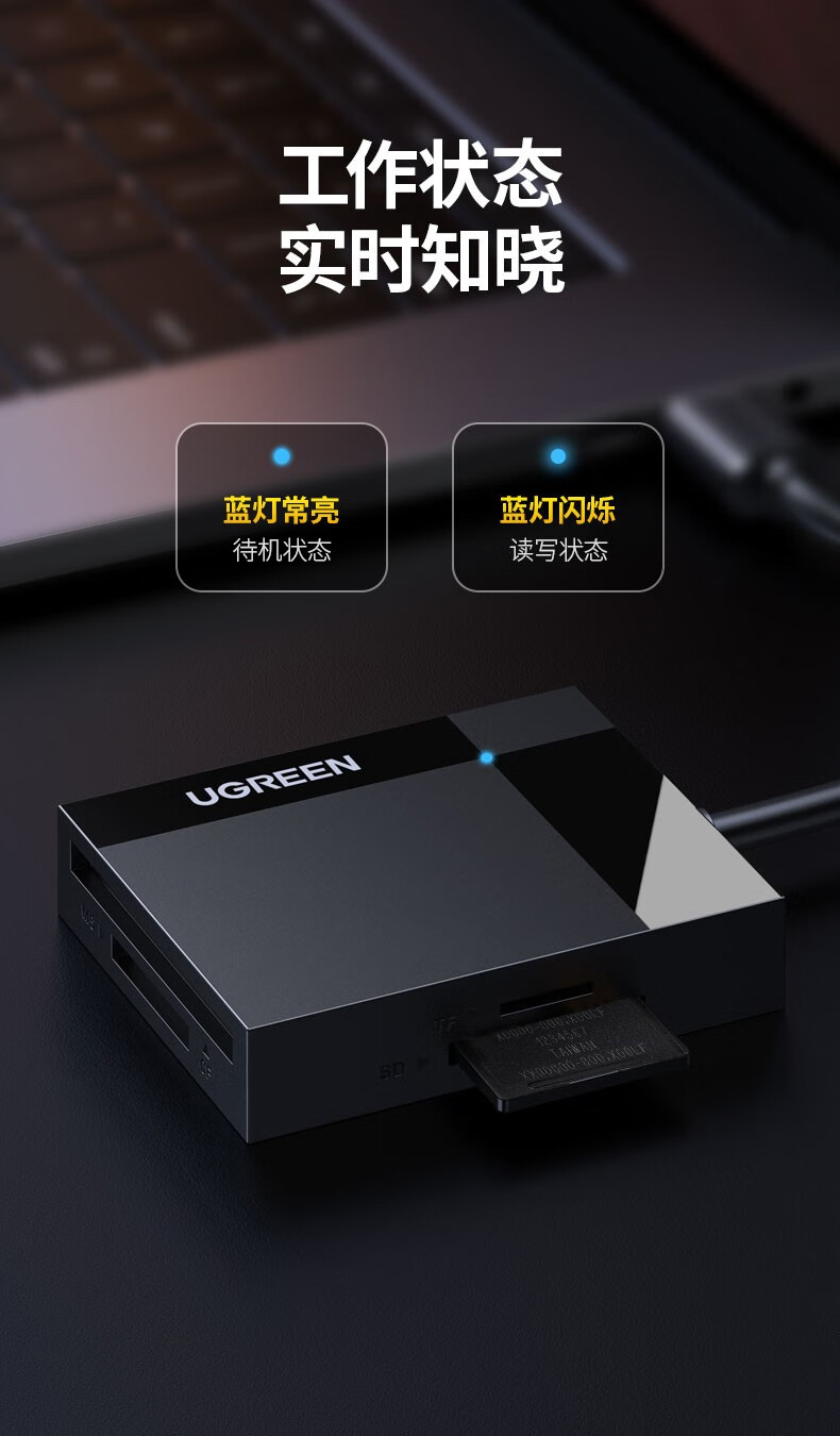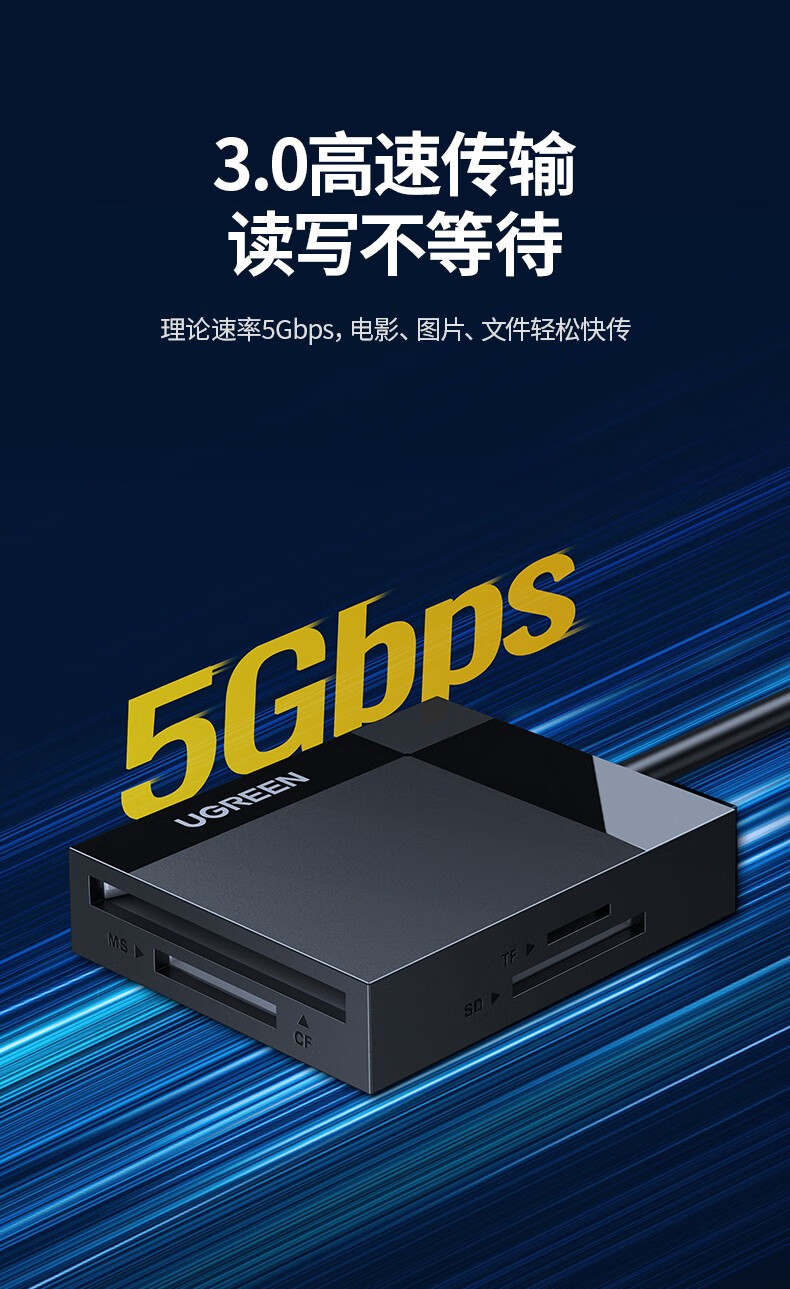 Greenlink multi-function all-in-one card reader USB3.0 high-speed supports SD/TF/CF/MS, suitable for cameras, driving recorders, surveillance cameras, mobile phone memory cards, USB3.0 multi-card multi-read, 0.5 meters