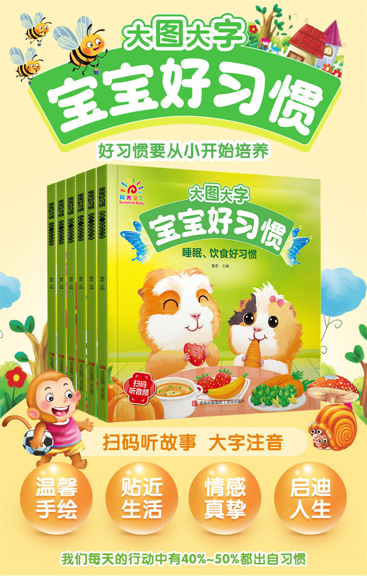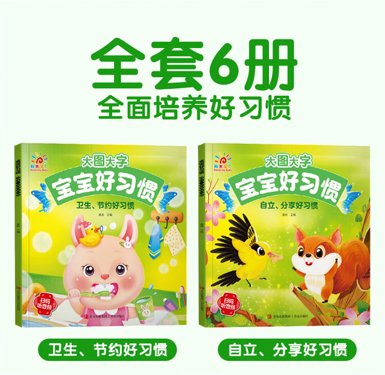 Sunshine Baby Good Habits for Babies (Set of 6 Books) Bedtime Stories Picture Books Children's Books Early Childhood Education Enlightenment Reading Books Books Scan QR Code Audio Accompaniment