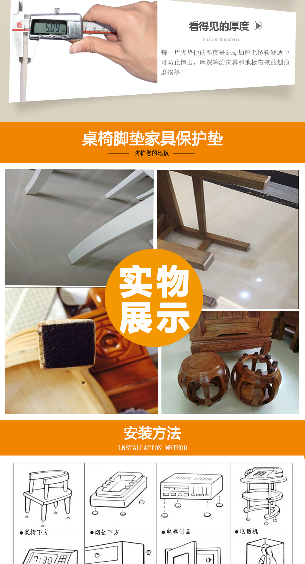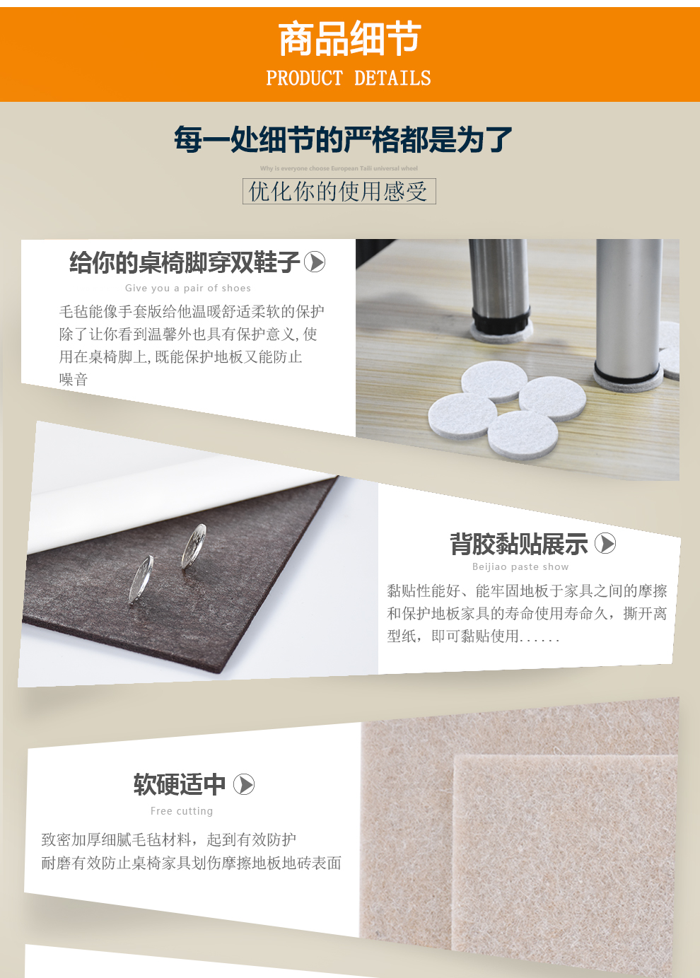 OUTILI self-adhesive thickened felt furniture table and chair foot pads, furniture floor protection pads, anti-slip, moisture-proof and anti-collision pads, No. 1/85*85 square beige/thickness 5mm