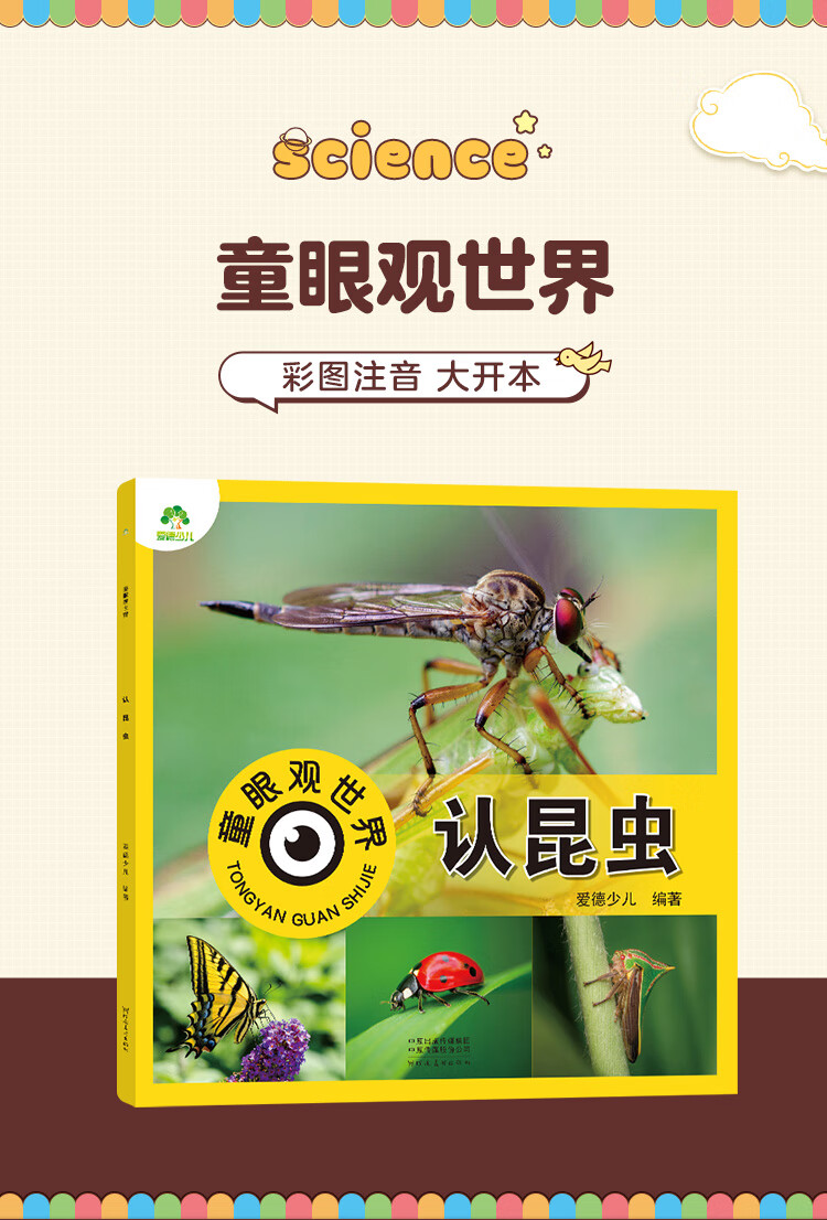 Amity Children's Children's Eyes View the World and Recognize Insects. Children aged 3-6 years old see pictures and recognize objects. Kindergarten enlightenment puzzle early education picture book. Encyclopedia of Insects. Full set of color pictures and phonetic version.