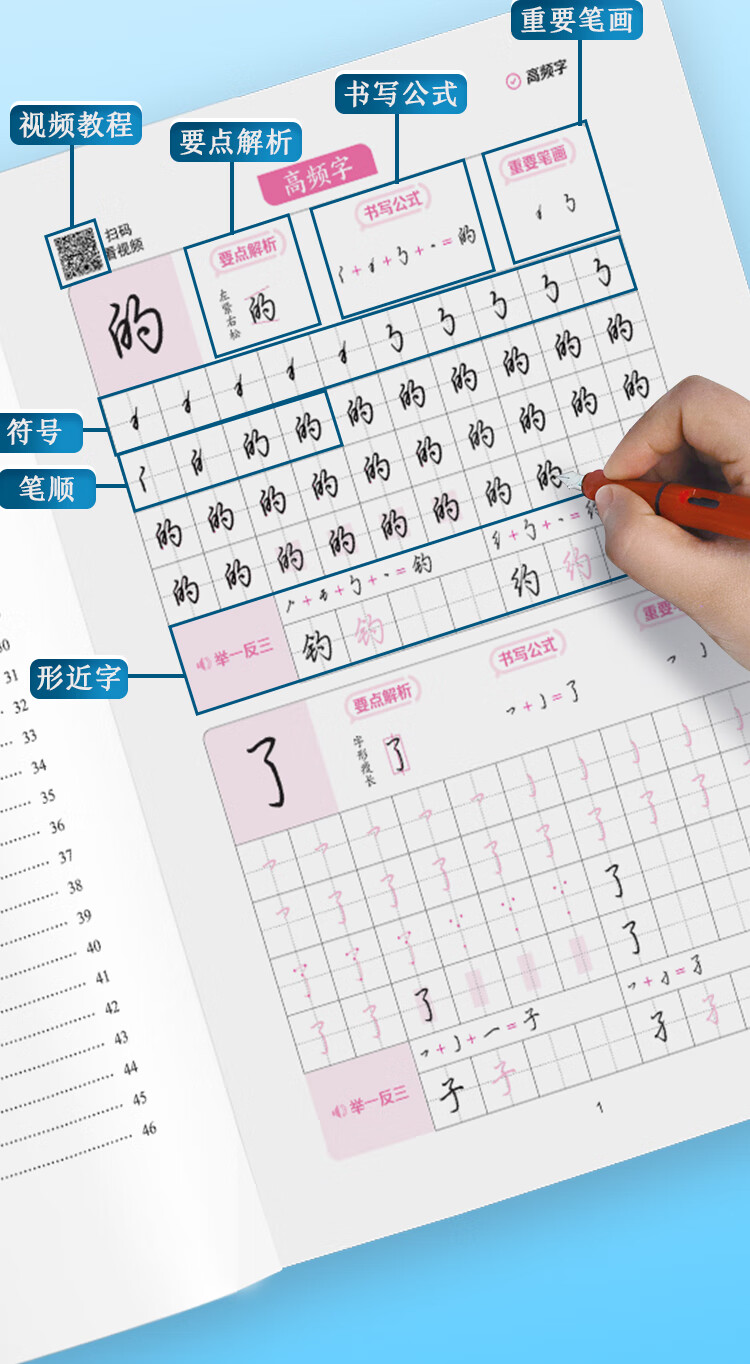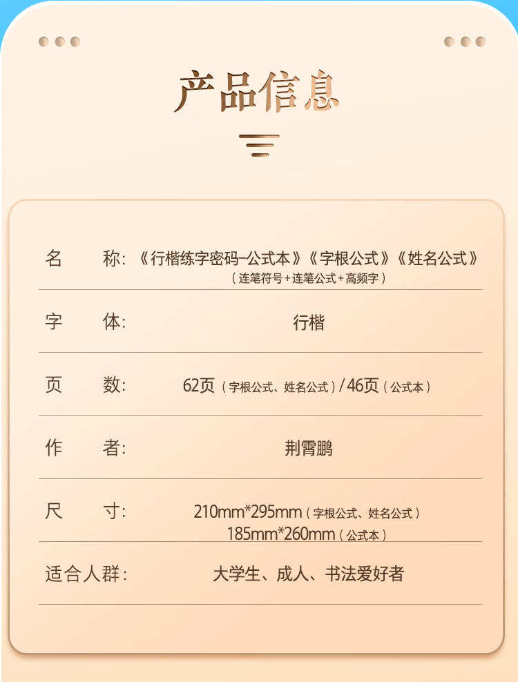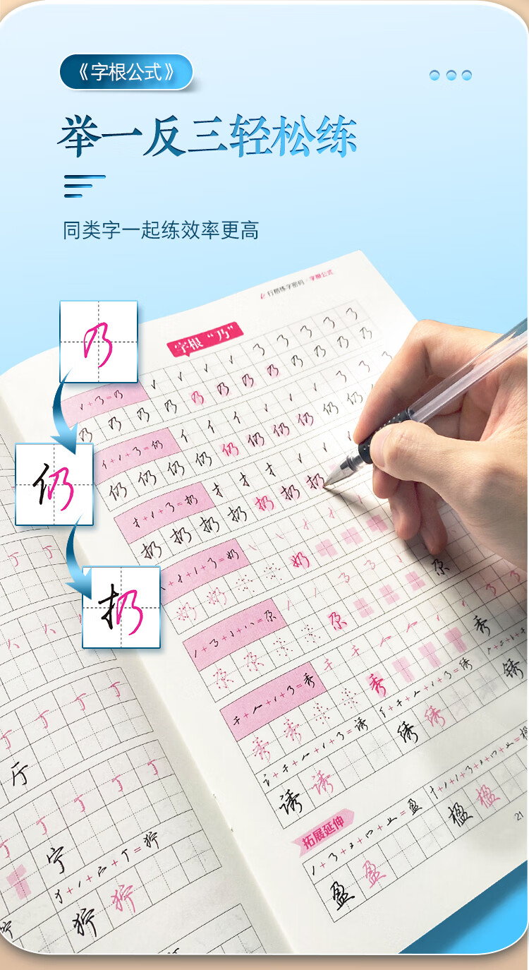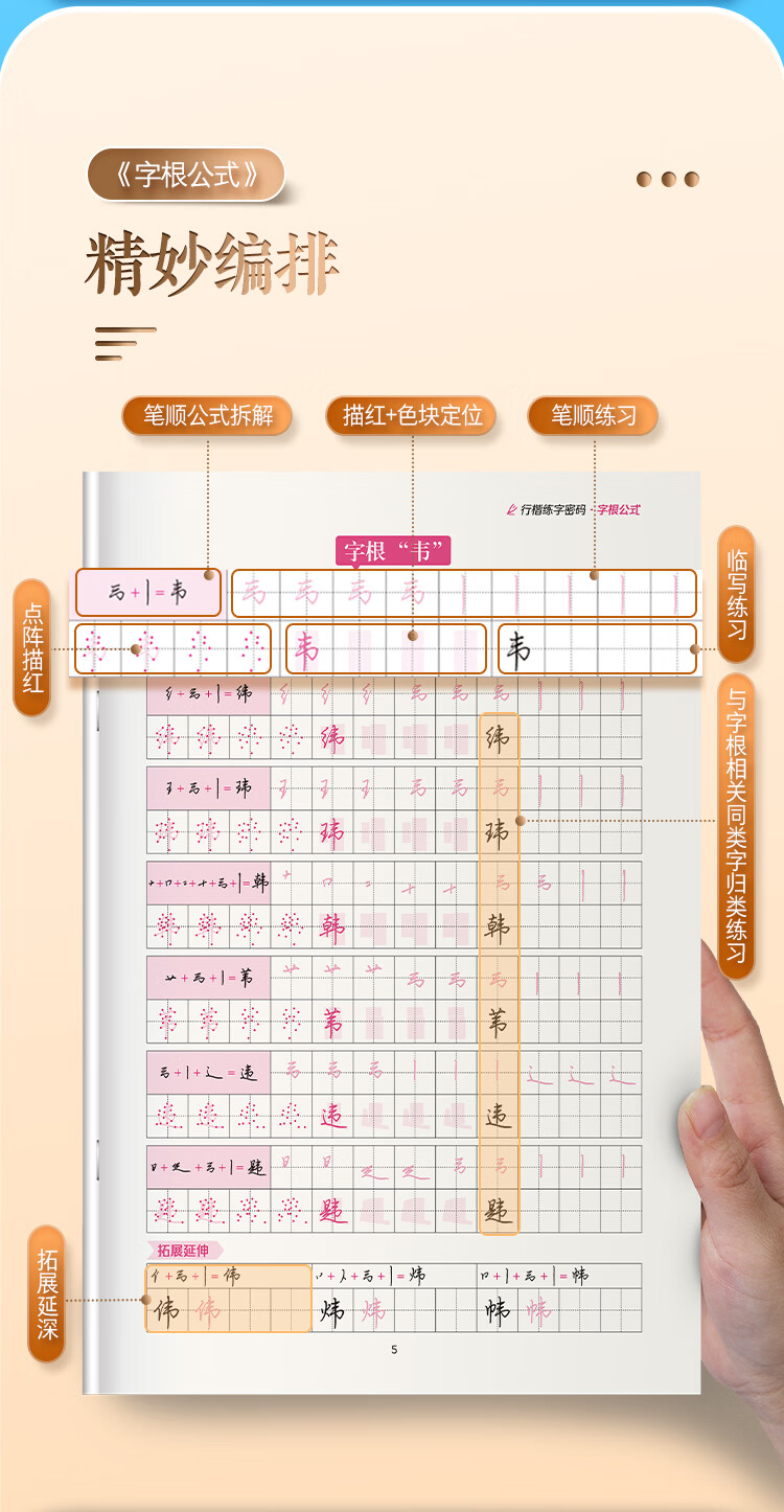 Ink dot copybook, regular script calligraphy practice code, Jing Xiaopeng hard pen copying for beginners, root name formula, regular script calligraphy practice book (5 books)