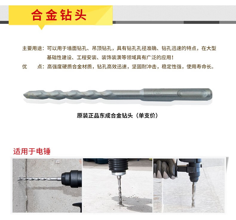 Dongcheng Electric Hammer Impact Drill Bit Round Shank Two Pit Two Slots Alloy Drill Bit Power Tool Accessories 6*160