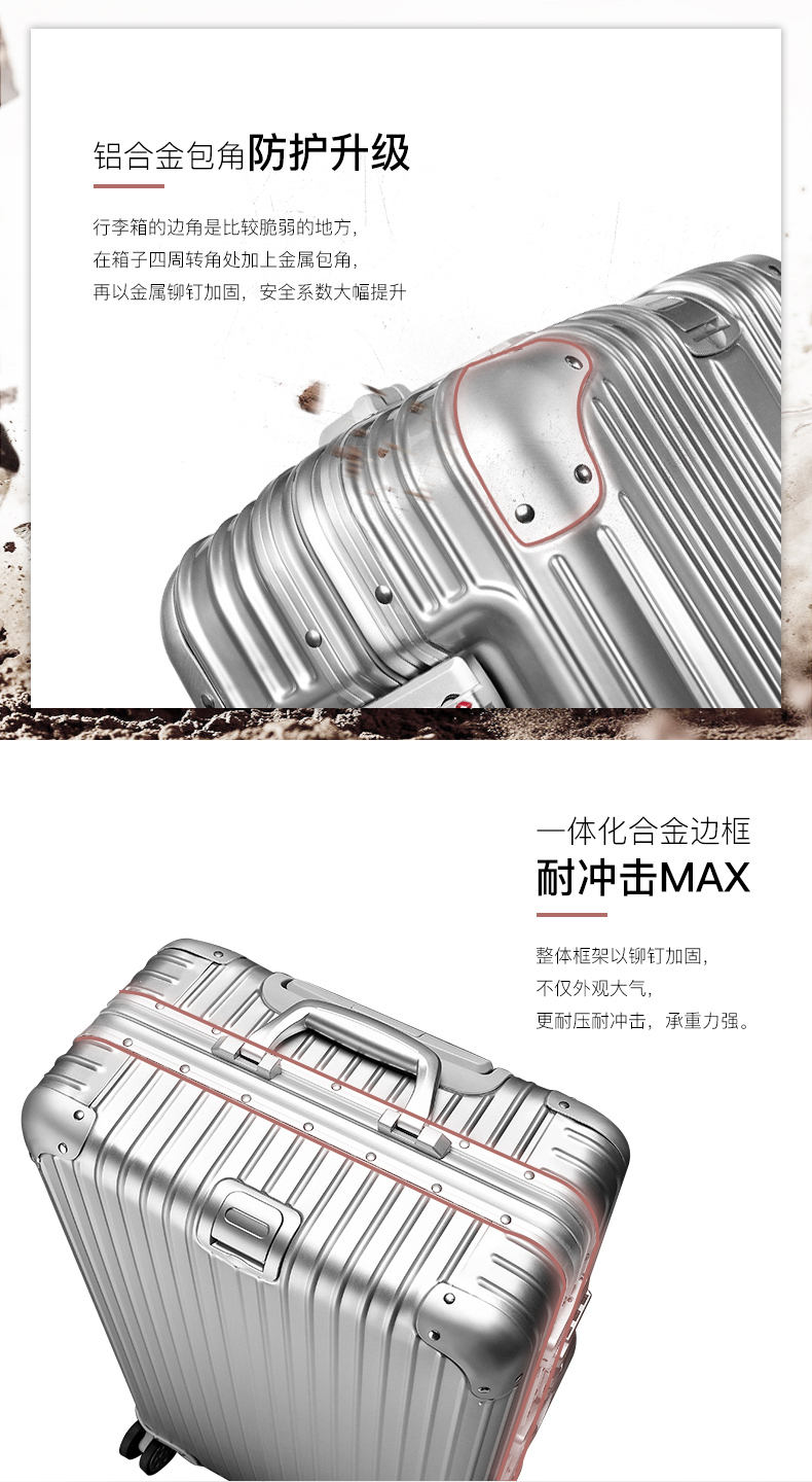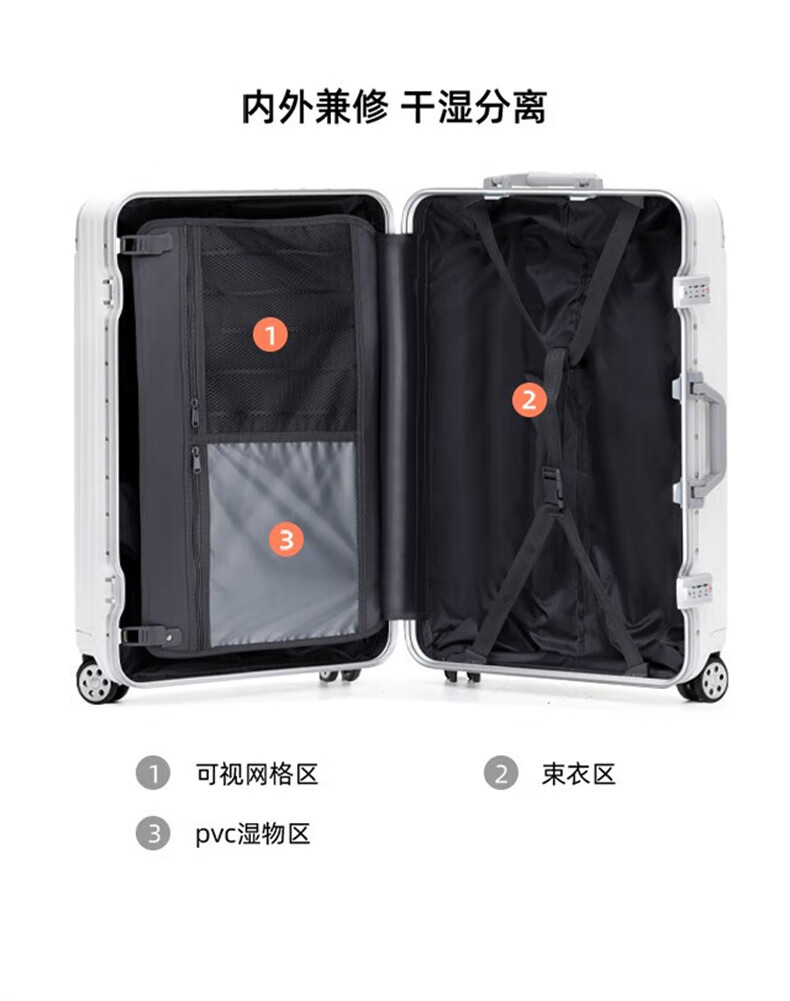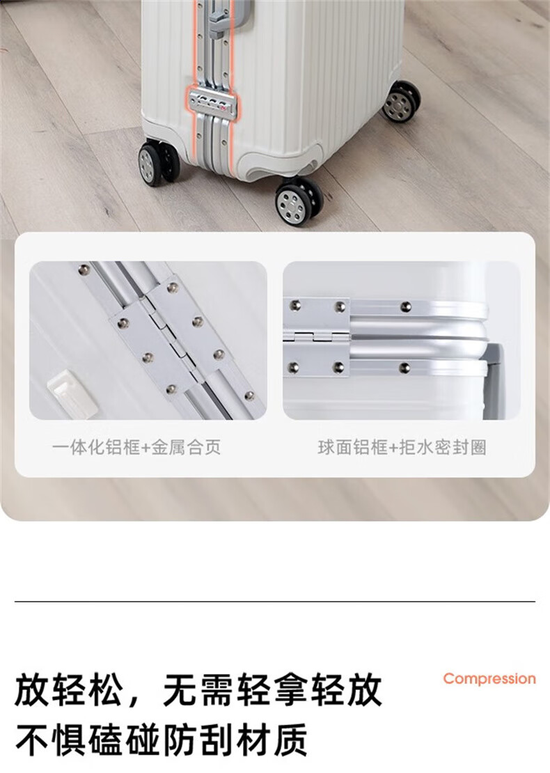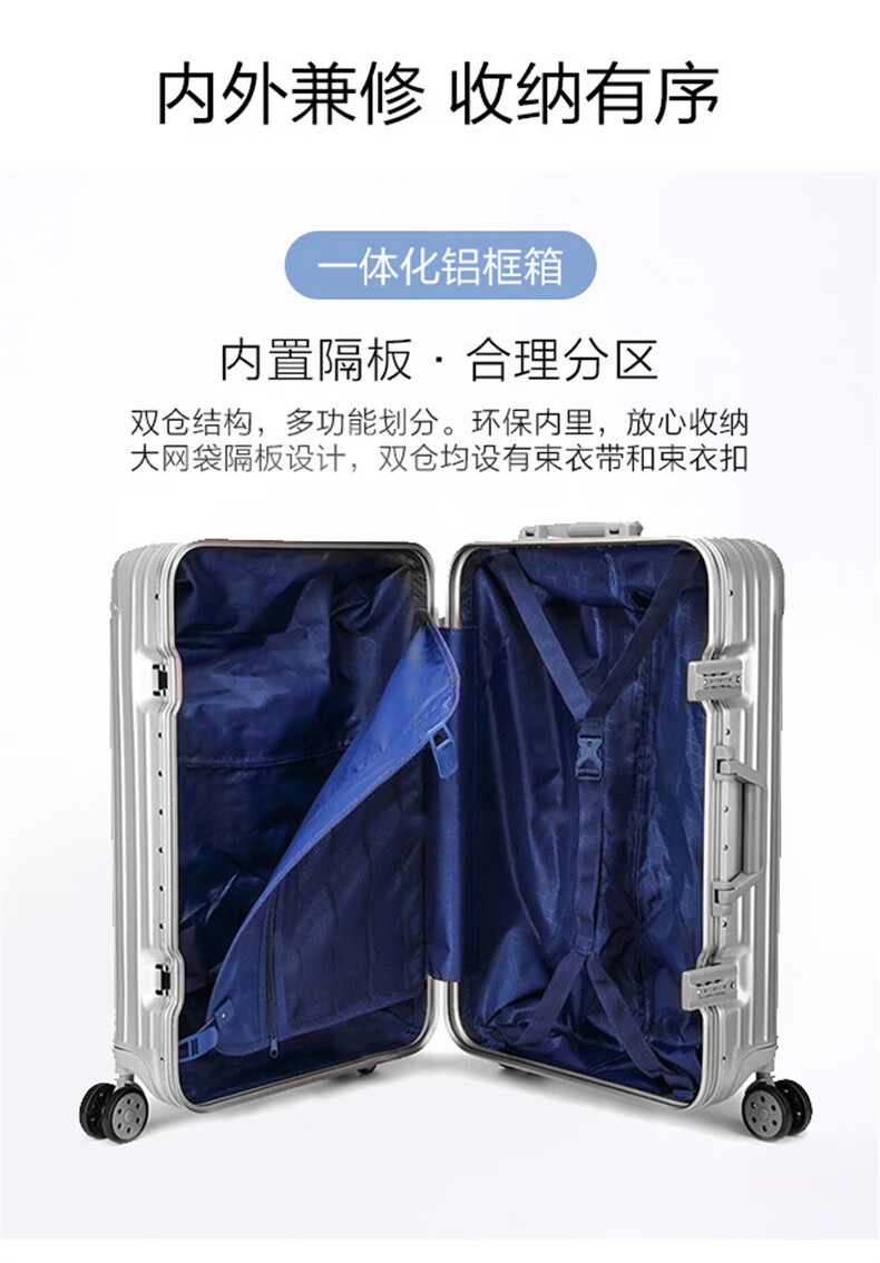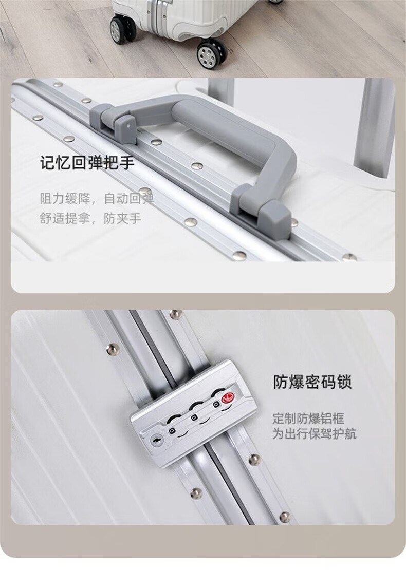EAZZ Europe's award-winning drop-resistant aluminum frame suitcase trolley case, men's and women's carry-on suitcase, student password suitcase, solid aluminum frame - silver 20-inch carry-on suitcase, short-distance