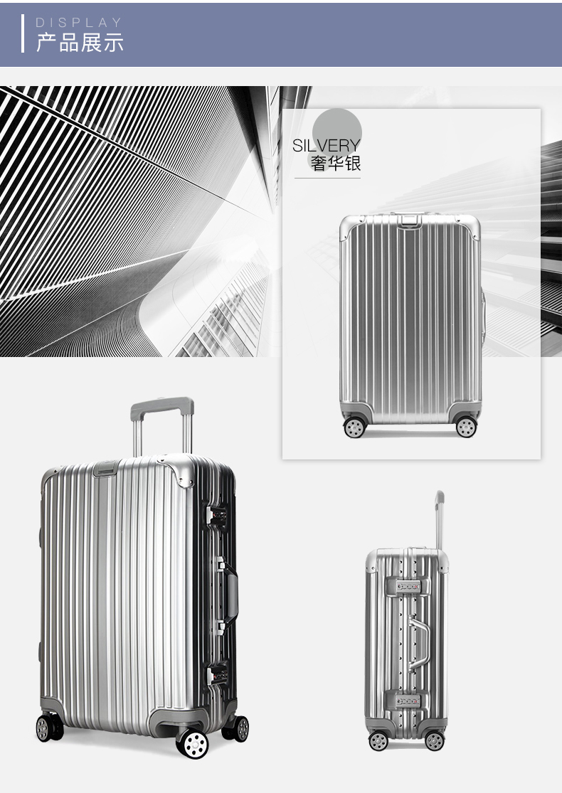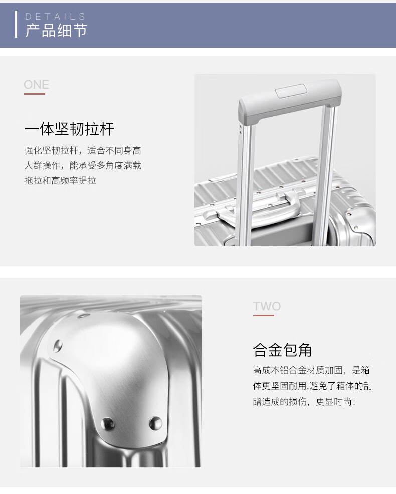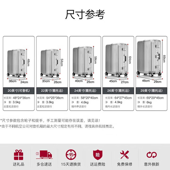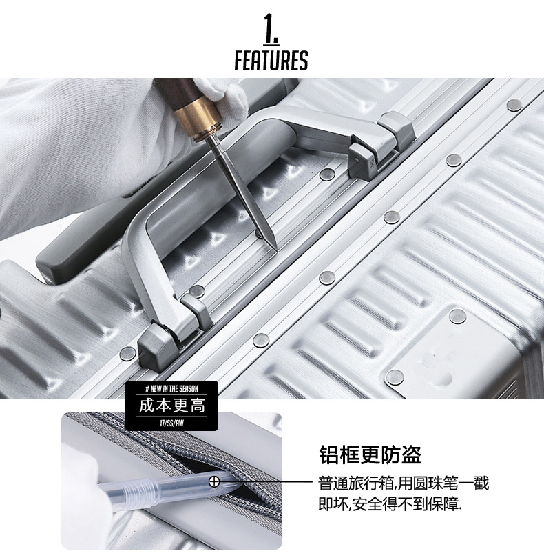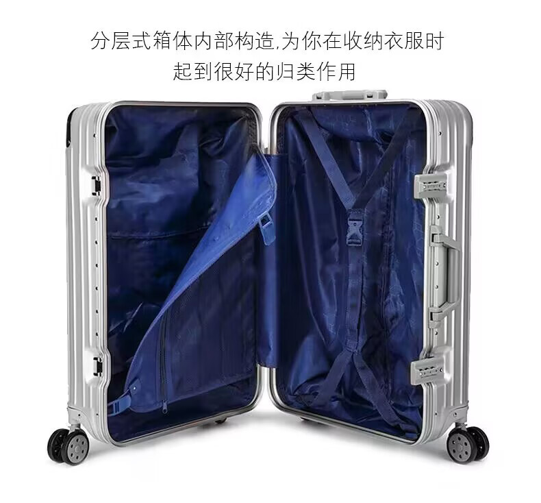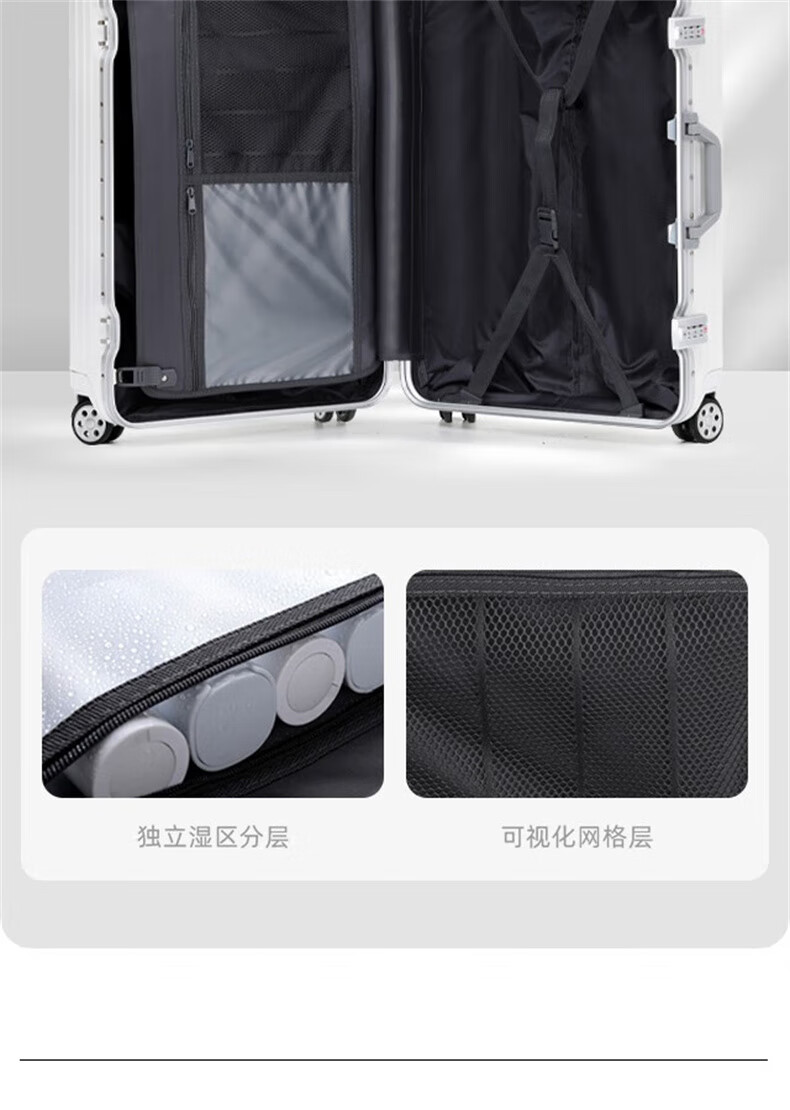 EAZZ Europe's award-winning drop-resistant aluminum frame suitcase trolley case, men's and women's carry-on suitcase, student password suitcase, solid aluminum frame - silver 20-inch carry-on suitcase, short-distance