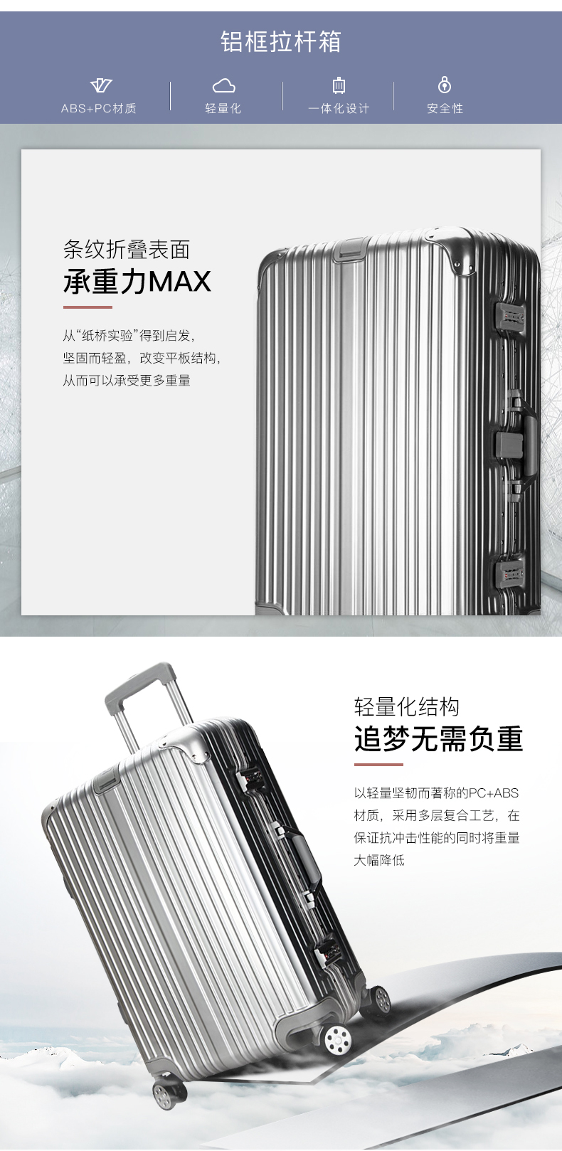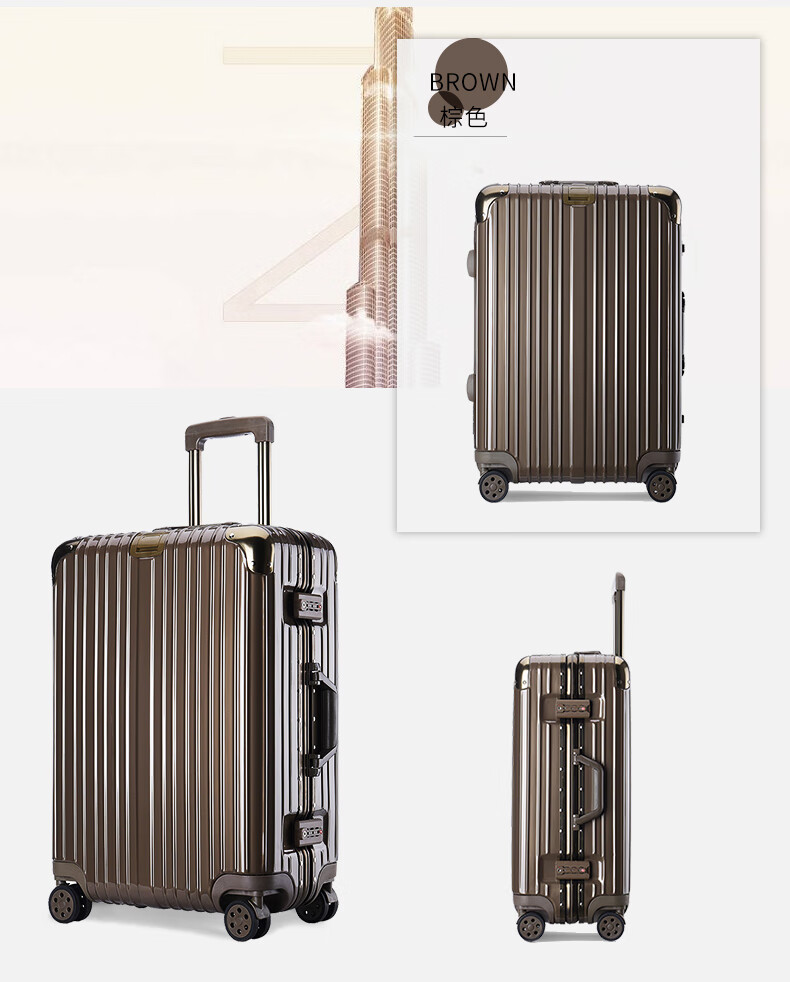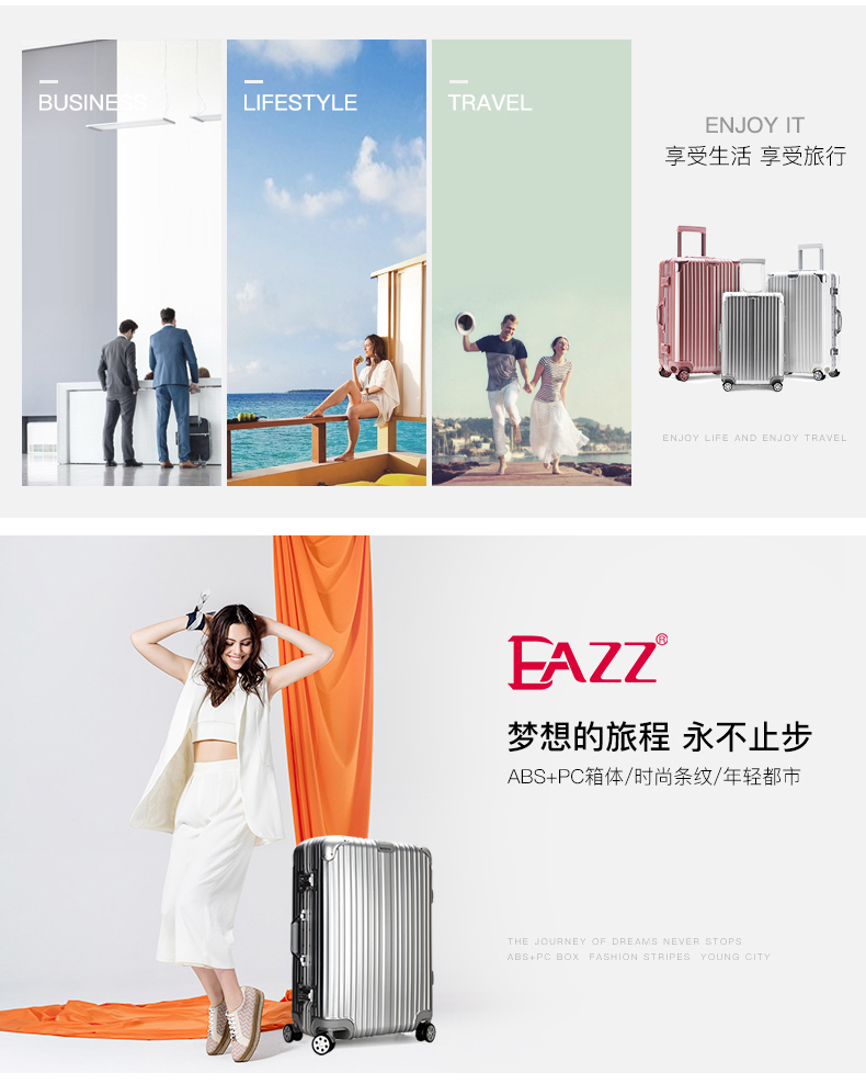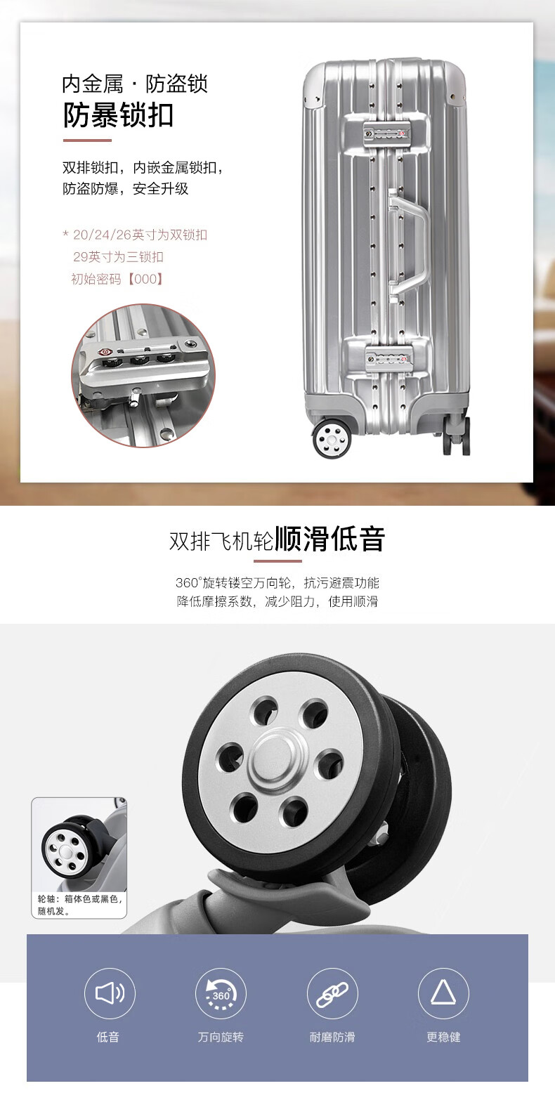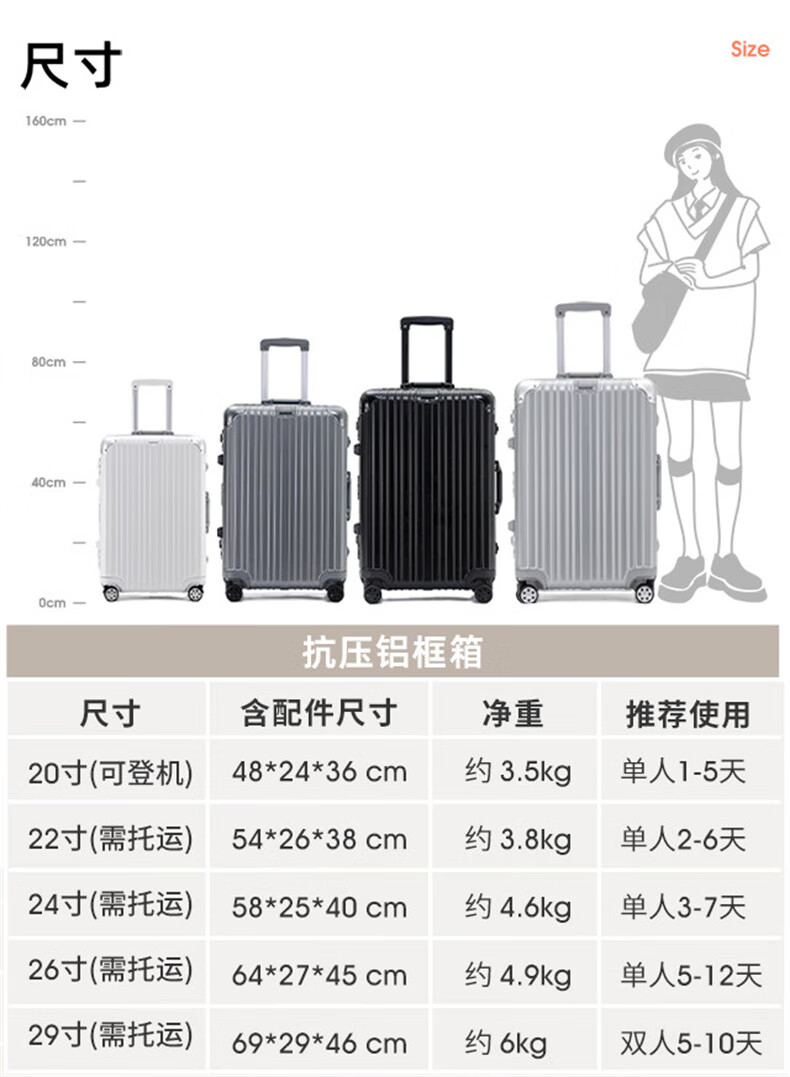 EAZZ Europe's award-winning drop-resistant aluminum frame suitcase trolley case, men's and women's carry-on suitcase, student password suitcase, solid aluminum frame - silver 20-inch carry-on suitcase, short-distance