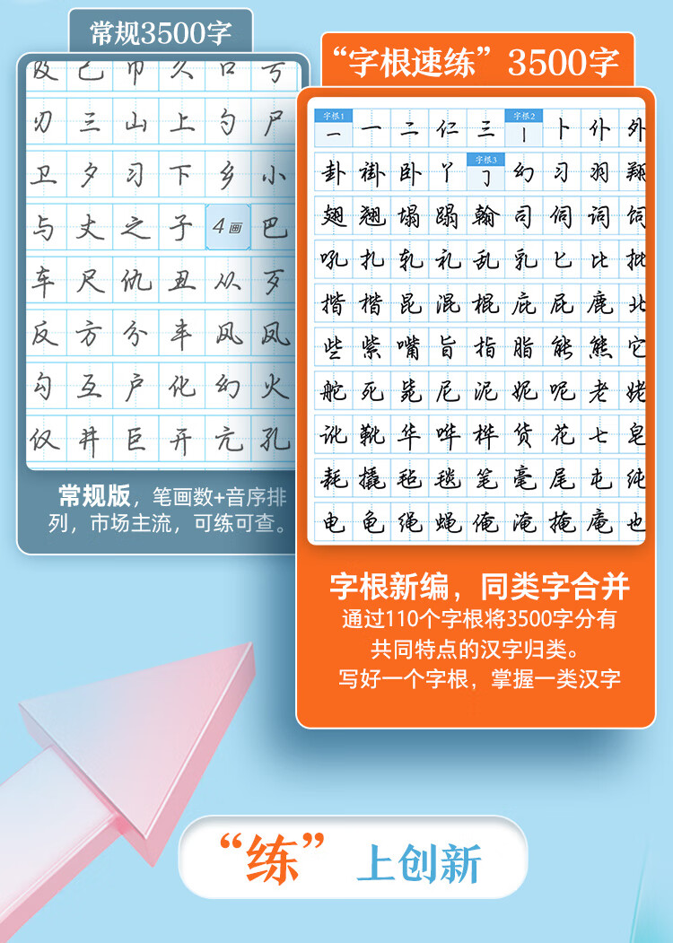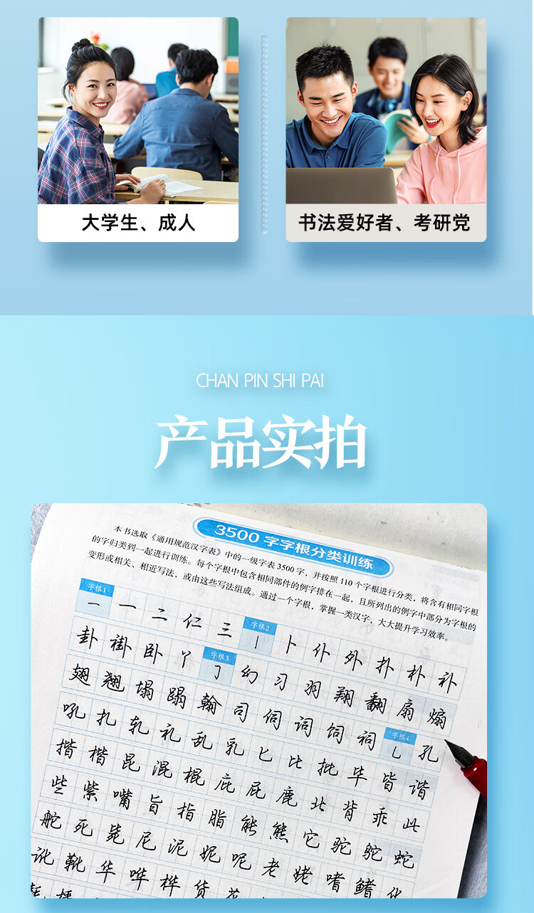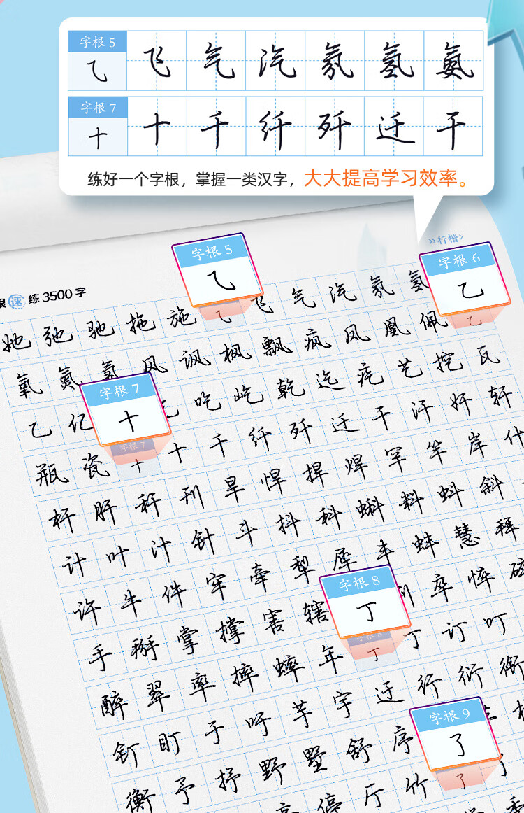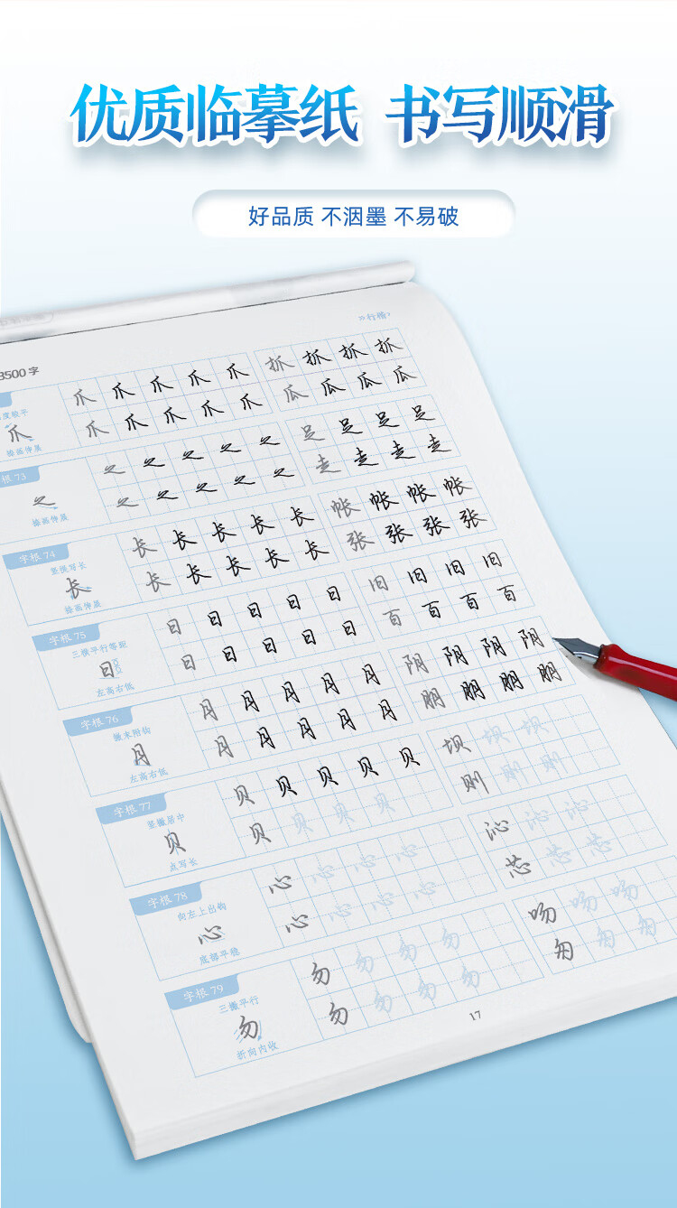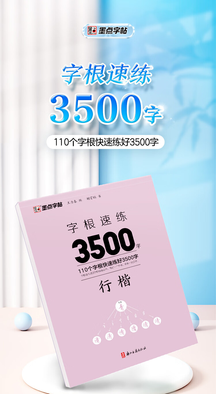 Ink dot copybook, quick practice of 3500 words of character roots, regular script, Jing Xiaopeng, quick practice of character roots of regular script, hard-pen copying of commonly used character roots for beginners