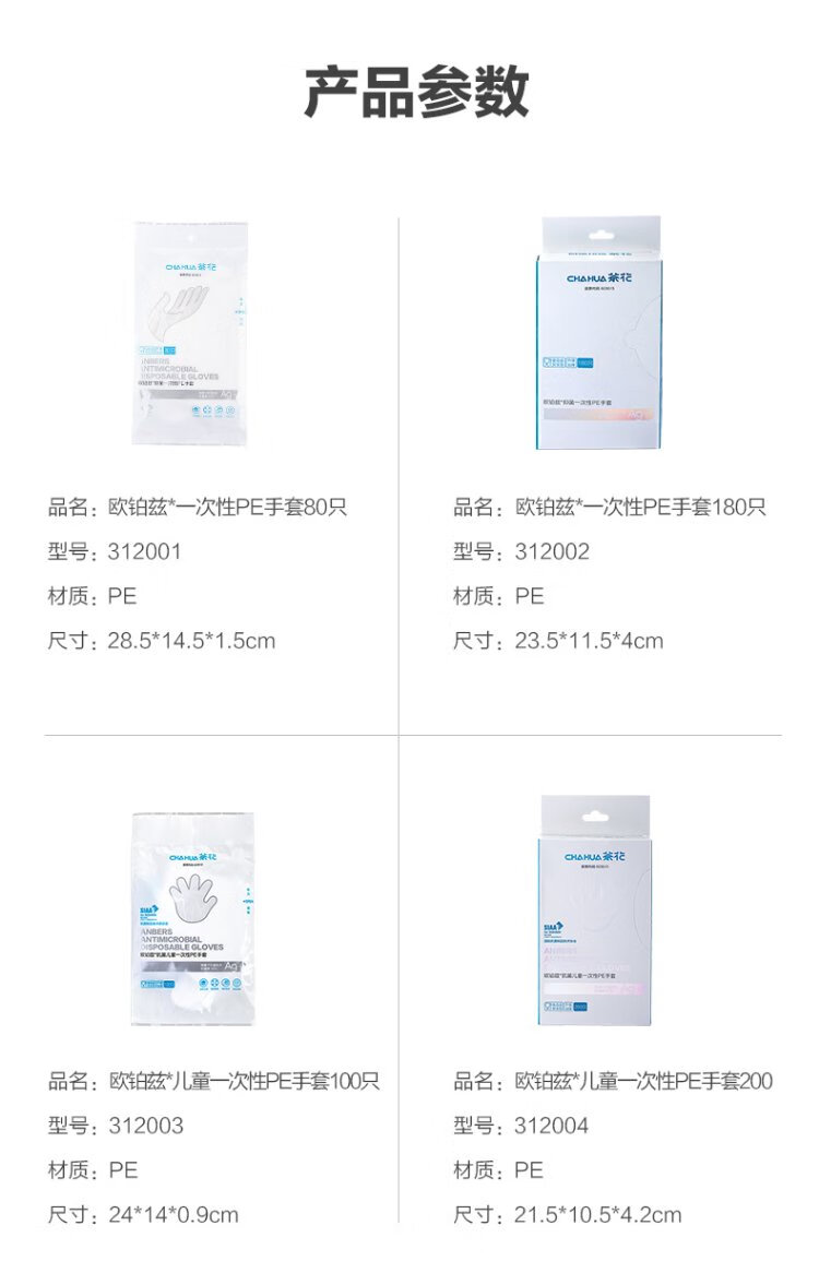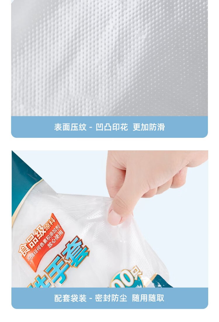 Camellia (CHAHUA) disposable gloves food grade edible plastic gloves kitchen food gloves hygienic eating lobster seafood barbecue thickened version 1 bag 100 pieces