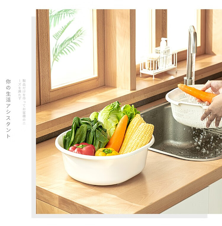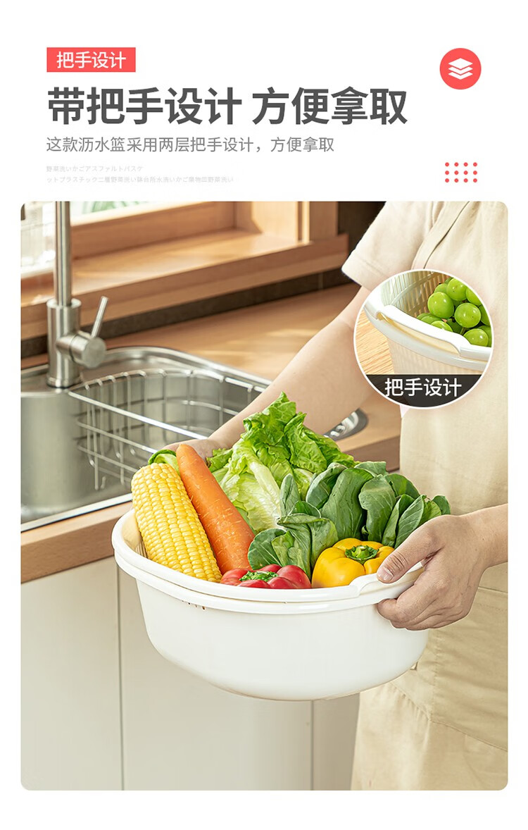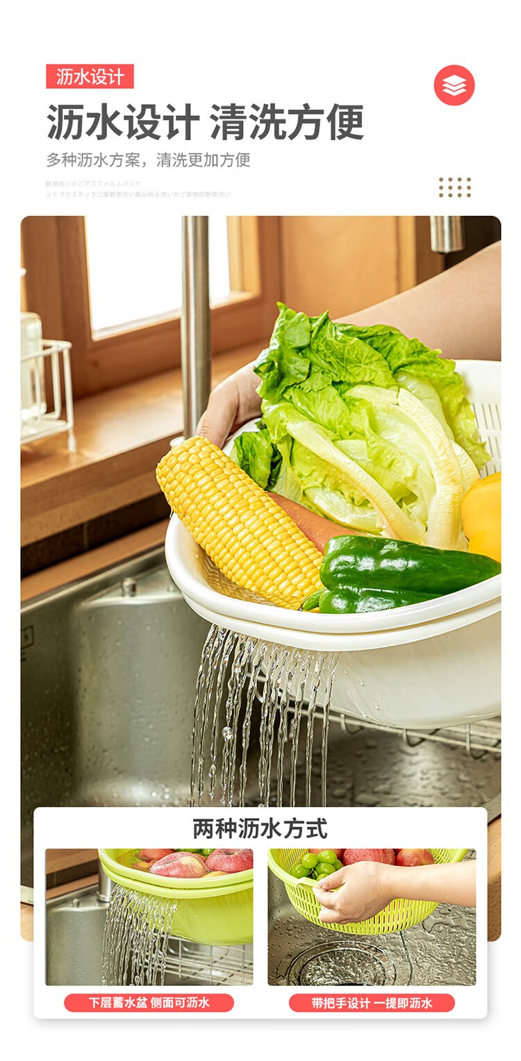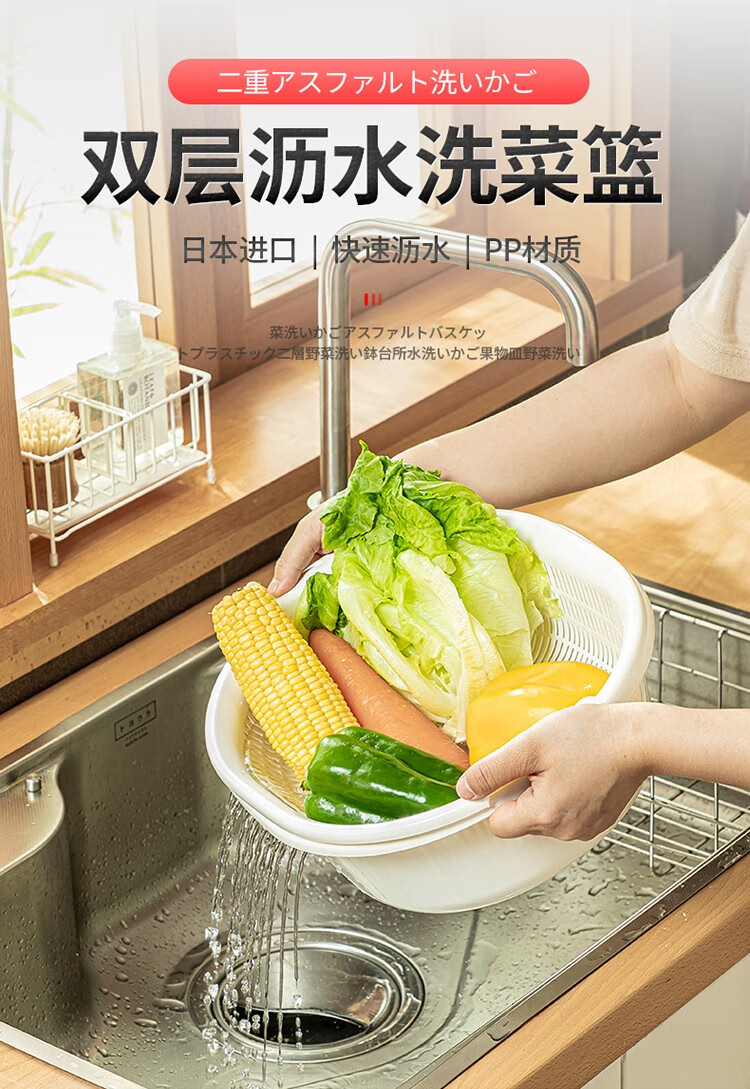 Home KATEI STORY Japanese imported kitchen drain basket plastic sink fruit and vegetable washing basin dish storage basket white set (double layer)