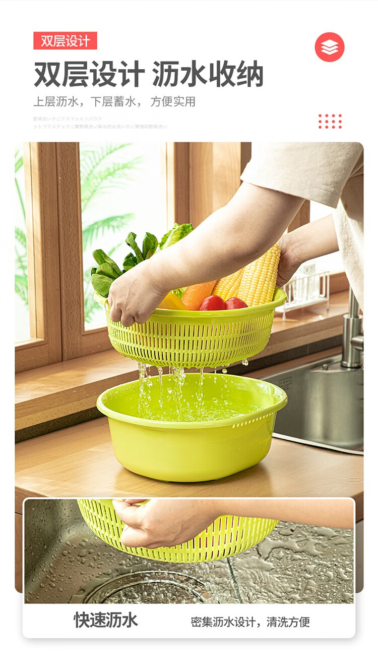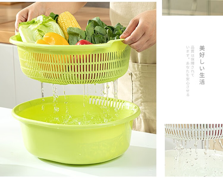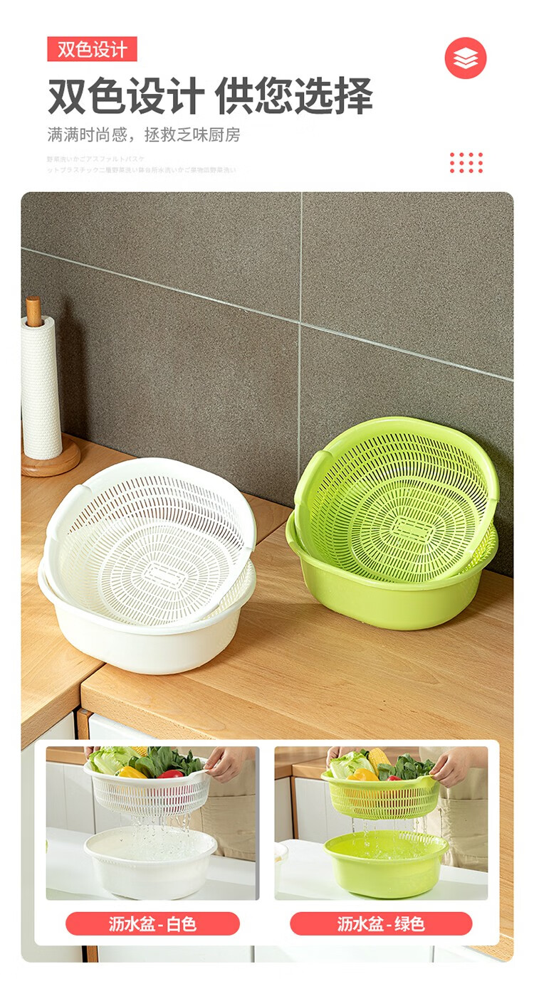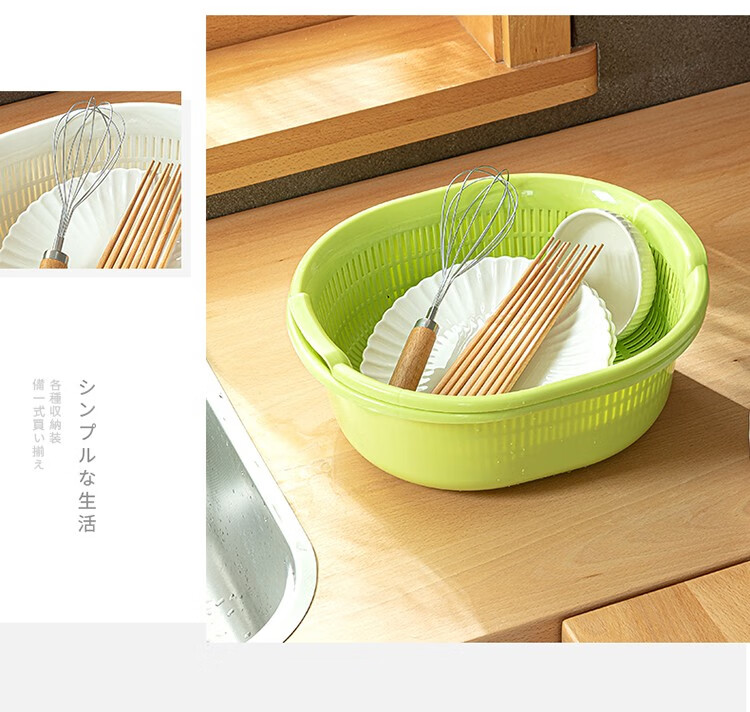 Home KATEI STORY Japanese imported kitchen drain basket plastic sink fruit and vegetable washing basin dish storage basket white set (double layer)