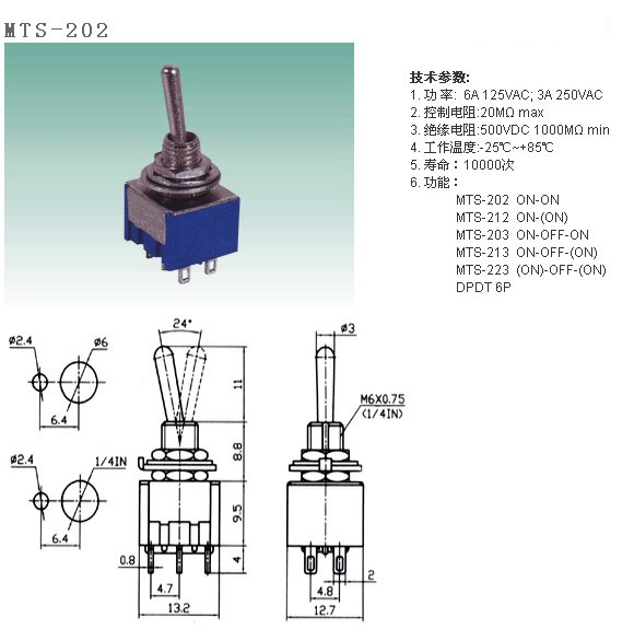 TaoTimeClub toggle switch toggle switch MTS202 3A/250V 6A/125V double