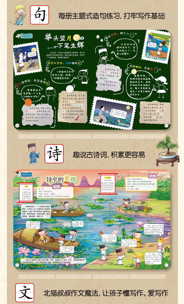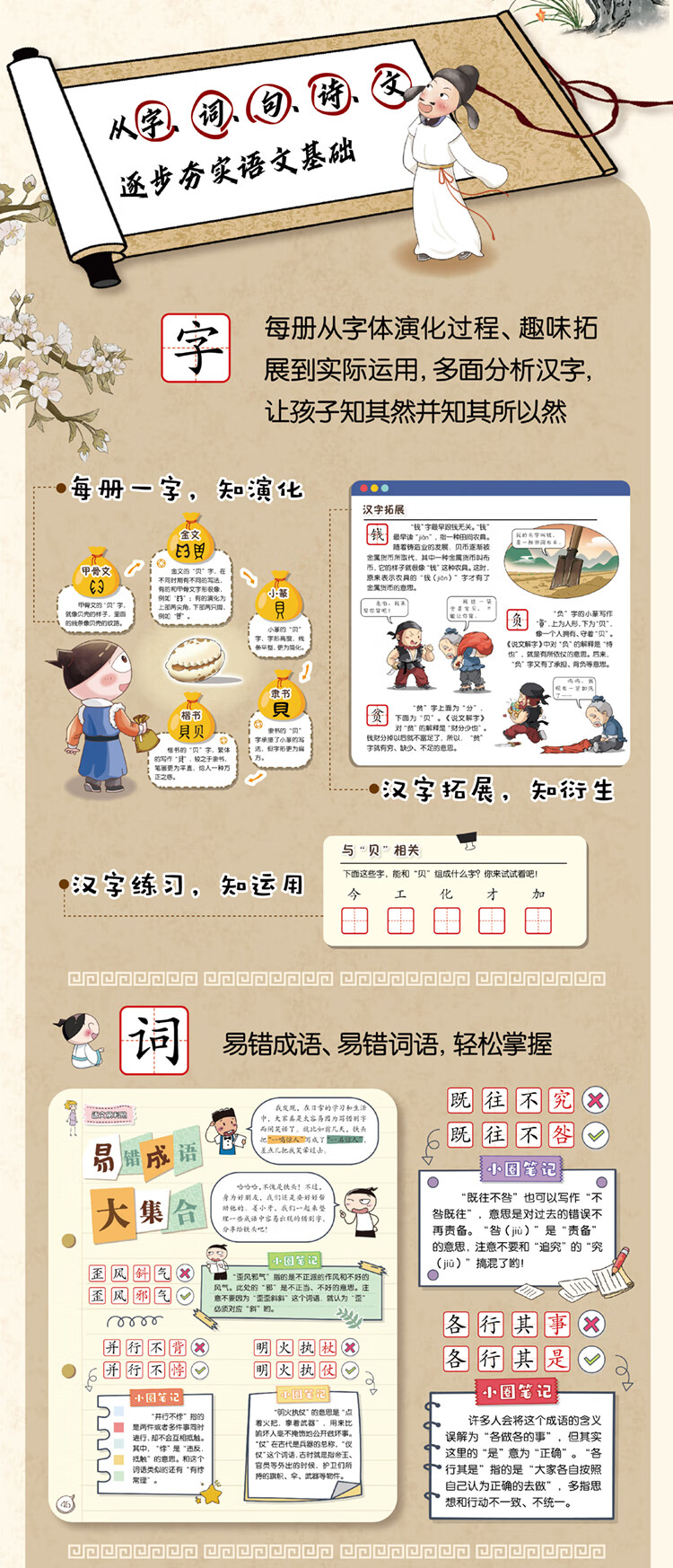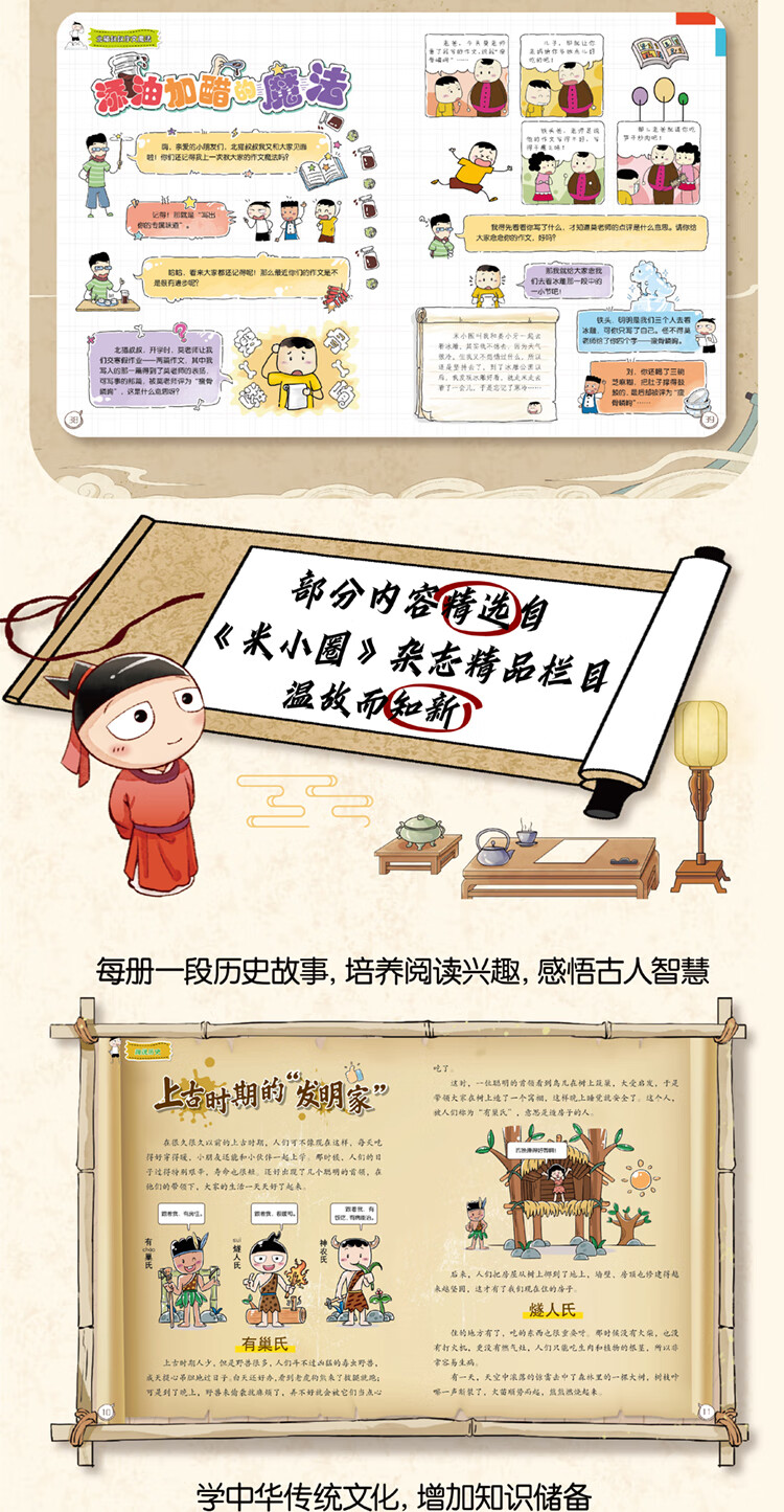Mi Xiaoquan Happy Chinese Language Issues 1-6 (6 volumes in total) comic version of children's literature extracurricular reading book Uncle Beimao's works collection Chinese character enlightenment and expansion exercises, a large collection of easy-to-error questions and idioms, sentence-making exercises, interesting explanations and clever interpretations of ancient poems, fun and easy-to-learn composition materials, stories, idioms, celebrity stories, historical stories