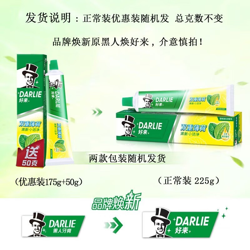 DARLIE Haolai (formerly Black) Double Mint Toothpaste Family Pack Fresh Breath Family Set Large Pack 175g