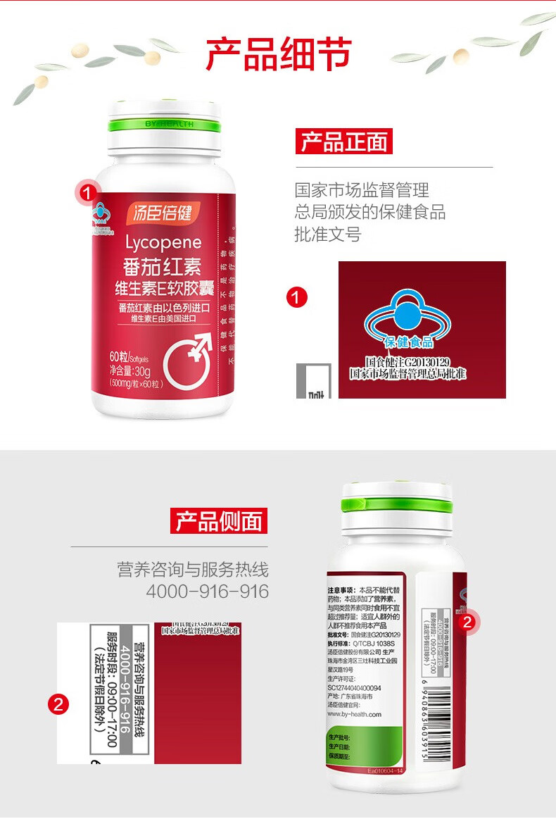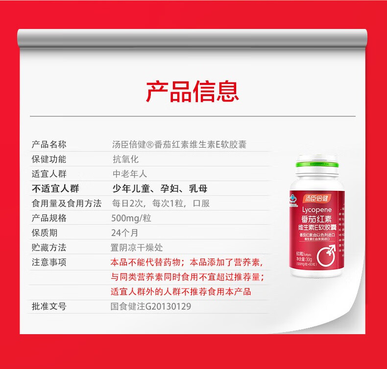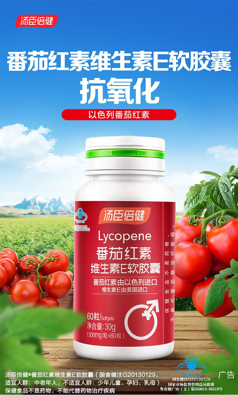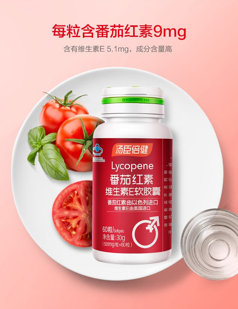 Tomson By-Health Lycopene Vitamin E Soft Capsules 60 capsules for adults, middle-aged and elderly health care products for pregnancy, synergistic antioxidants
