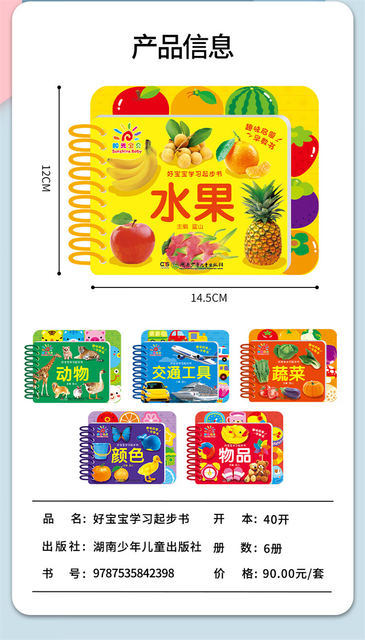 Sunshine Baby Good Baby Learning Start Book (Set of 6 volumes) Toddler Enlightenment Cognition Early Education Tearable Card Book Fruits, Vegetables Colors Animals Summer Homework Summer Connection from One to Two Summer Summer Connection from Primary to Junior High School