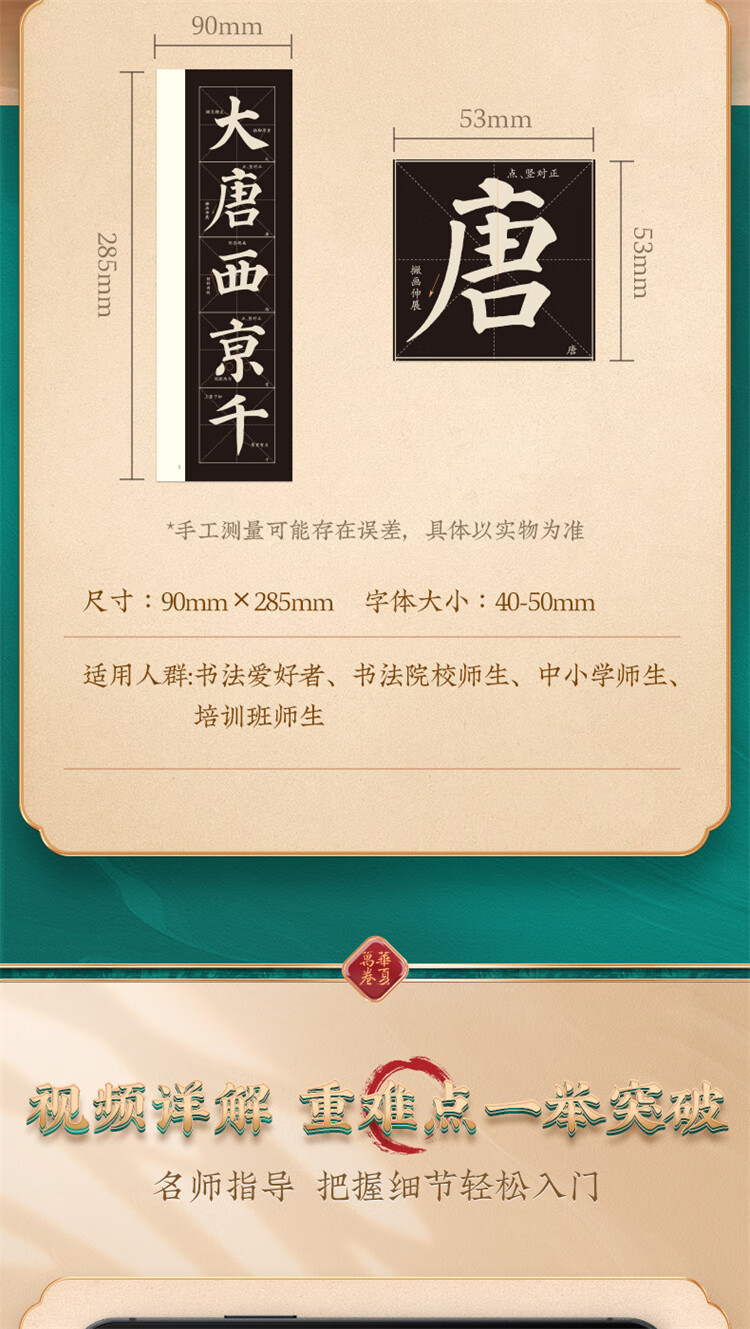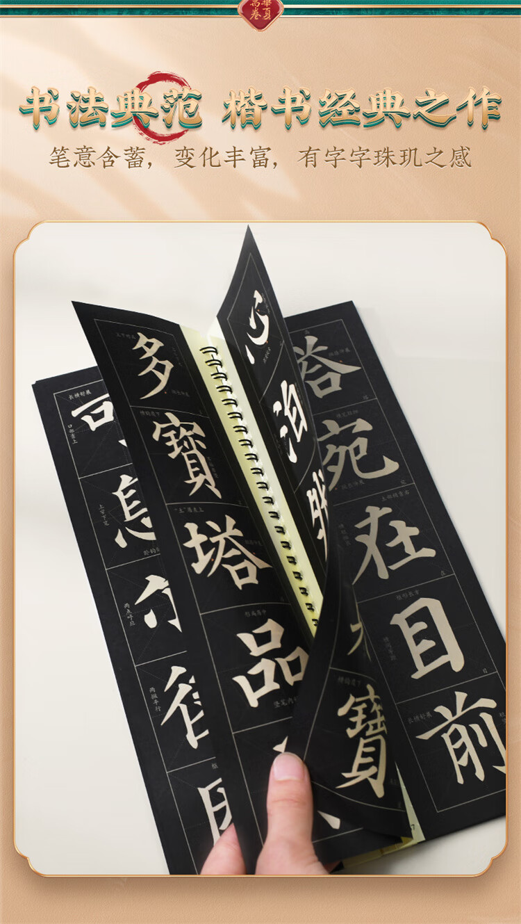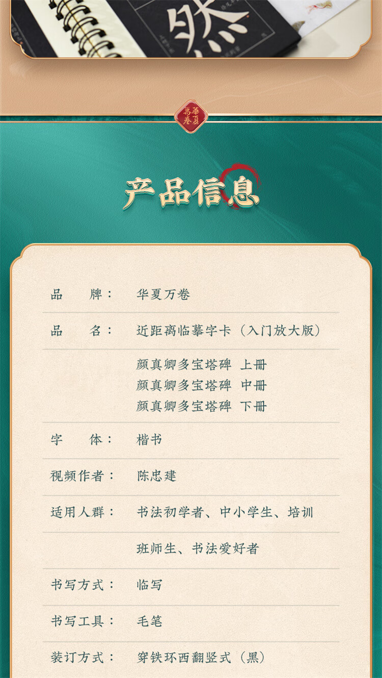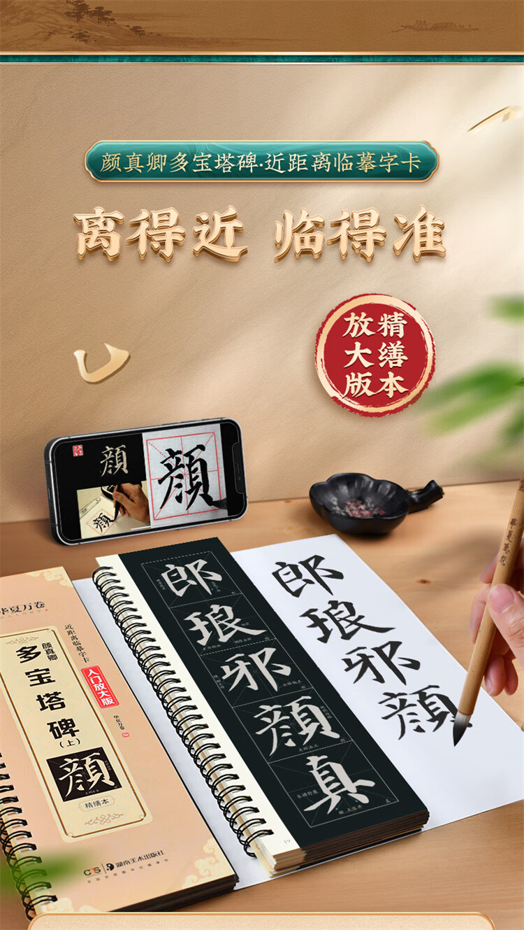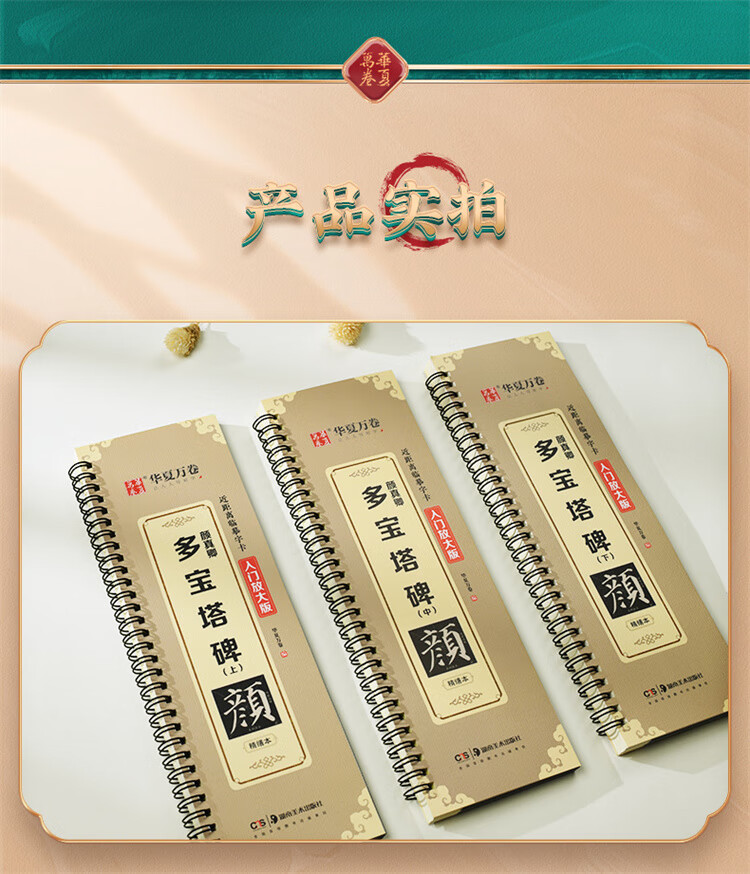 Huaxia Wanjuan calligraphy brush close-up high-definition copying and fine-grained large-character cards. Beginner's enlarged version of Yan Zhenqing Duobao Pagoda Monument Volume 1. Adult beginners' copying calligraphy cards and soft-pen calligraphy brush copybooks.
