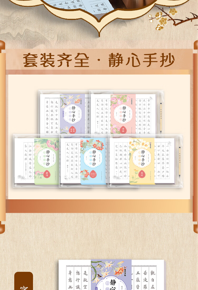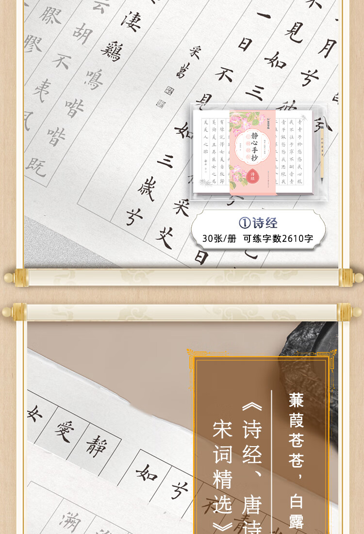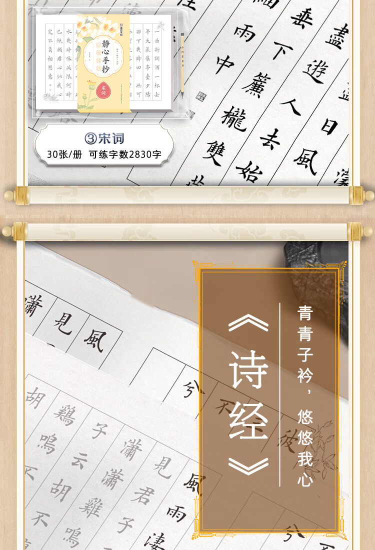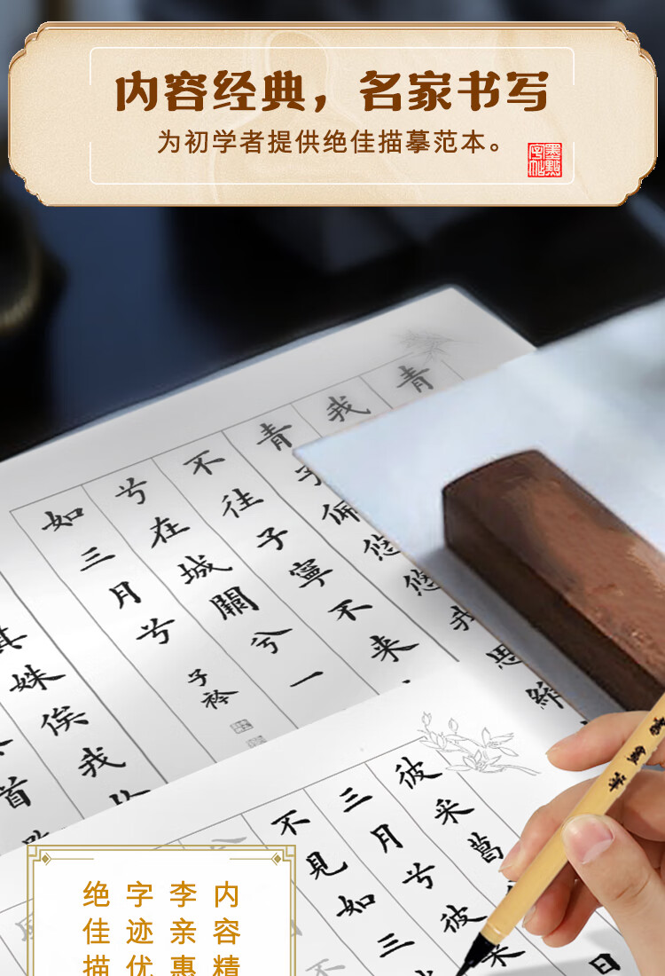 Ink dot copybook, Jingxin hand-copied small regular script with red line of poetry, selected Tang poems and Song lyrics, adult brush calligraphy paper, beginner's small regular script with red line calligraphy, soft pen line with red line copybook