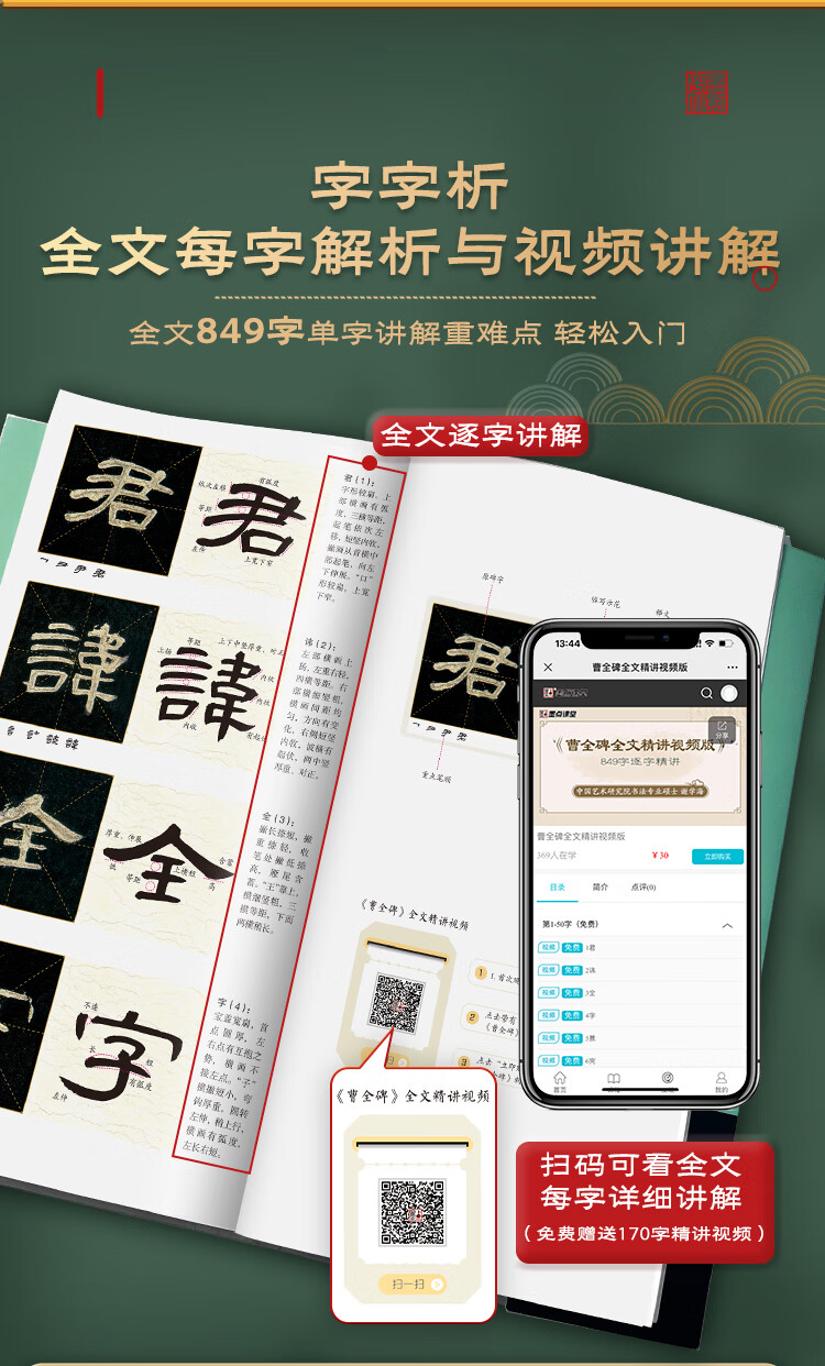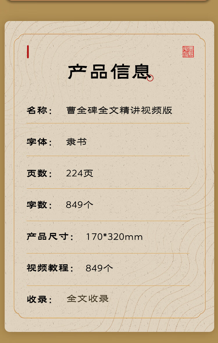 Free shipping, ink dot copybook, video version of the full text of Cao Quan's stele, detailed explanation is helpful for beginners to practice calligraphy