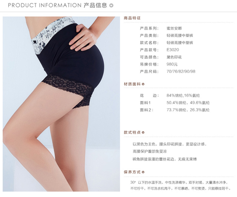 Lightness E3020 lightweight sexy printed high-waisted mid-shape pants black M