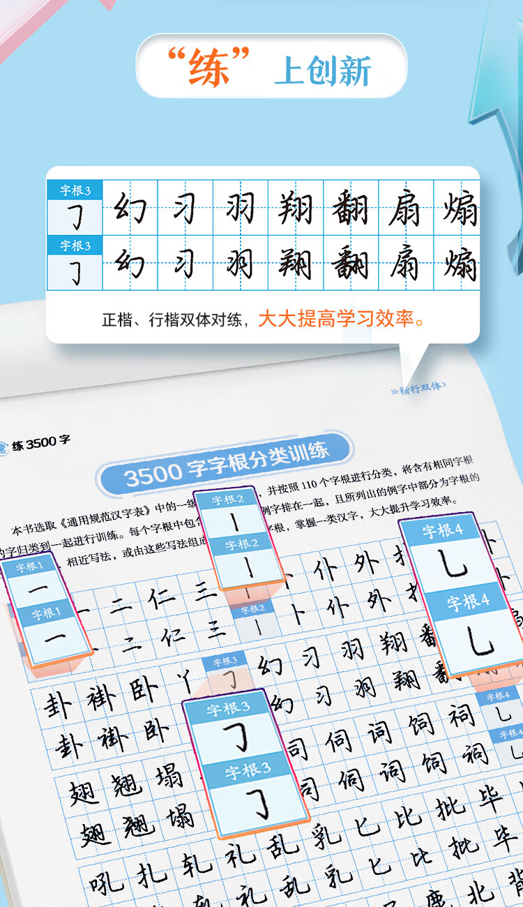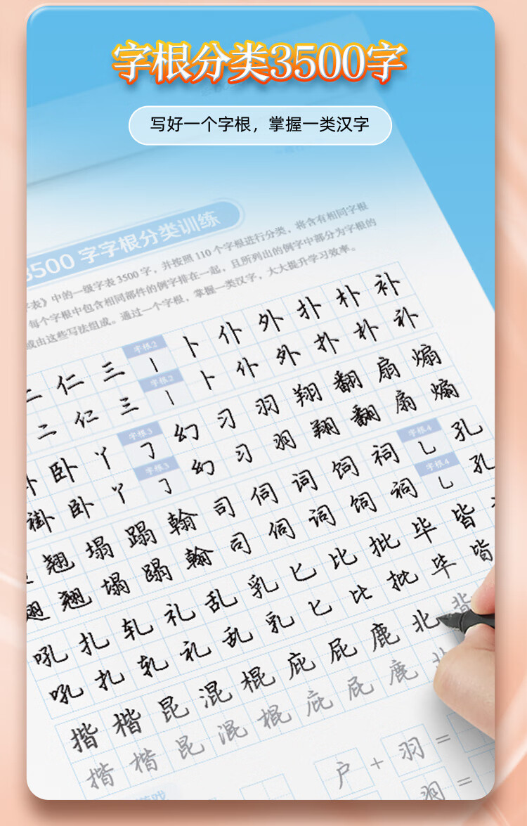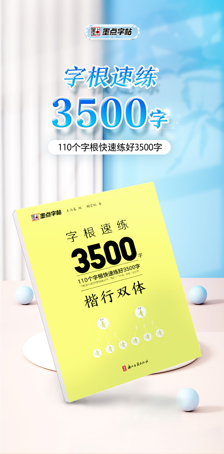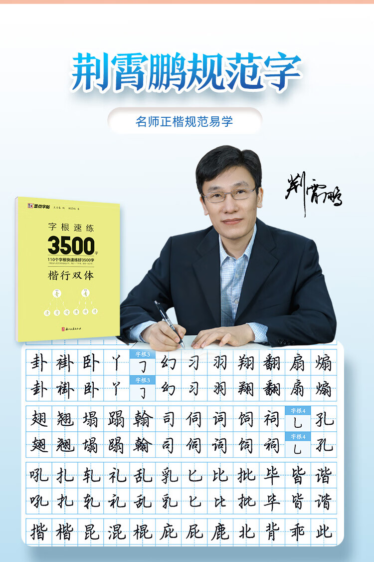 Ink dot copybook, quick practice of 3500 words of character roots, regular script and double body, Jing Xiaopeng, regular character script and double body, quick practice of common character roots for beginners, hard-pen copying