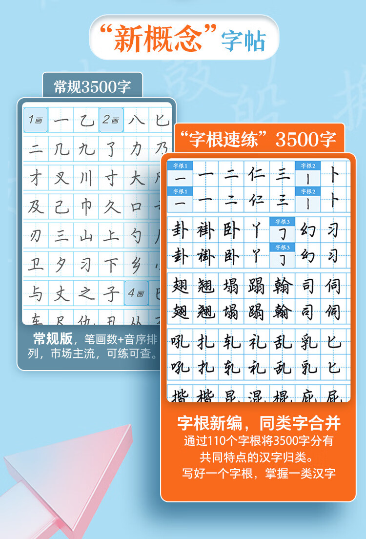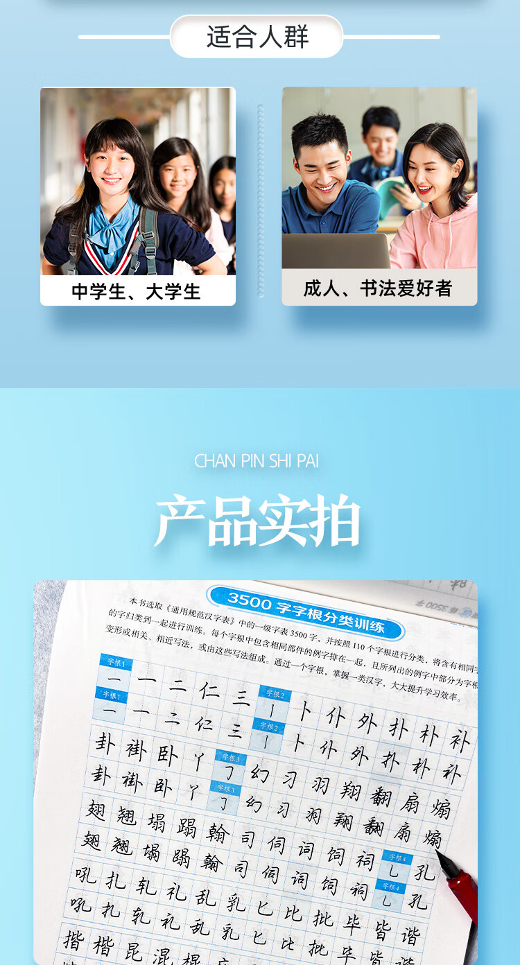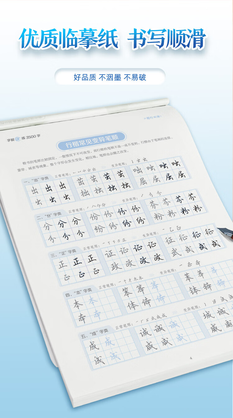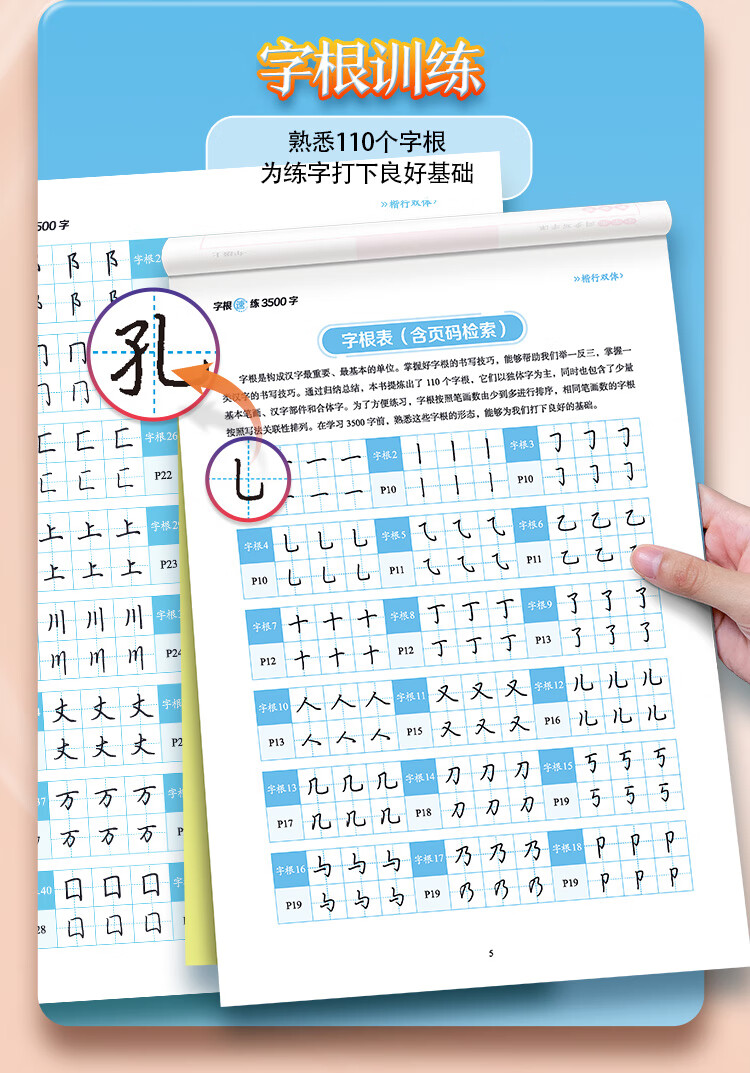 Ink dot copybook, quick practice of 3500 words of character roots, regular script and double body, Jing Xiaopeng, regular character script and double body, quick practice of common character roots for beginners, hard-pen copying
