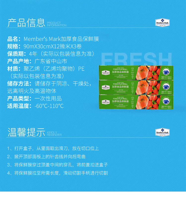 Thickened food plastic wrap 3 rolls 3 rolls 90m