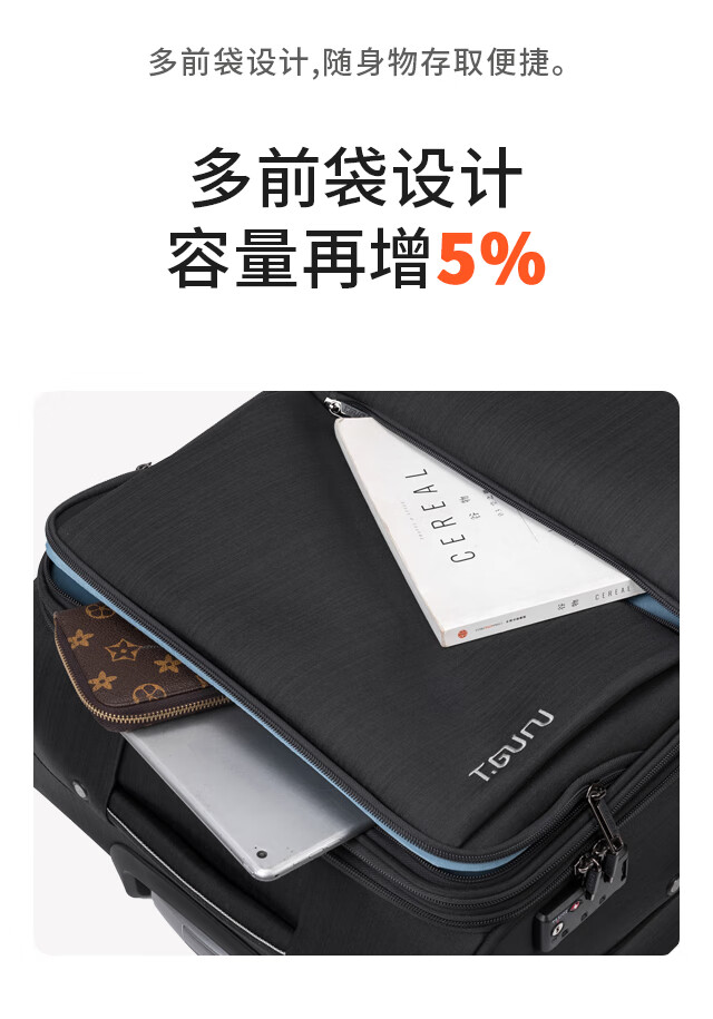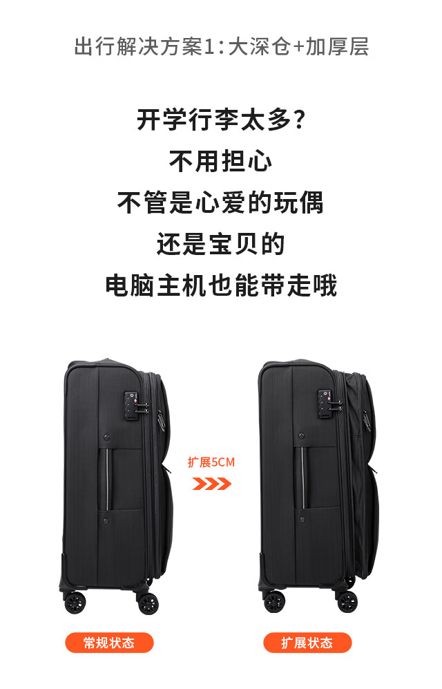 Travel Master (TGURU) Oxford cloth password box is sturdy and durable, thickened large suitcase, men's checked suitcase, large capacity, extra large suitcase, black zipper, 30 inches, compliant with 158cm airline check-in
