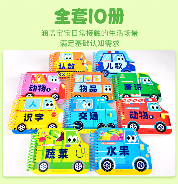 Sunshine Baby Baby Enlightenment Cognitive Book Picture Book Little Car Fan Early Education Flip Card Tang Poetry 0-3 Years Old Infant Cognitive Card Learning Ancient Poetry Thickened Cardboard Book Children's Tear-proof Flip Book
