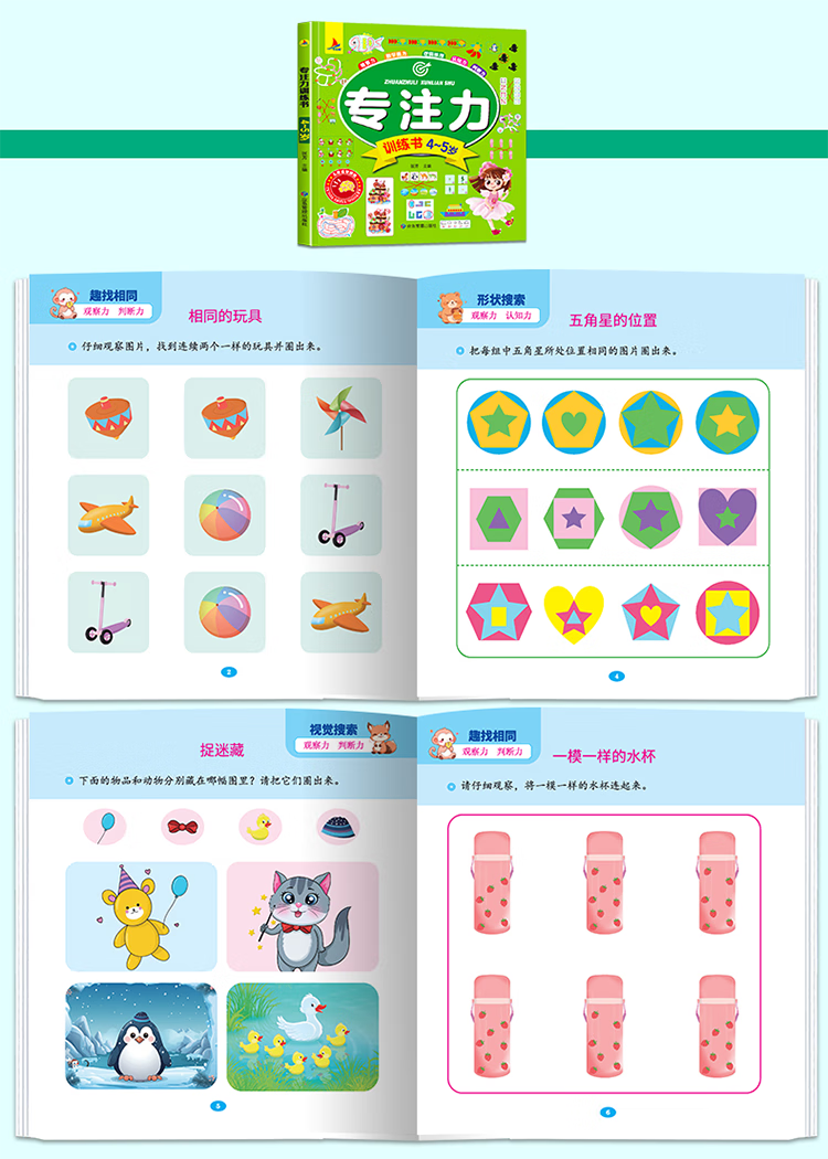 Concentration training book, intellectual game development for 4-5-year-old children, children's book to improve observation, mathematical logic and judgment ability, preschool education reference book, featured in Book Fragrance Festival Reading Festival