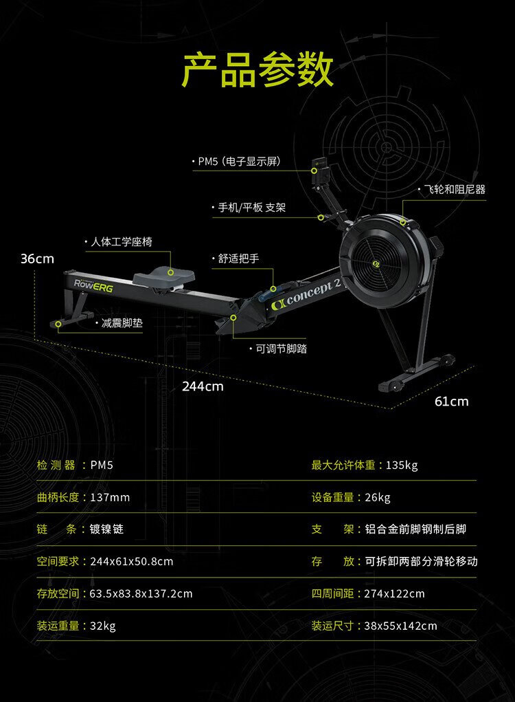 Concept2 American brand wind resistance rowing machine C2 rowing dynamometer can be used for home and commercial use, black