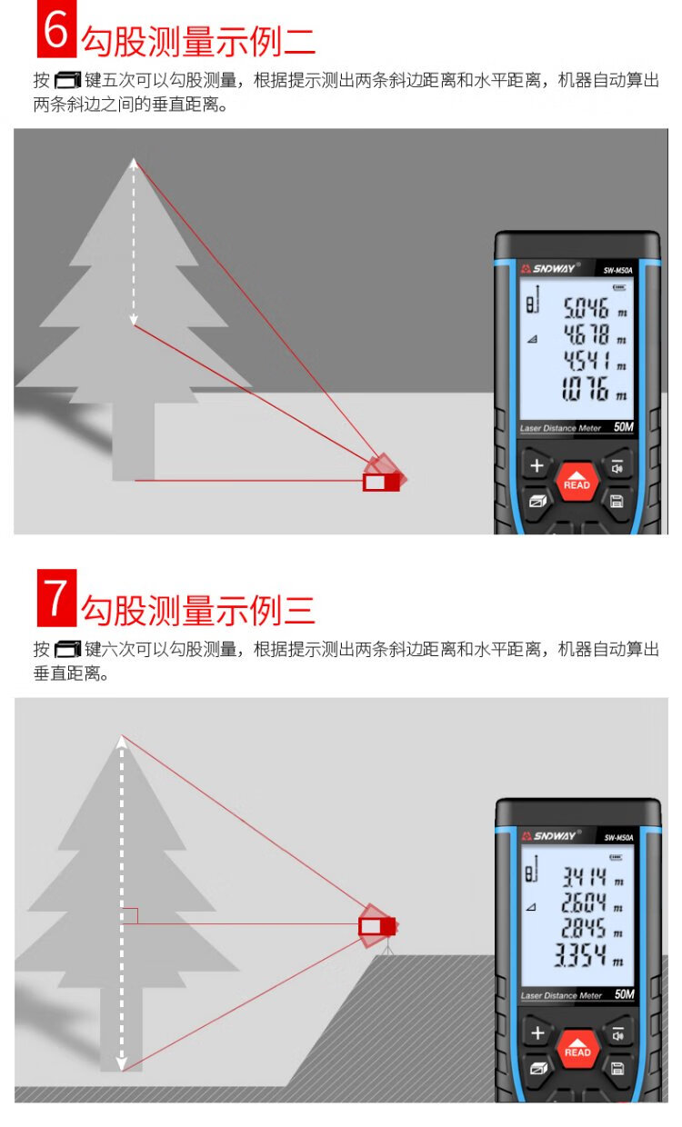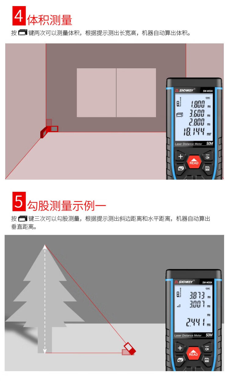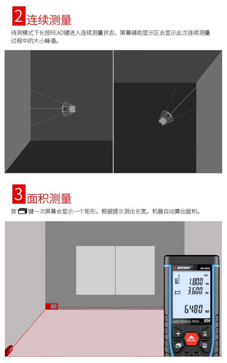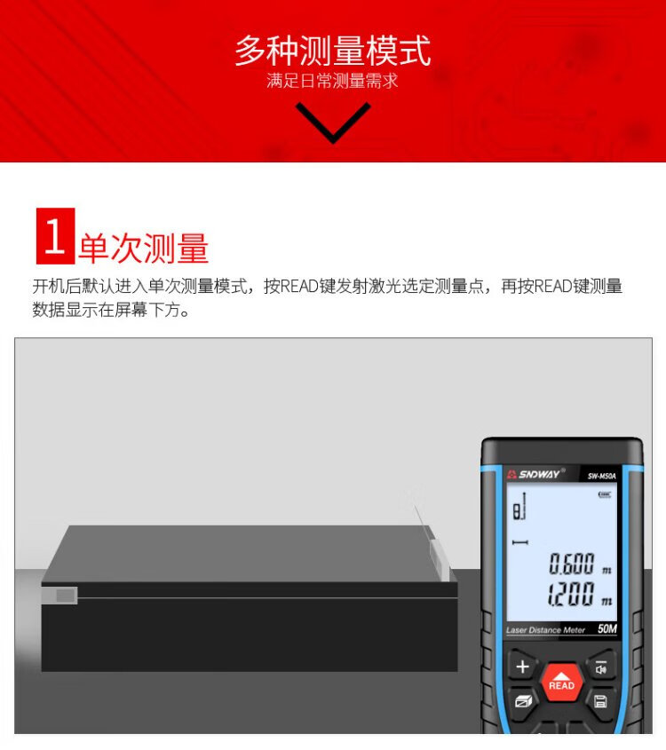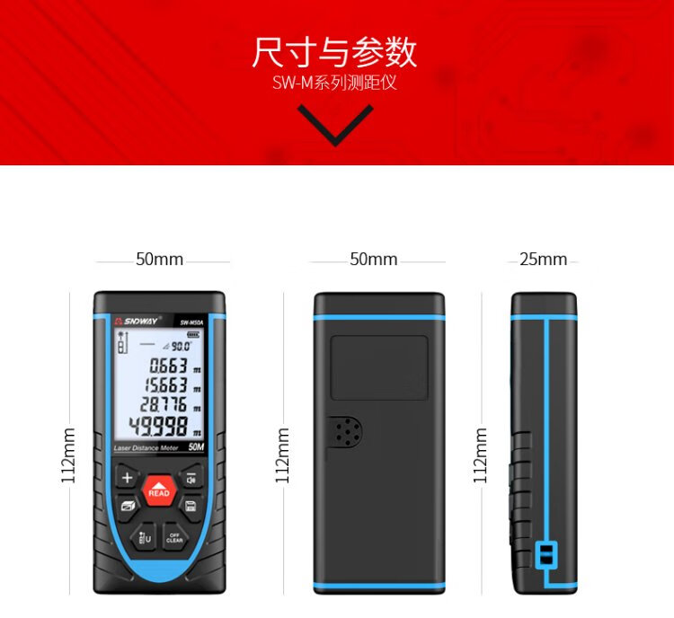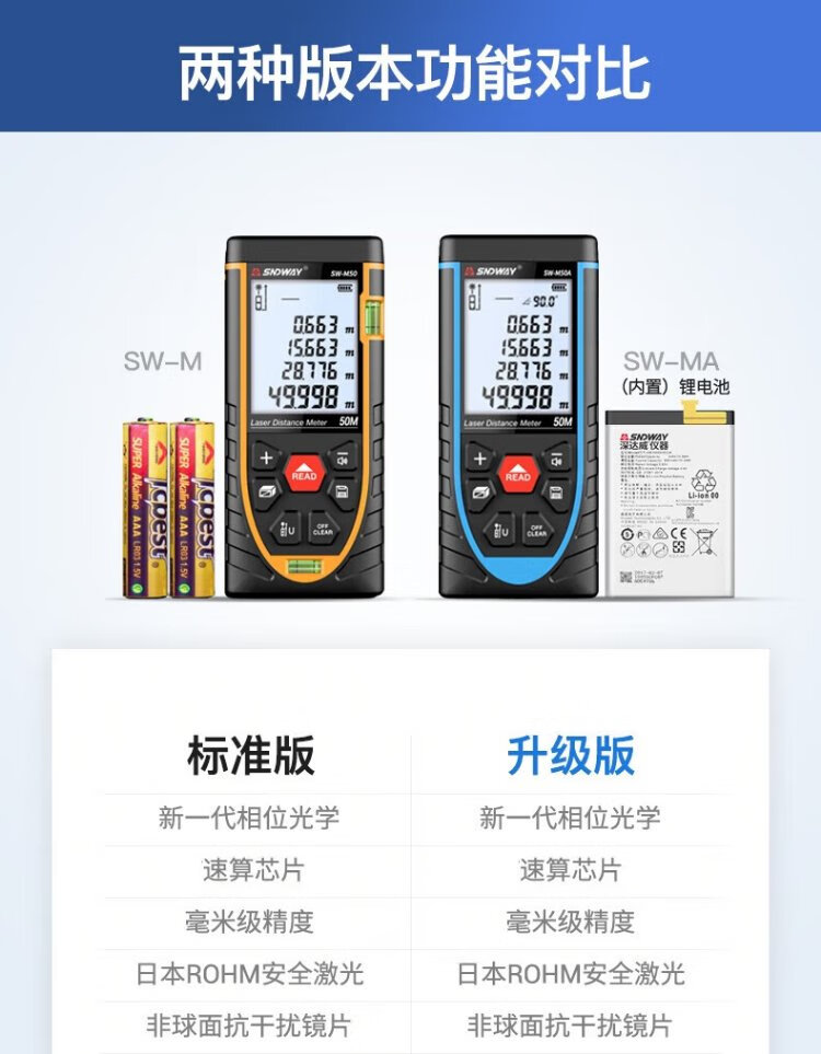 Shendawei Laser Distance Meter Infrared High-Precision Laser Ruler Distance Measurement Room Instrument Tool Measuring Instrument Electronic Ruler SW-M50A-50 Meter Lithium Battery Upgraded Version