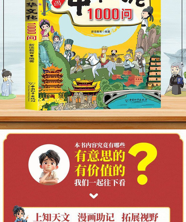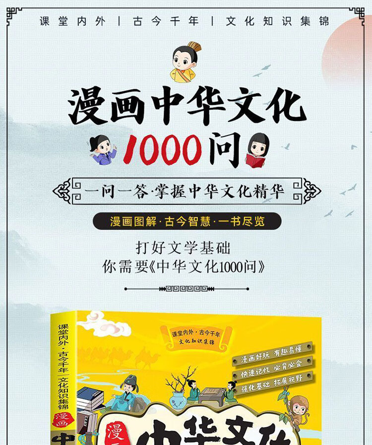 3 volumes in total, 1,000 questions about Chinese culture in comics + common knowledge about literature for primary school students in comics + history of China in comics that will make you addicted to reading, knowledge encyclopedia and common sense