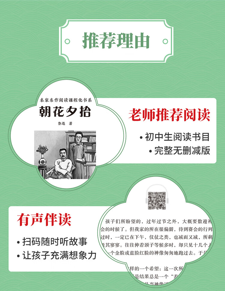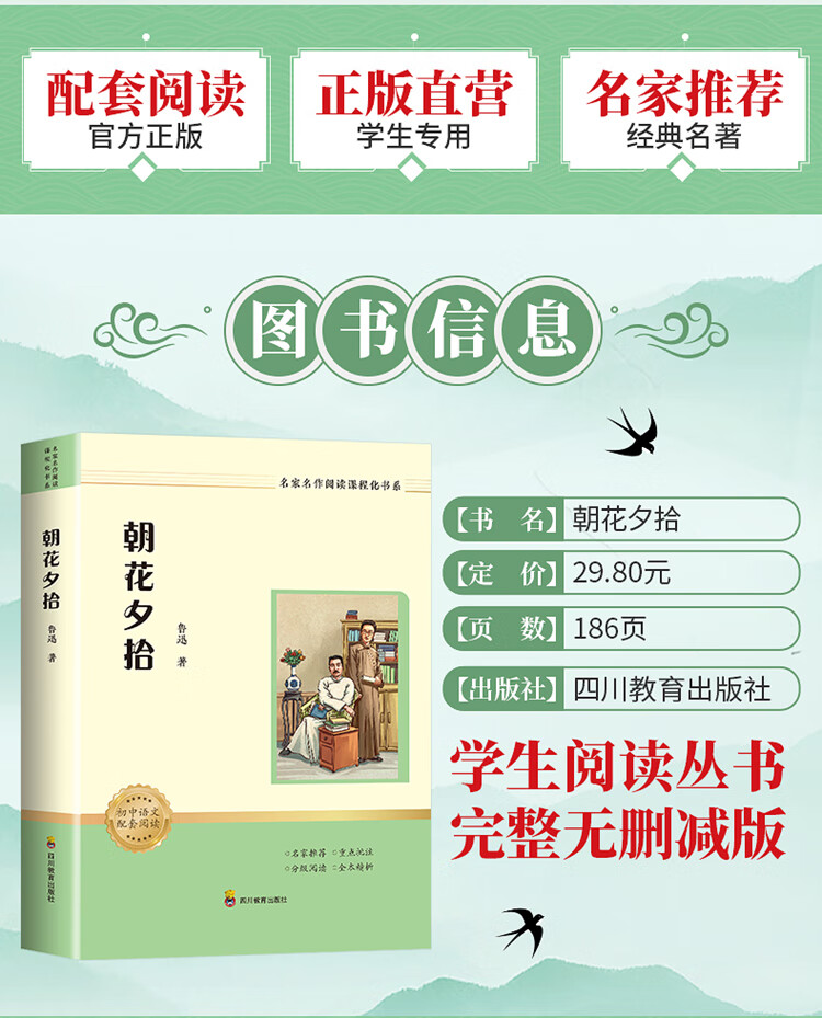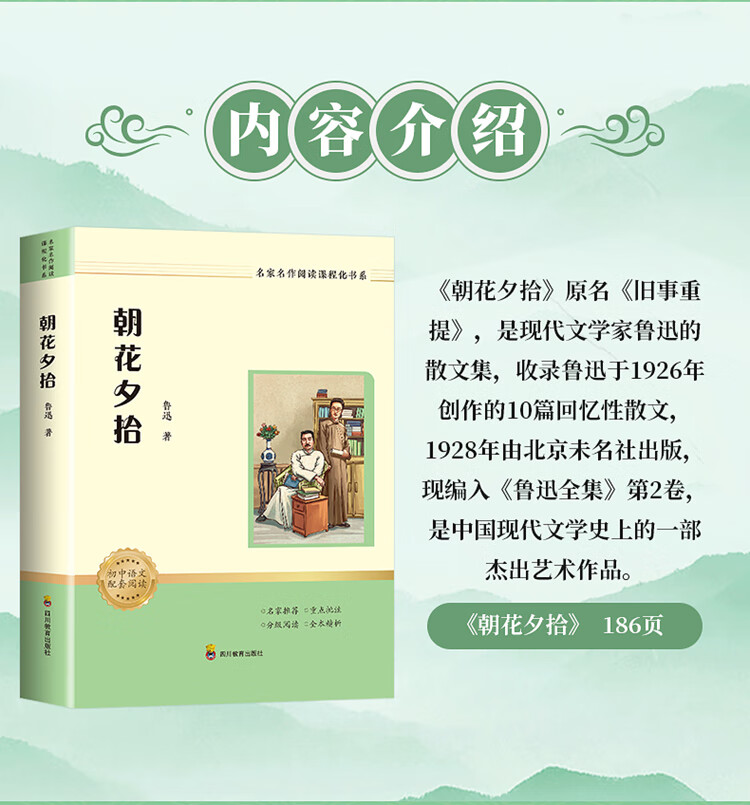 Morning Blossoms Picked Up at Dusk, Lu Xun's original genuine seventh-grade must-read masterpiece for junior high school students, Sichuan Education Press, applicable to the People's Education Press version of People's Education Press, supporting reading for the first grade Chinese textbook, unabridged full version