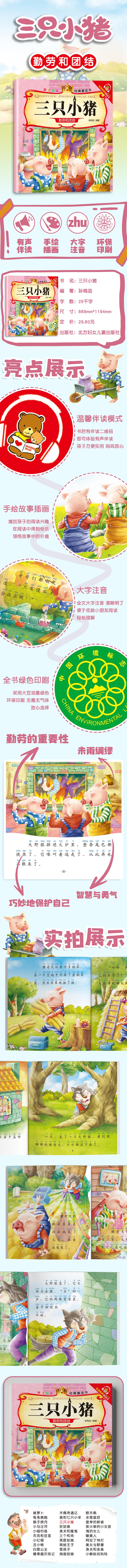 Three Little Pigs, a classic fairy tale book for parents and children to read, an enlightenment early education educational book for young children, a classic picture book, and a bedtime story for children.