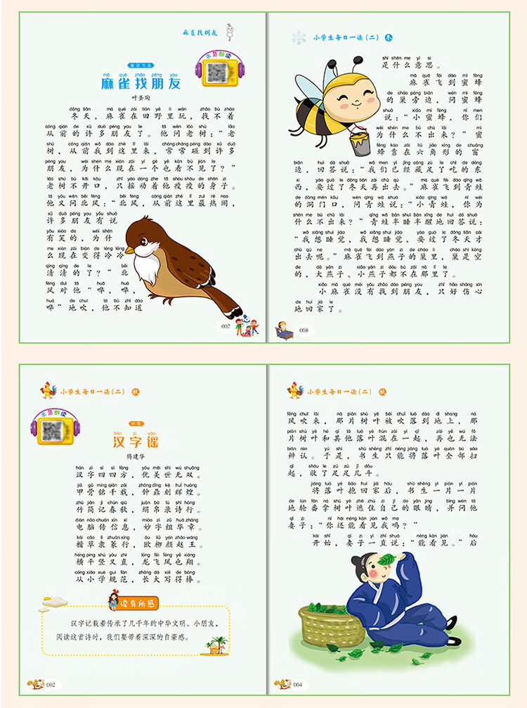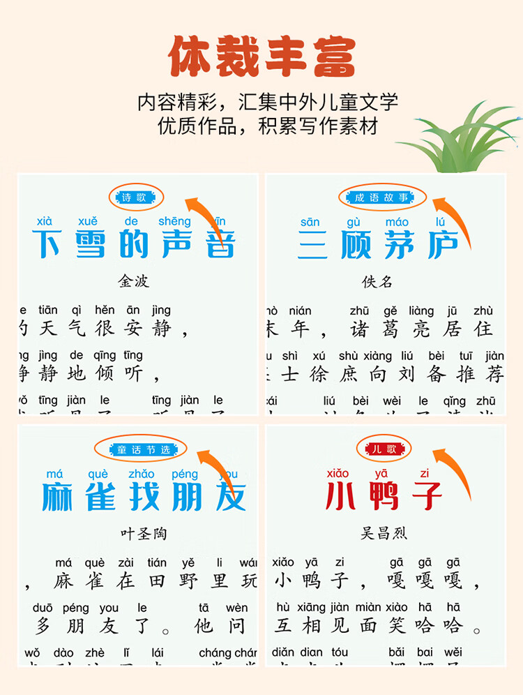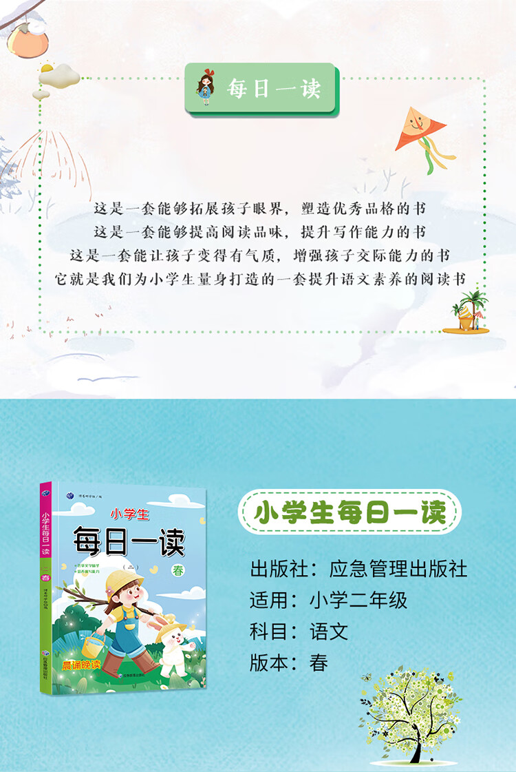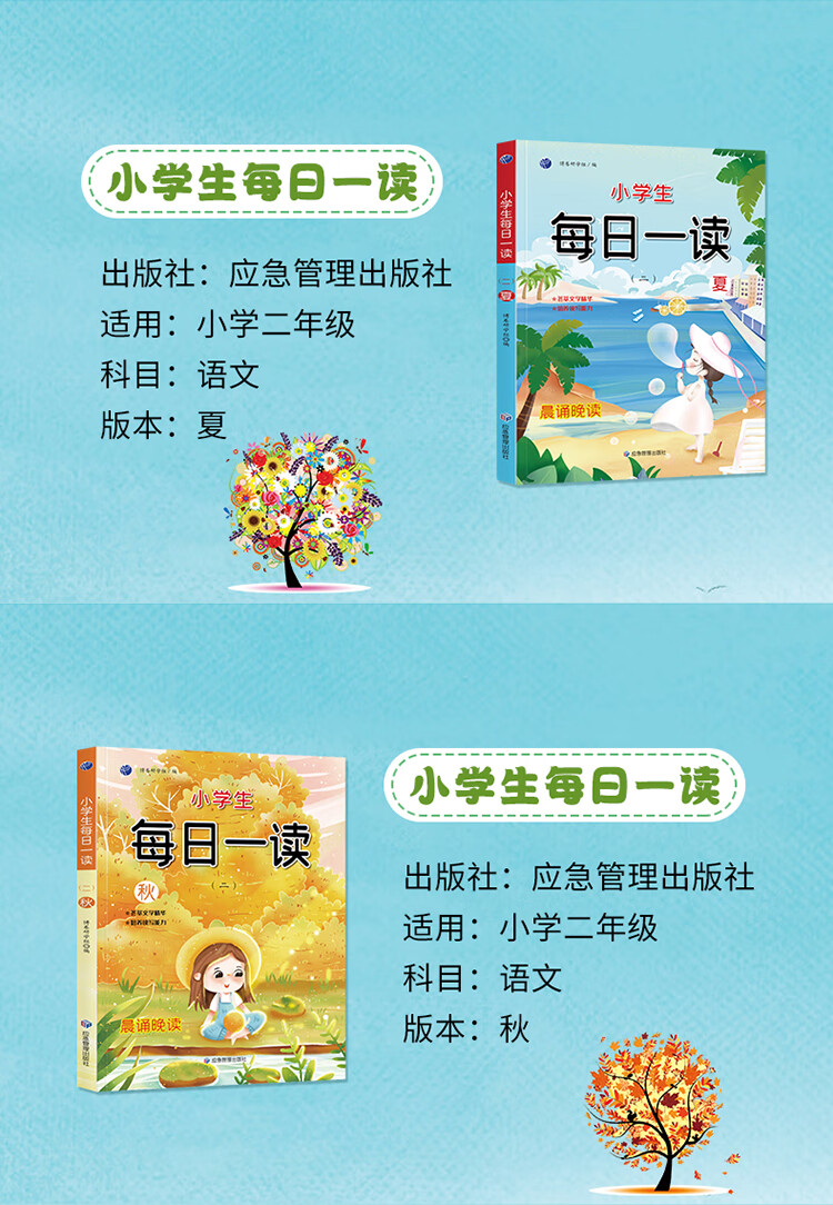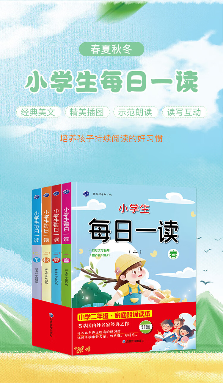 Daily reading for primary school students (4 volumes) Extracurricular reading for second grade in spring, summer, autumn and winter Morning reading and evening recitation Chinese reading and writing literacy ability improvement reading color picture phonetic version on Book Fragrance Festival Reading Festival