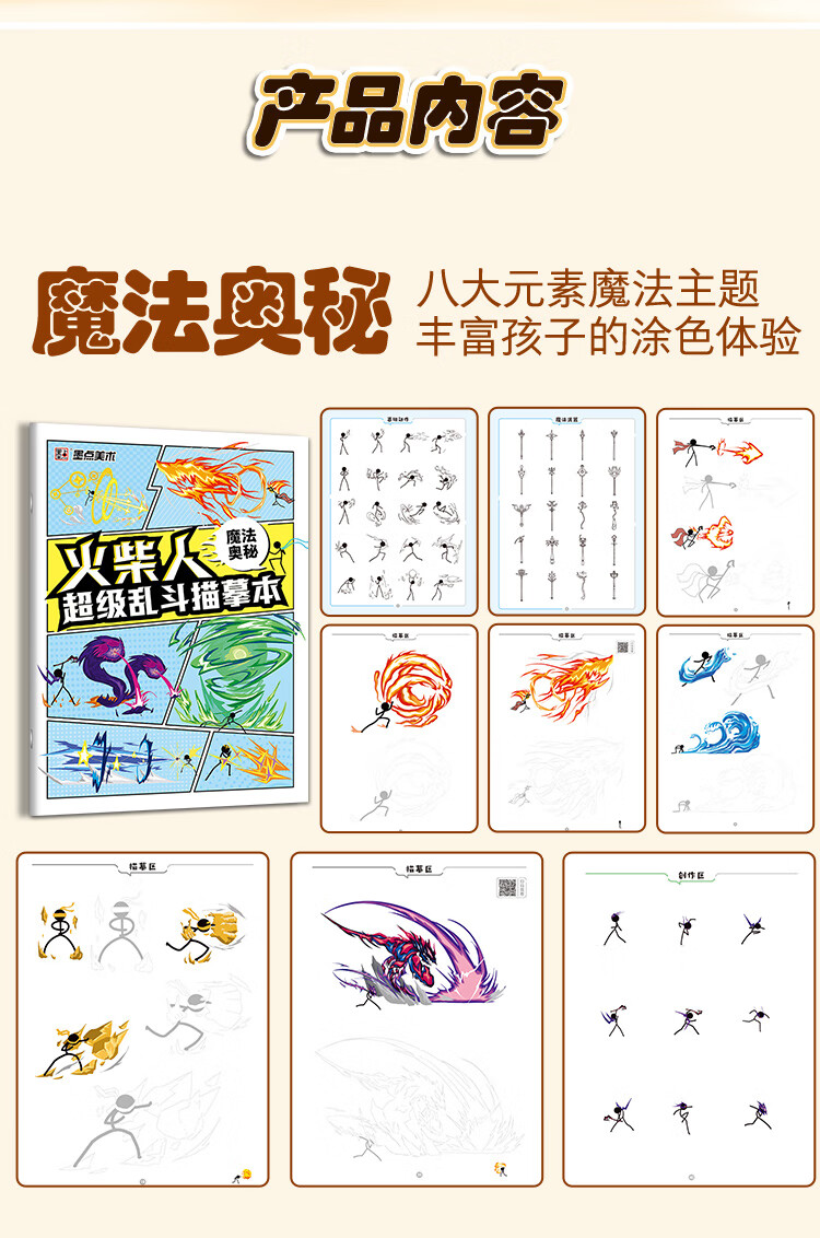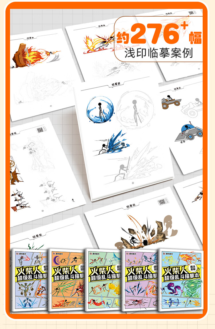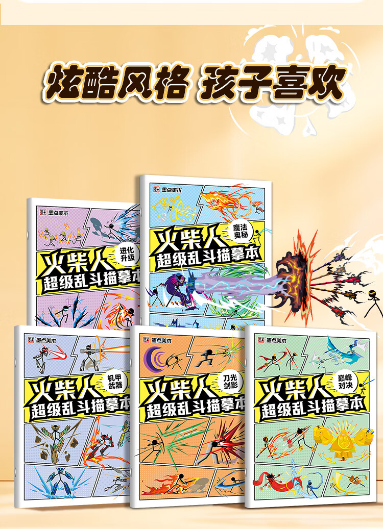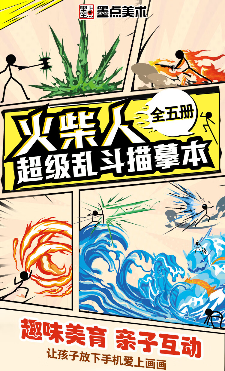 Ink dots, stickman super brawl tracing book, sword light, sword shadow, element children's comic line drawing coloring book, novice entry character painting, cartoon abstract painting for primary school students, reading carnival