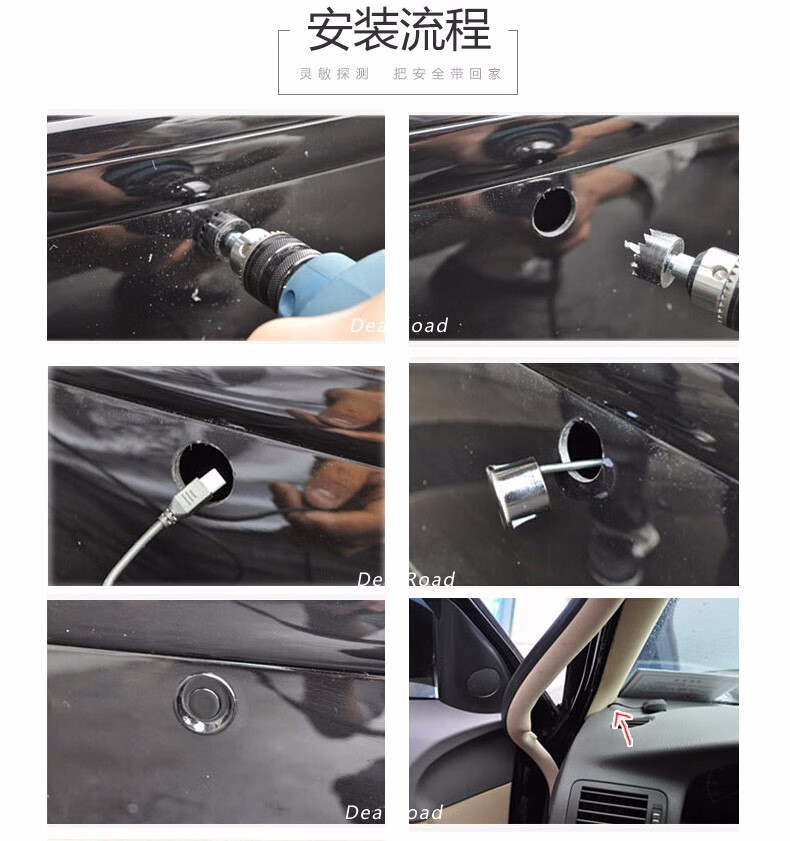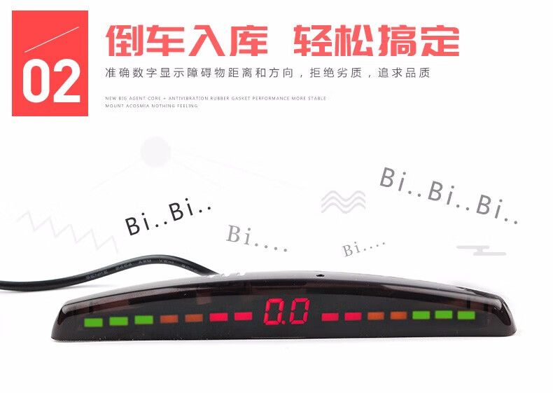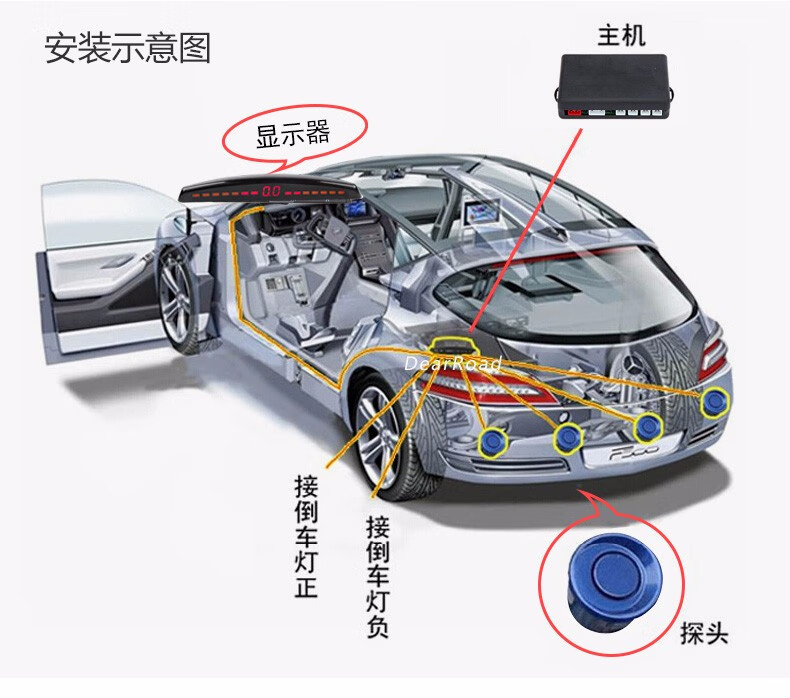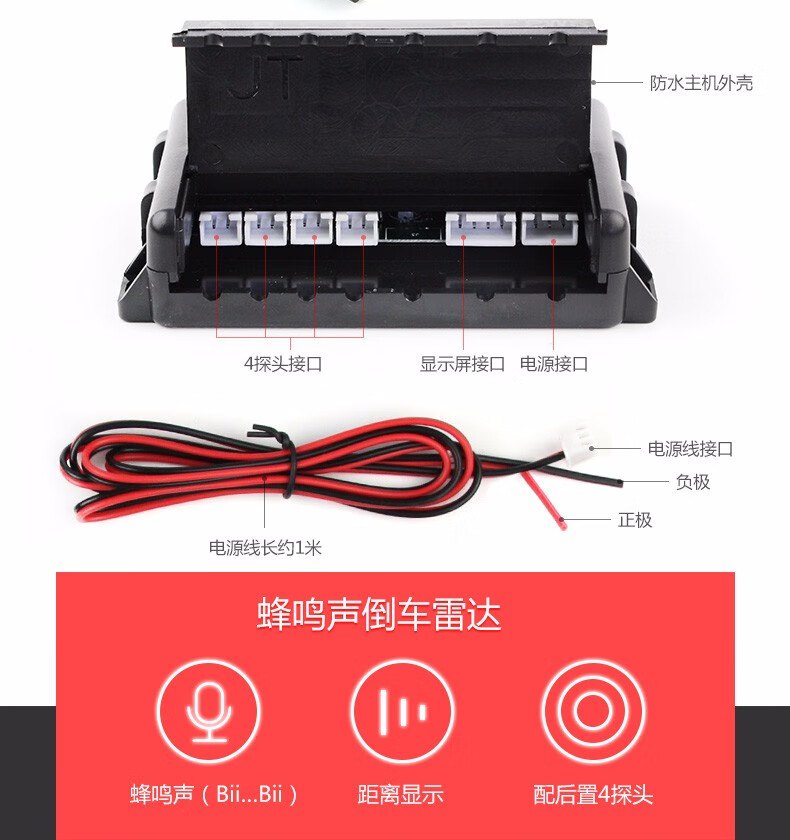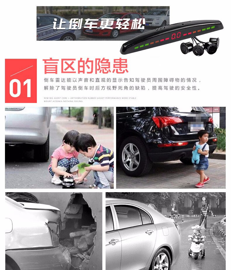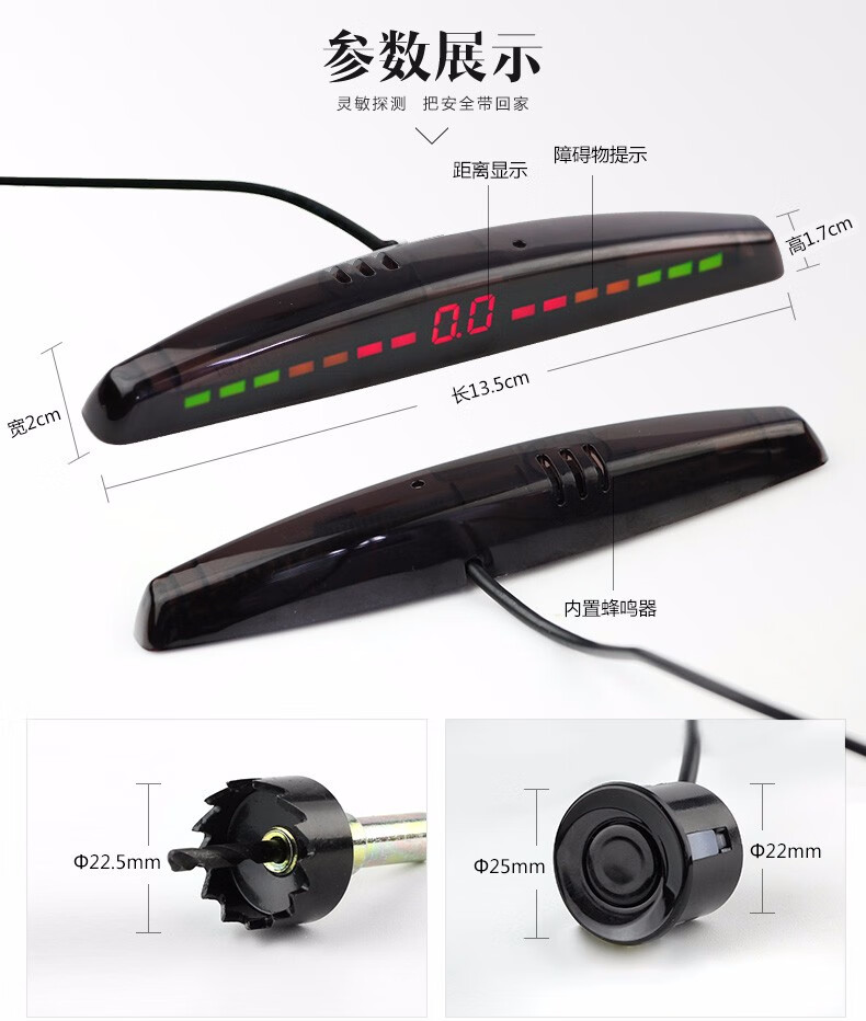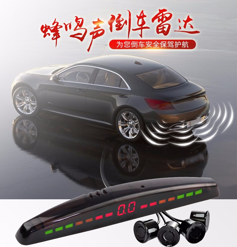 Lutu car reversing radar parking system rear 4 probes LED screen display long bar buzzer voice alarm black probe