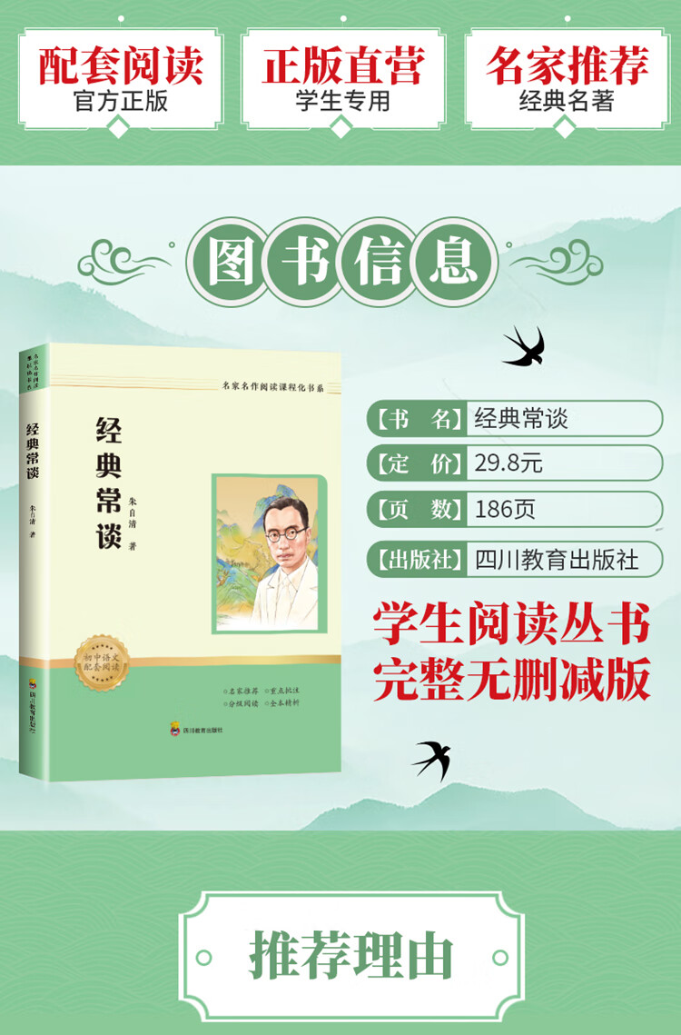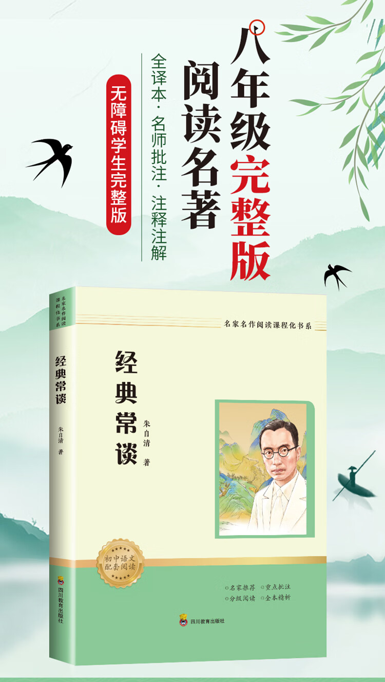 Classics and Frequent Talks, a must-read extracurricular book for the second volume of eighth grade (new curriculum standard), a must-read classic for junior high school, Sichuan Education Press, applicable to People's Education Edition, People's Education Press, junior high school Chinese textbook supporting reading, Zhu Ziqing's original unabridged complete version for barrier-free students, and a free Classics and Frequent Talks test point manual (all 2 volumes)