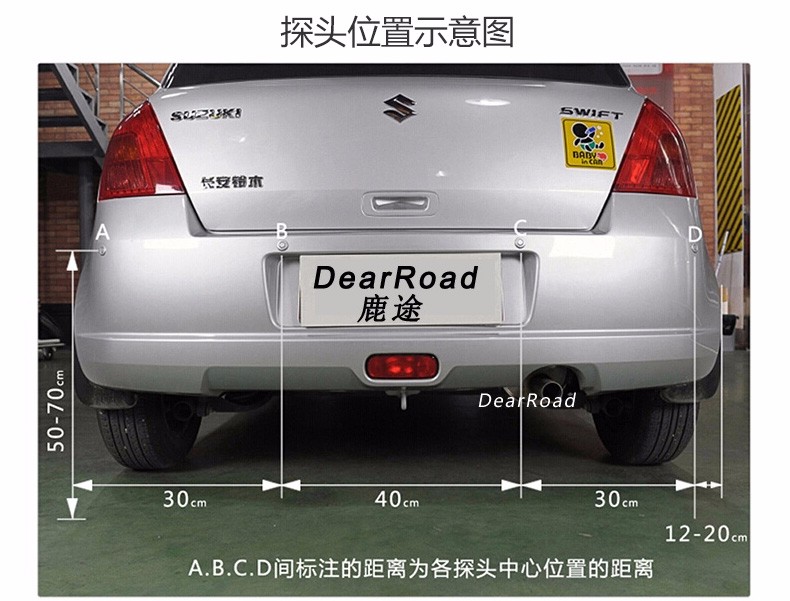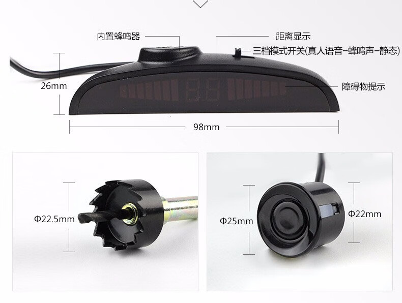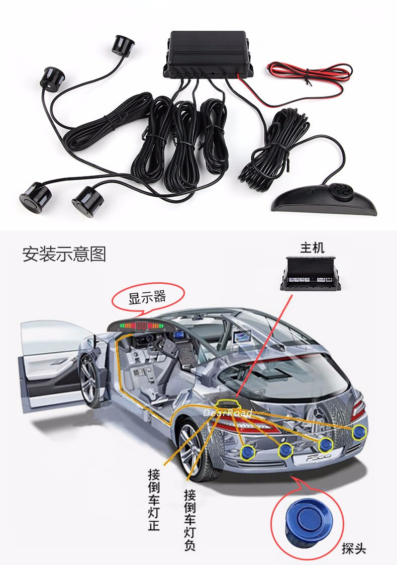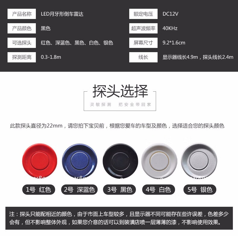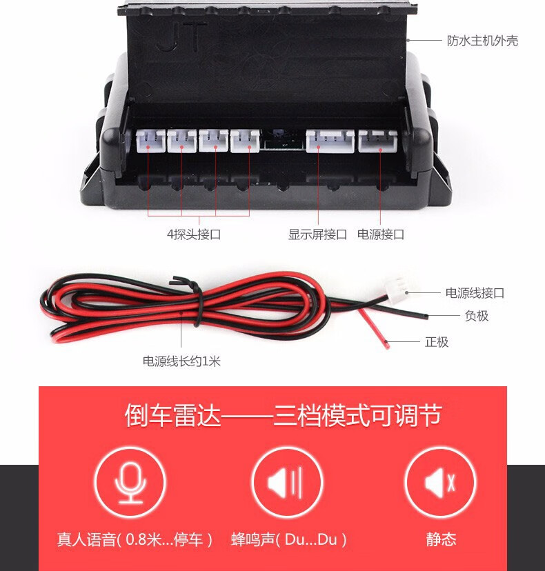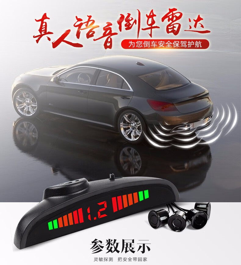 Lutu car reversing radar dual-core host, real voice broadcast, rear 4 probes, LED display parking alarm system, black probes
