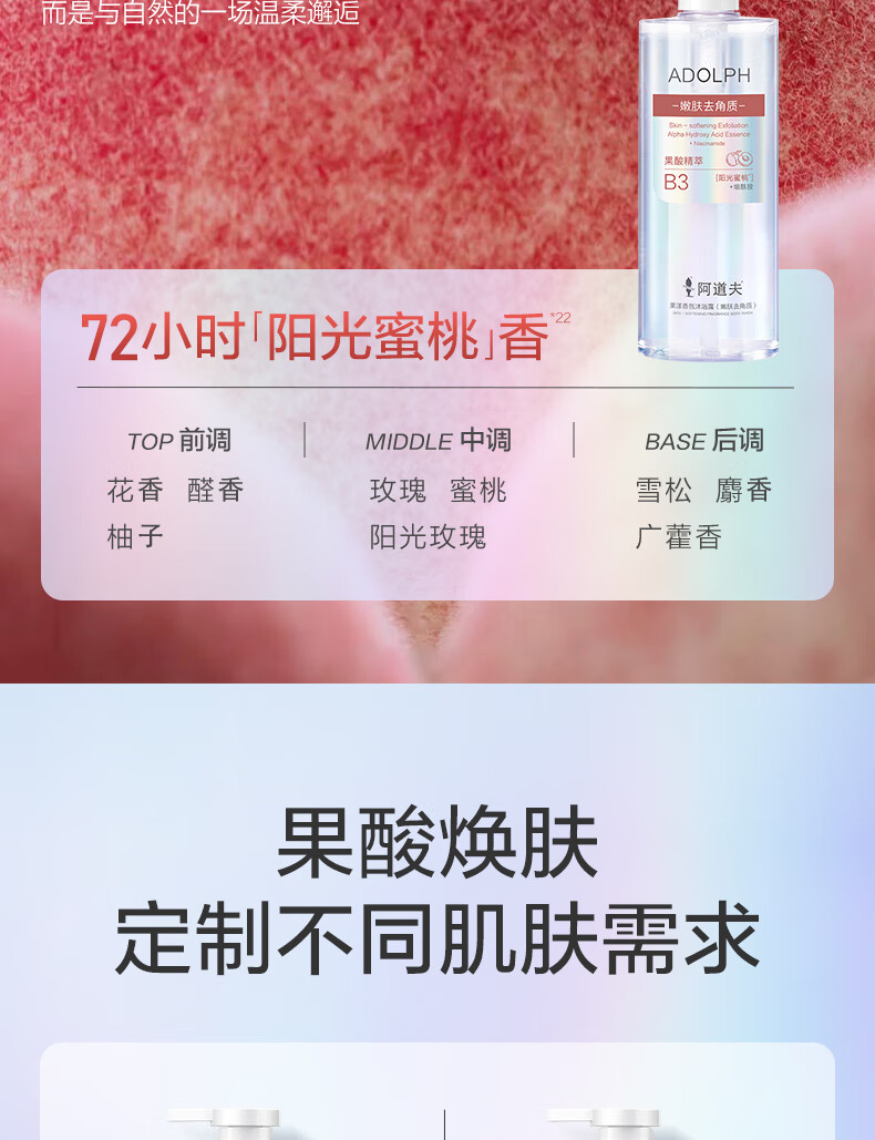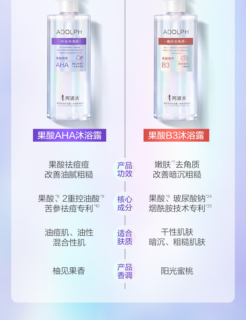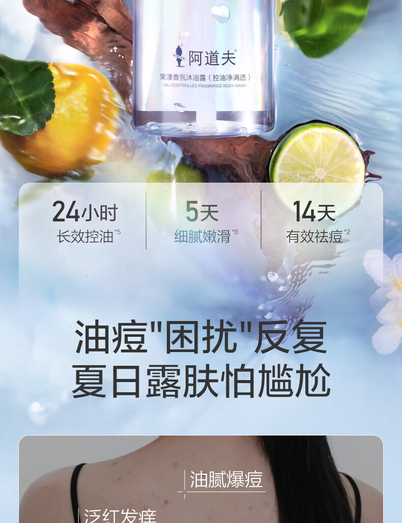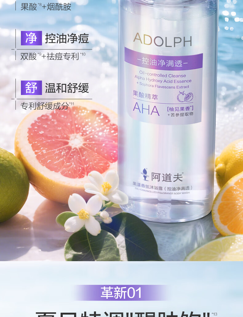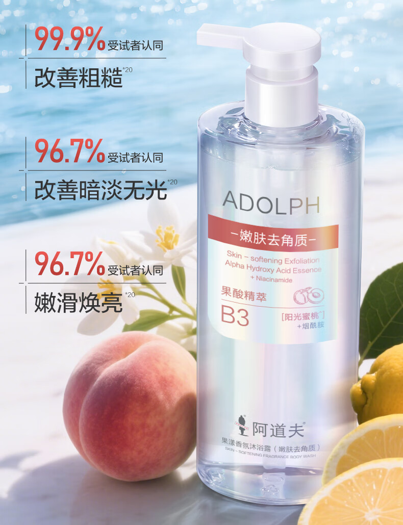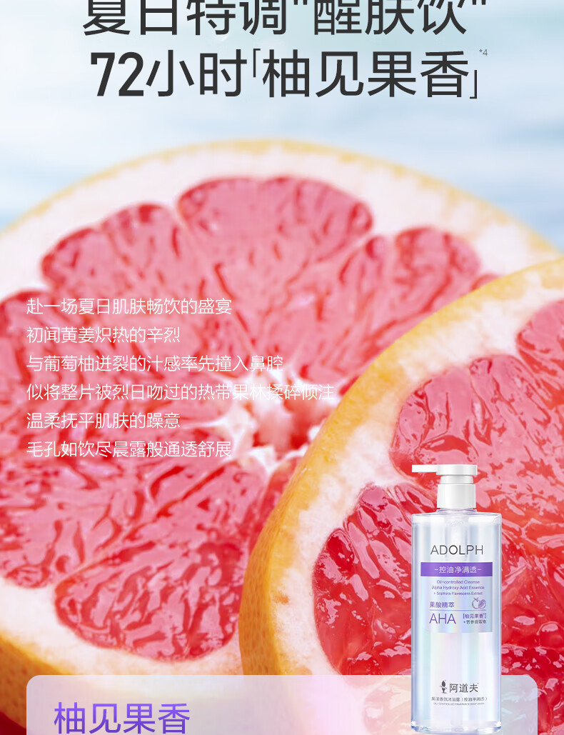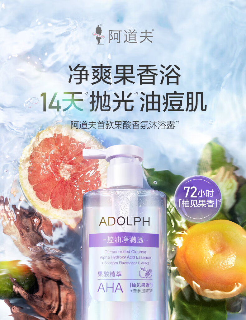 ADOLPH Fruity Fragrance Shower Gel Oil-Controlling, Purifying, Rejuvenating, Exfoliating, Long-lasting Fragrance Fruit Acid Shower Gel Available for the Whole Family, Oil-Controlling and Acne-Removing Shower Gel 400ml
