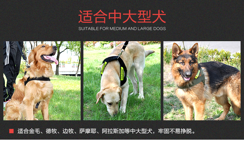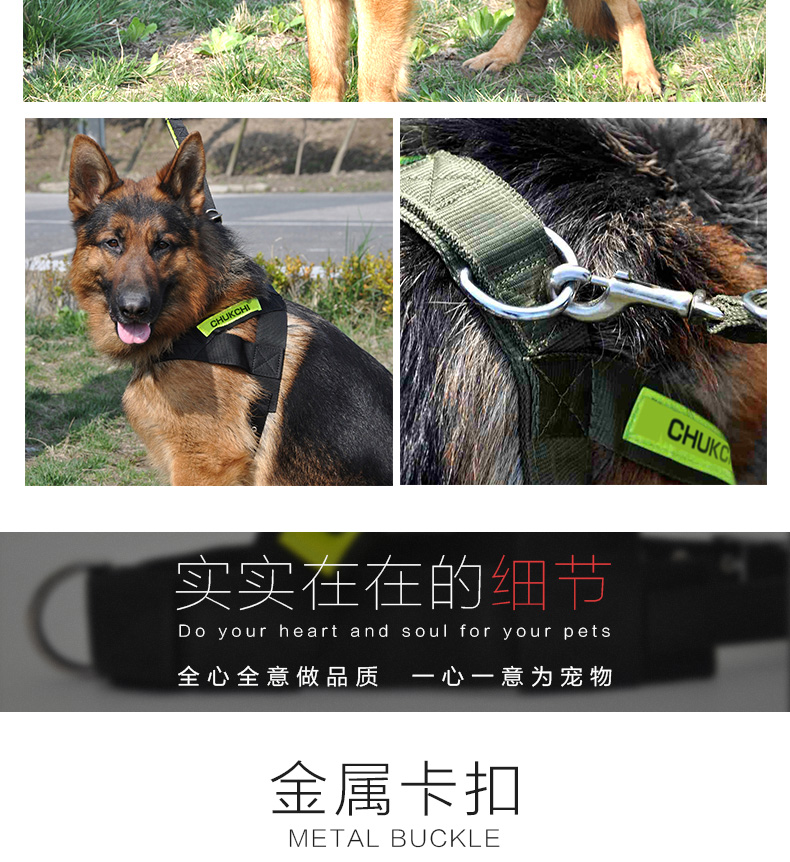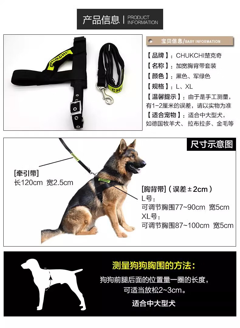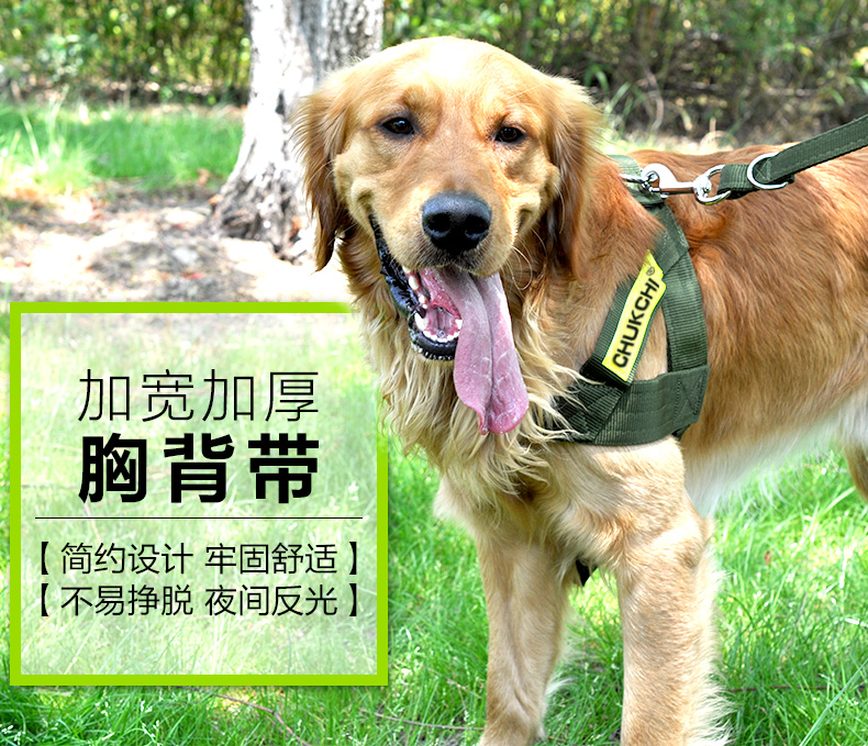 Chukchi (CHUKCHI) dog leash harness, medium and large dog chain, pet walking leash, German shepherd golden retriever, widened when going out, military green