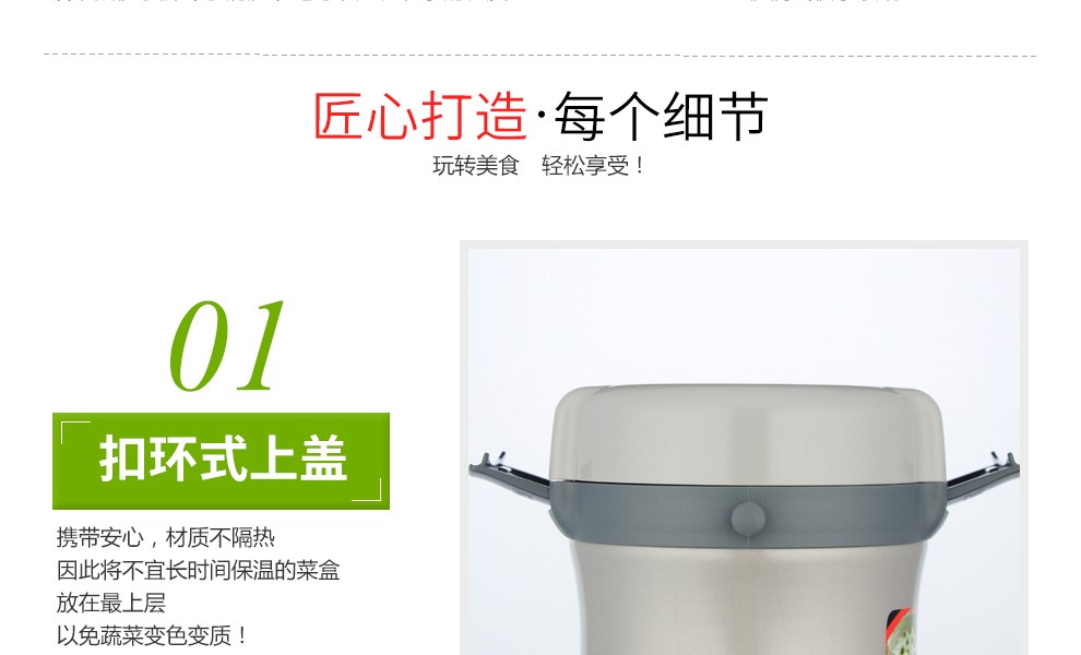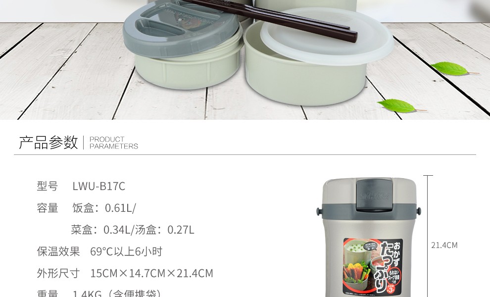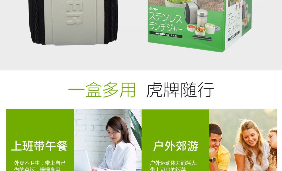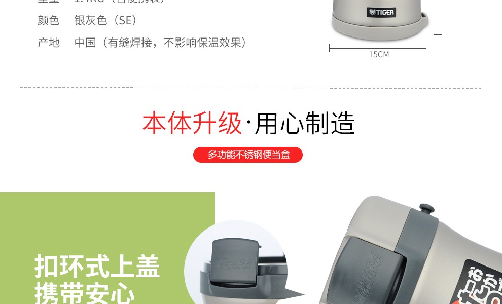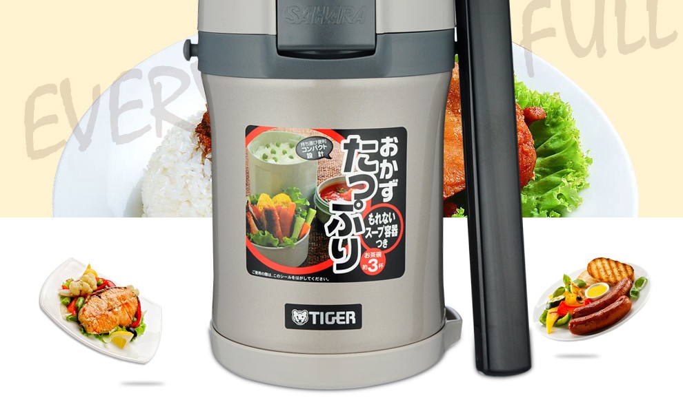 TIGER lunch box stainless steel lunch box buckle type high performance thermal insulation lunch box LWU-B17C 1.22L