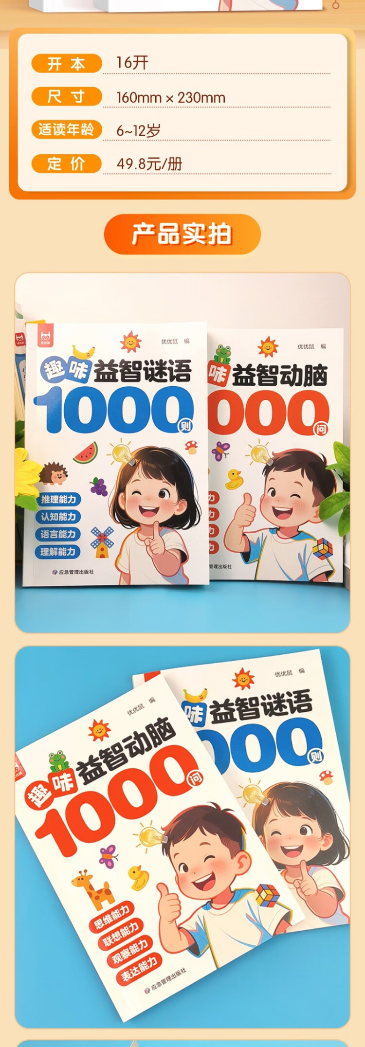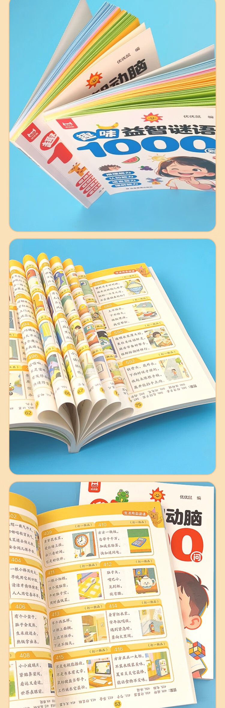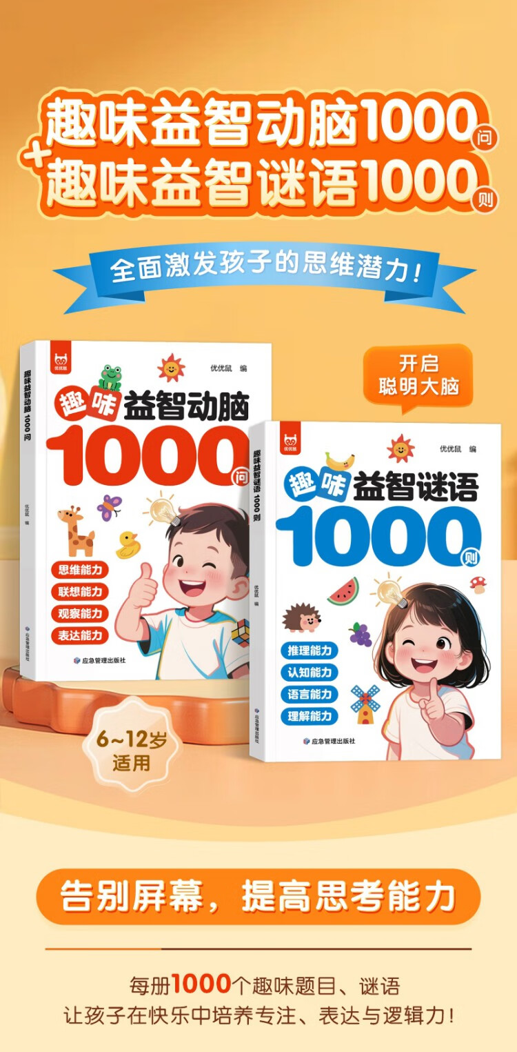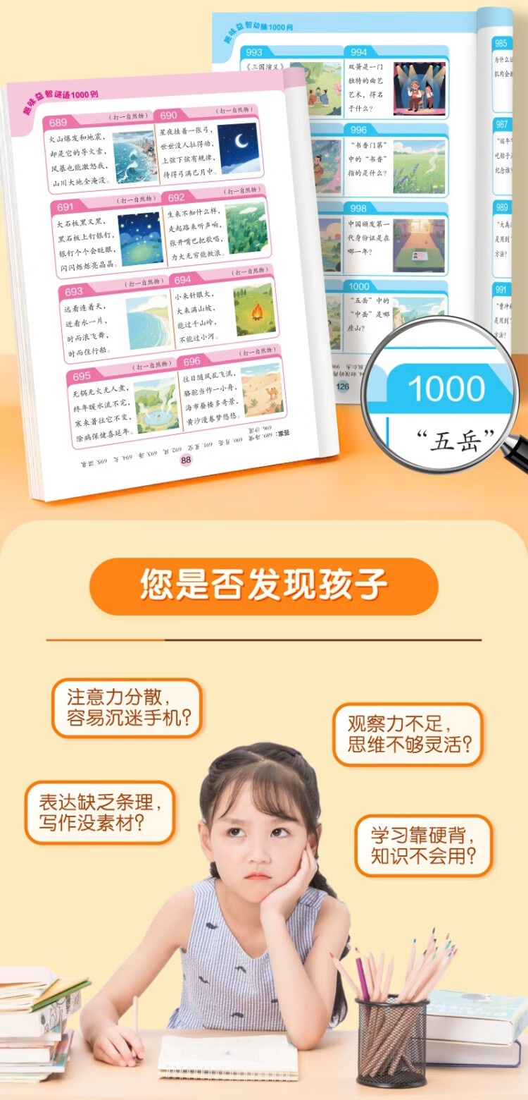 3 volumes in total, 1,000 fun puzzles and brain-stimulating questions + 1,000 fun puzzle riddles + 300 brain teasers to exercise thinking, association, observation, expression, reasoning, cognitive language understanding, a must-read extracurricular reading book for primary school students