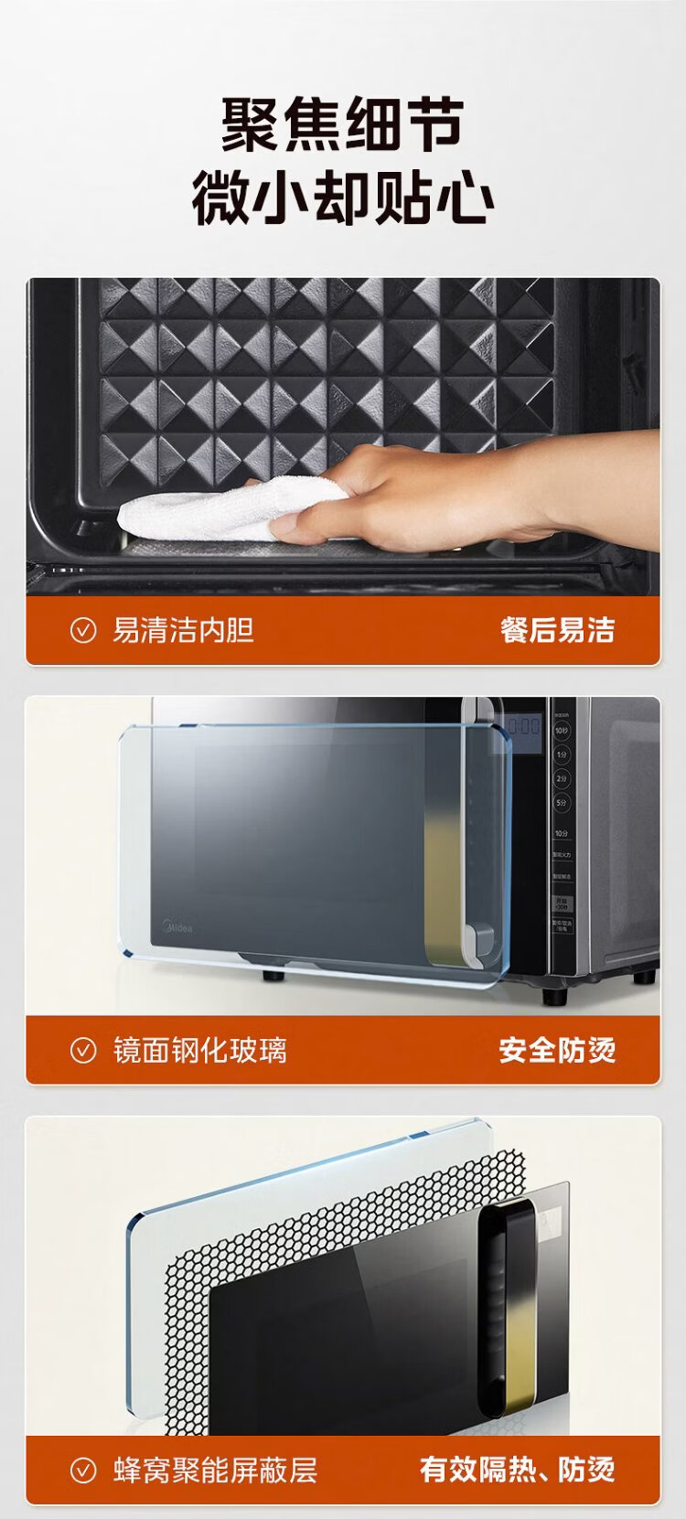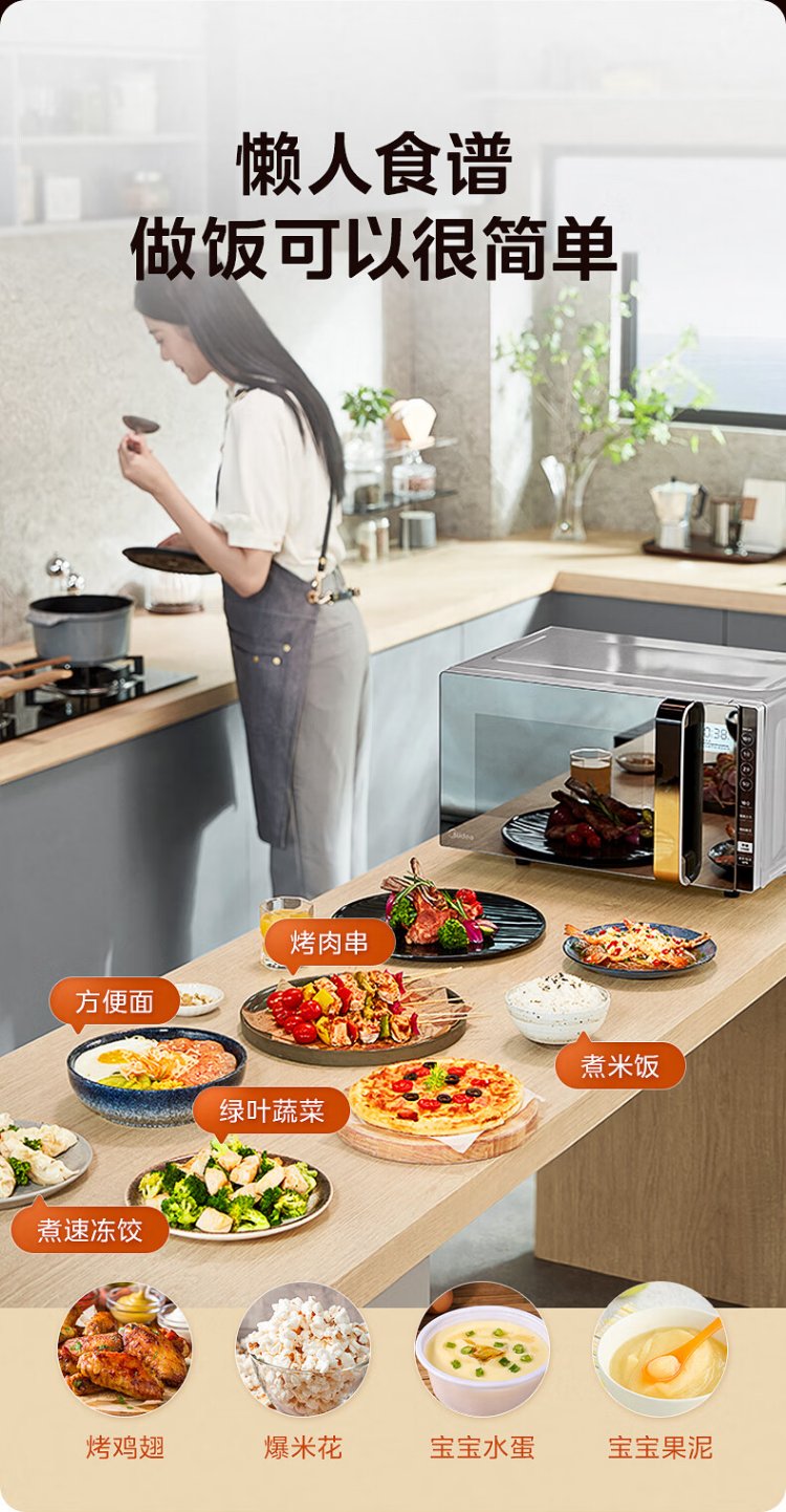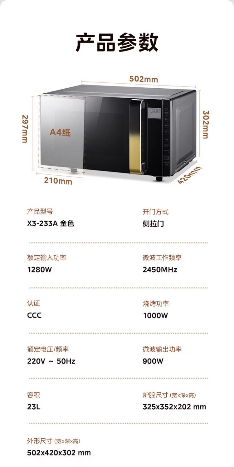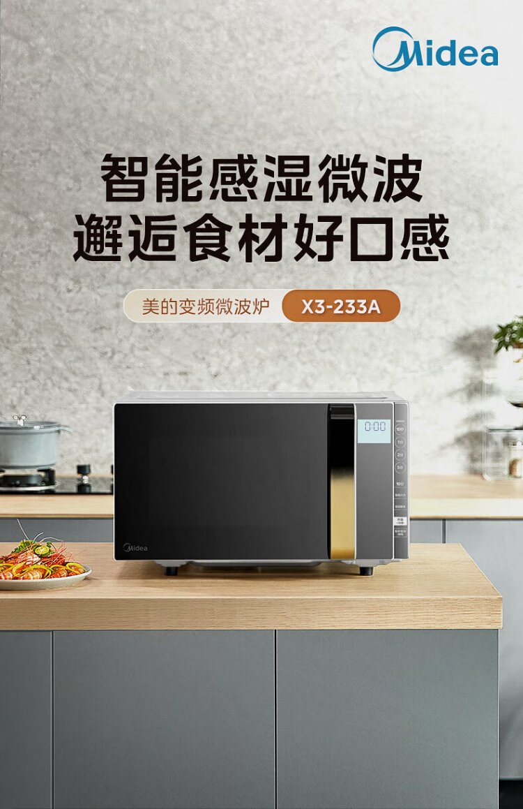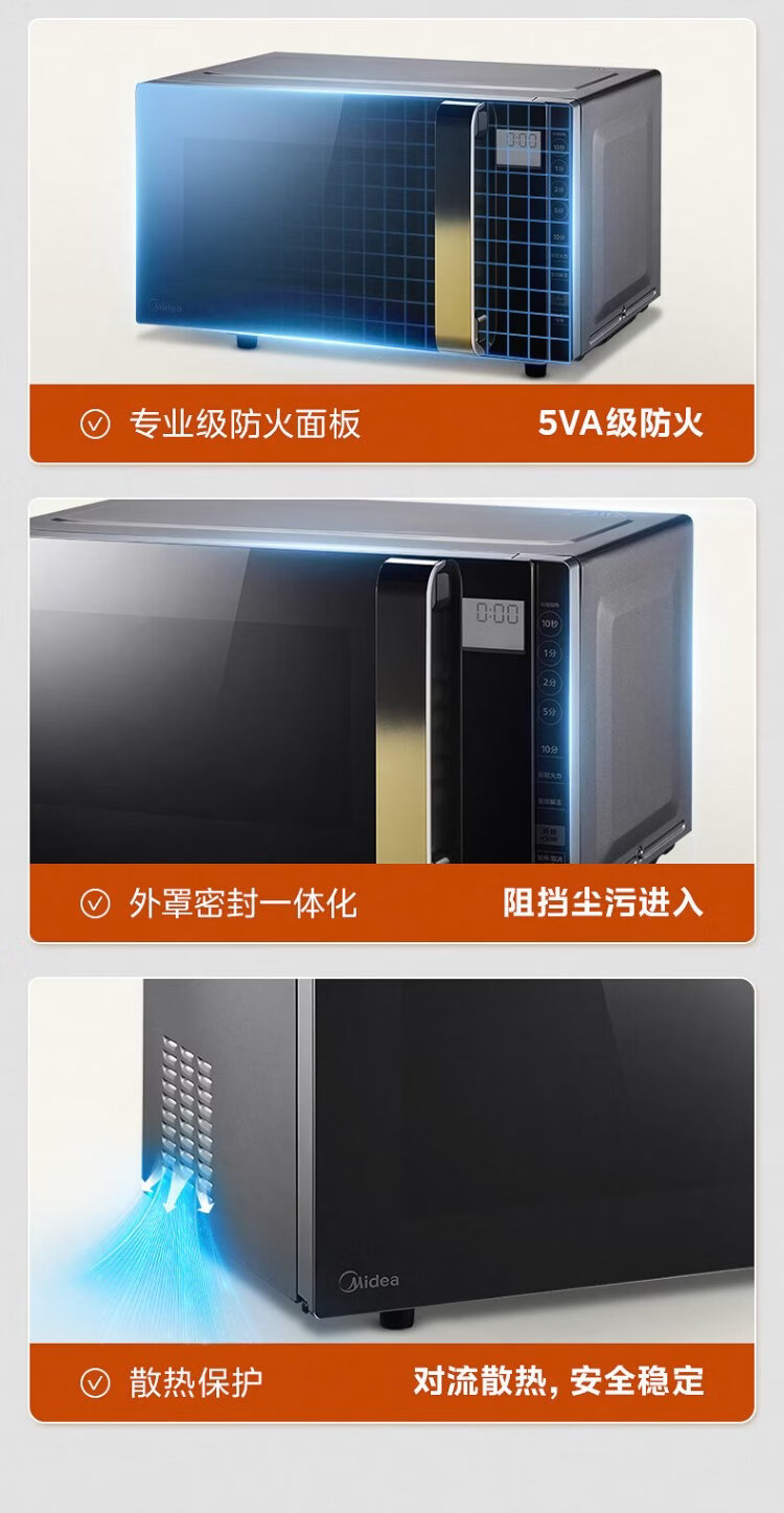 Midea microwave oven all-in-one frequency conversion household microwave oven 900W micro-bake all-in-one 23 liter flat plate heating sterilization easy to clean X3-233A gold