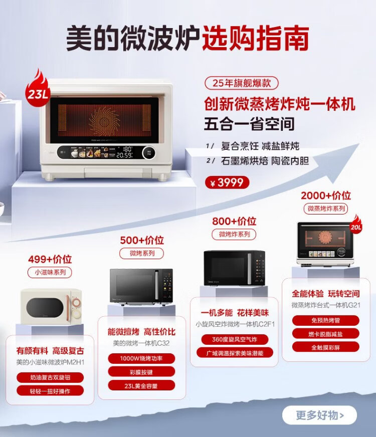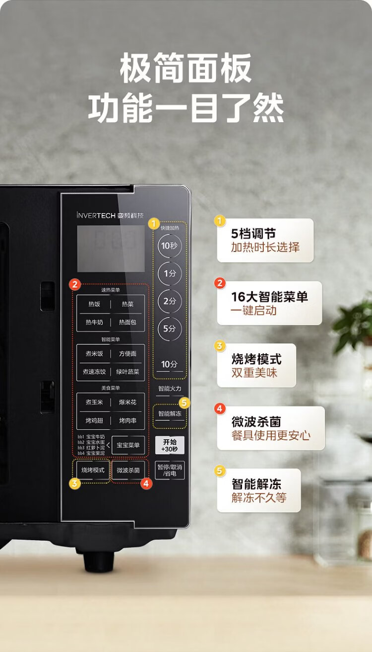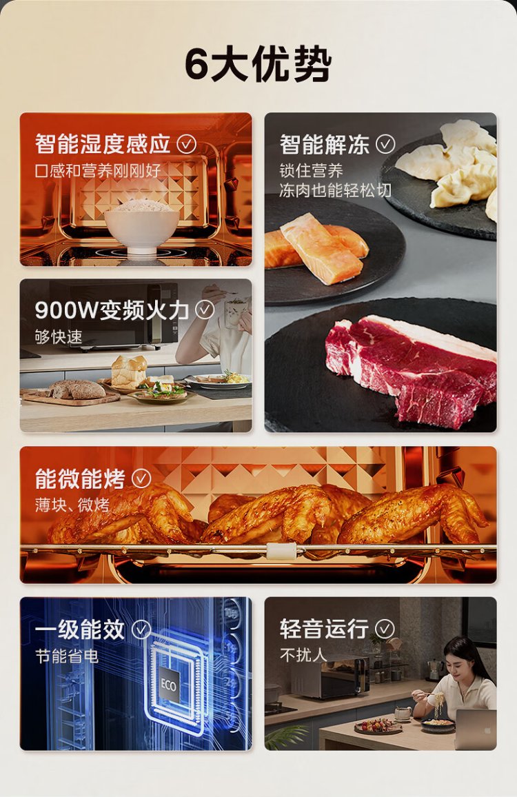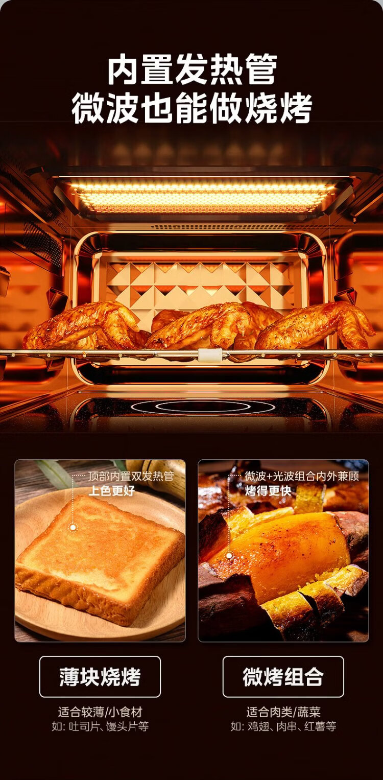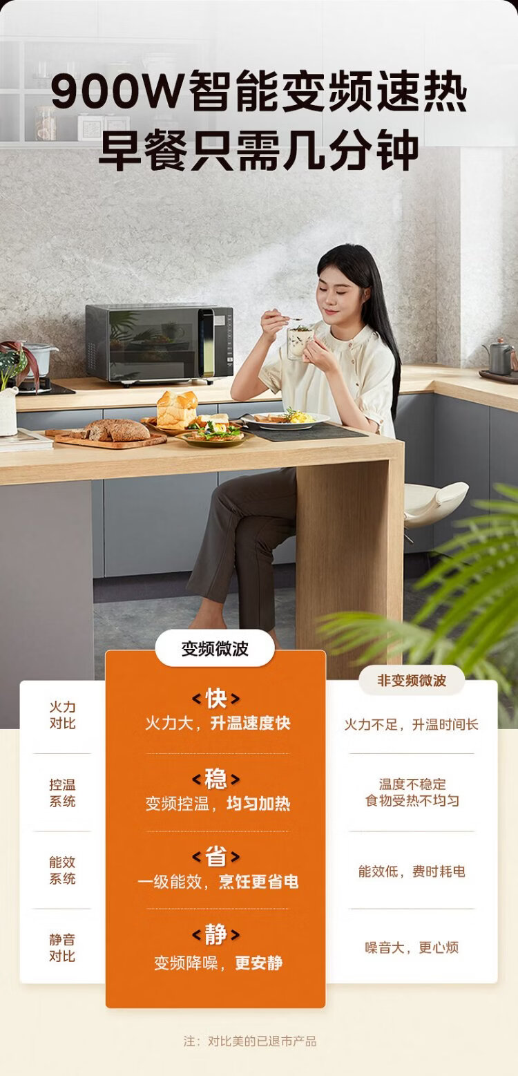Midea microwave oven all-in-one frequency conversion household microwave oven 900W micro-bake all-in-one 23 liter flat plate heating sterilization easy to clean X3-233A gold
