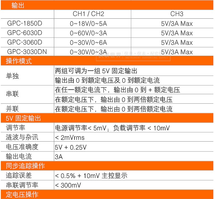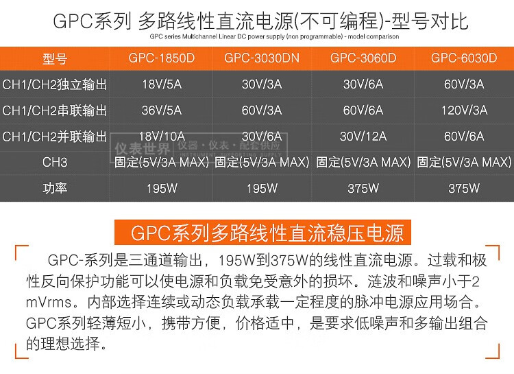 GWINSTEK GPC-3060D丨6030D multi-channel DC regulated power supply linear three-group output 30/60V 3/5A GPC-3060D (30V 6A 375W)