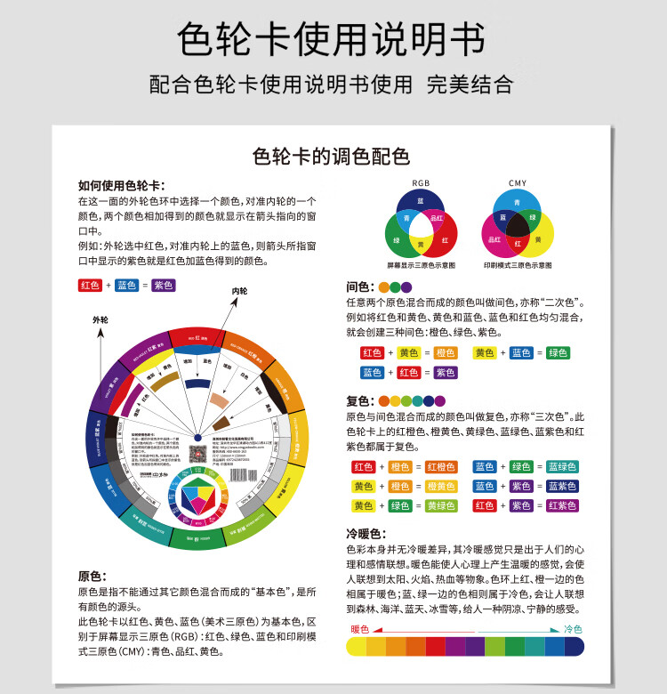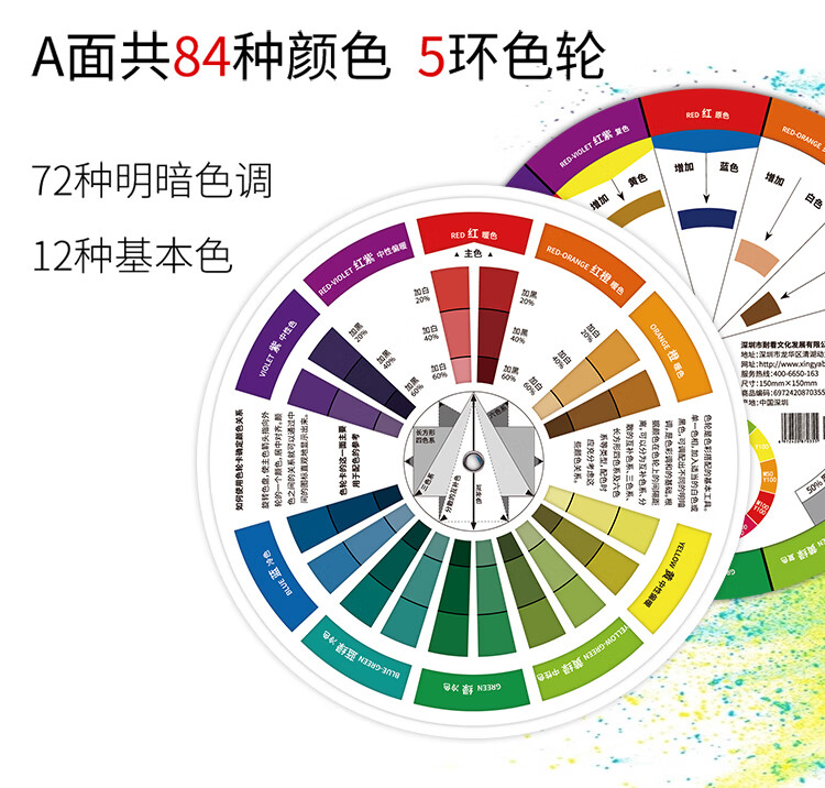 Multifunctional color wheel card 12 hue circle color circle chart color card multifunctional paint cake color card ratio three primary color card color matching color children's color recognition card sample country