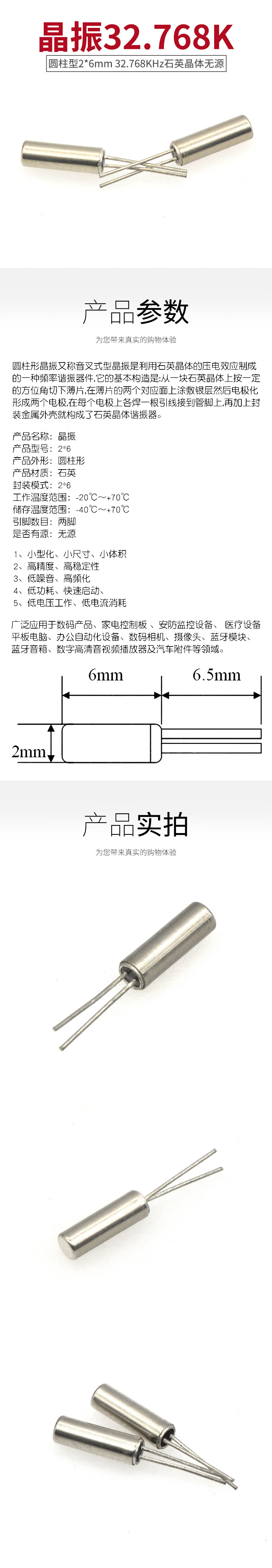 TaoTimeClub cylindrical 2*6MM 32.768KHz quartz crystal 32768 passive crystal oscillator (10 pieces)