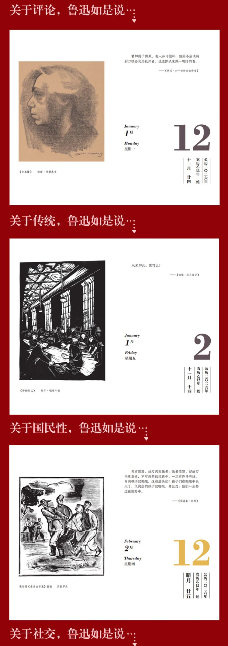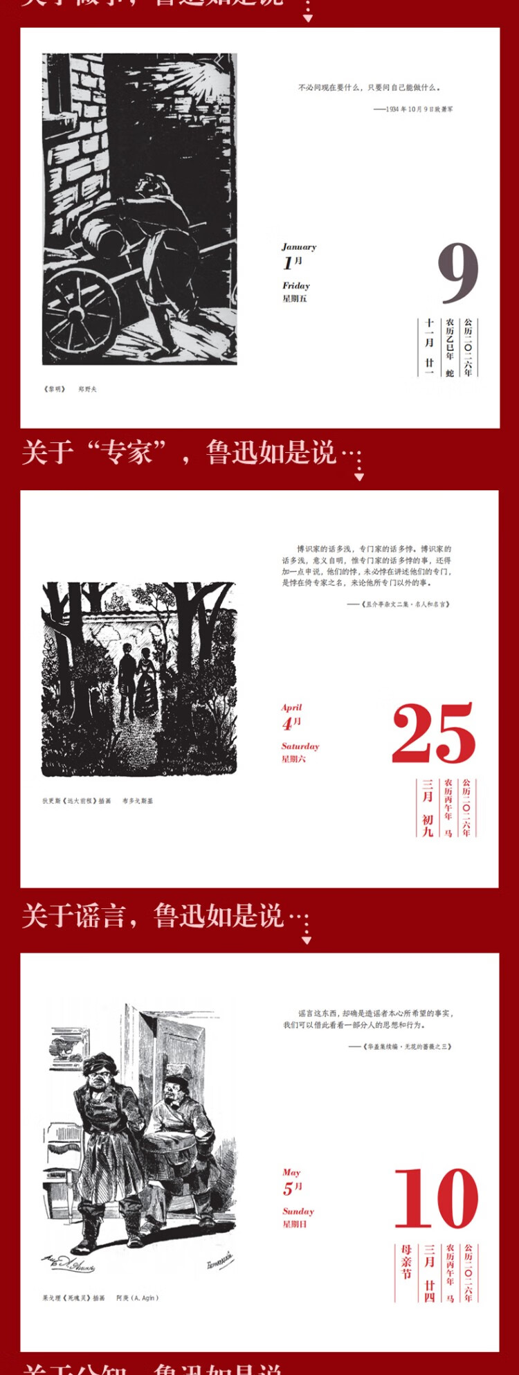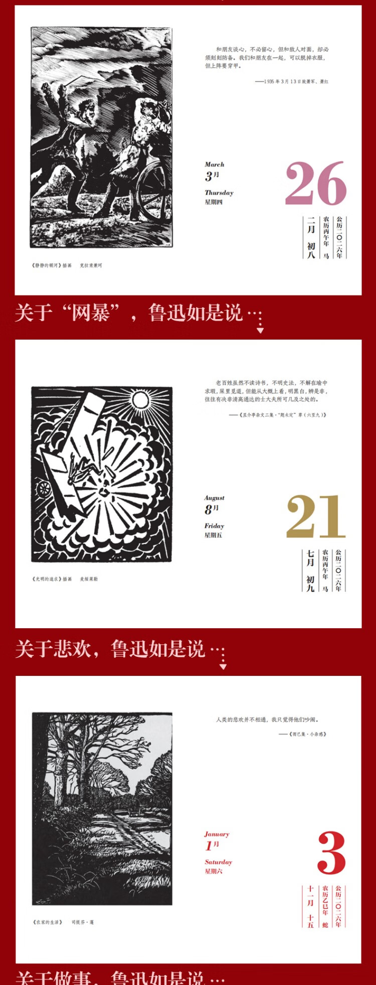 Awakening in the World Lu Xun Calendar 2026 Lu Xun’s Art Lu Xun Cultural Creation Remembering Mr. Lu Xun 365 Lu Xun’s Awakening Mantras Cultural Creativity Desk Calendar